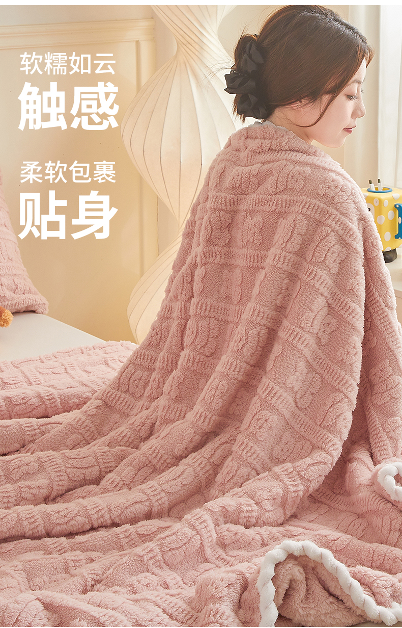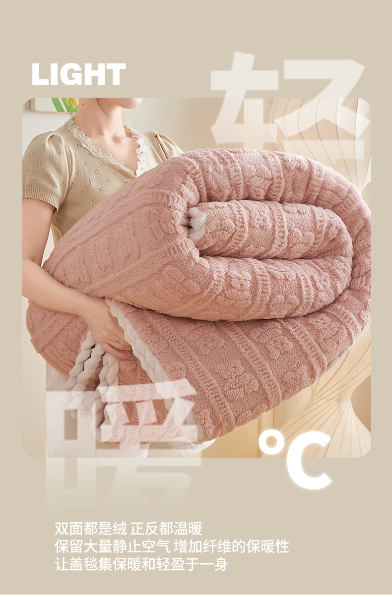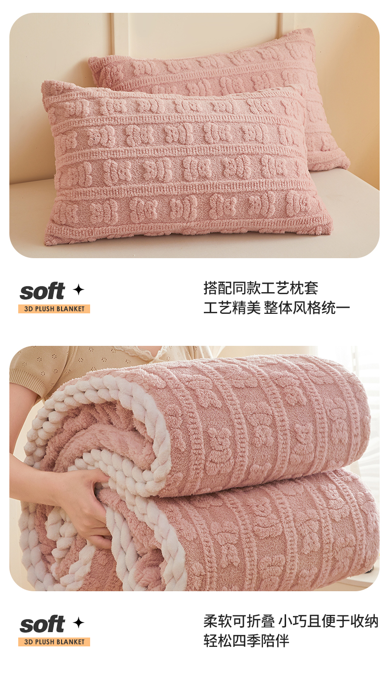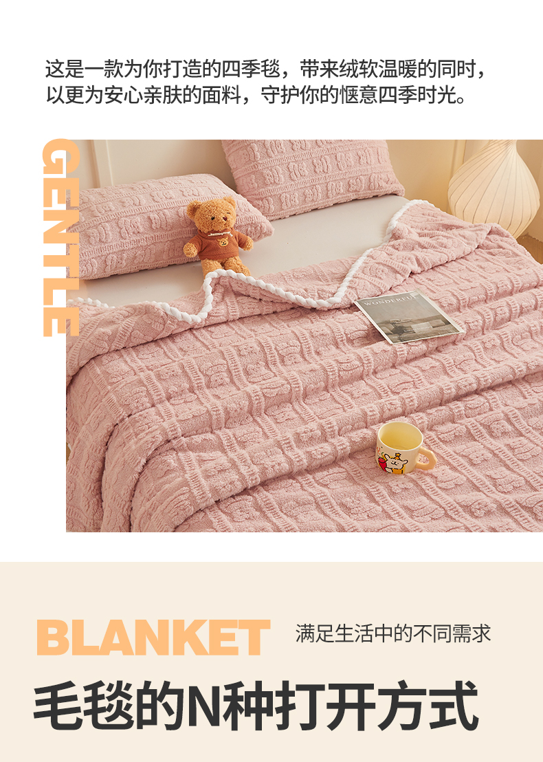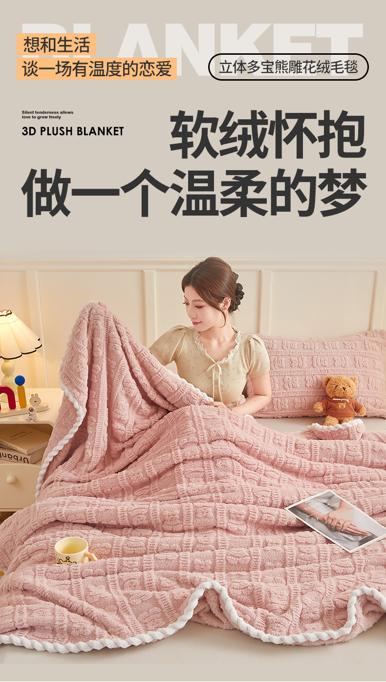 商品名称:世纪绒品 2025新款A类立体牛奶绒雕花绒单层毛毯毯子-多宝熊 多宝熊 豆沙粉