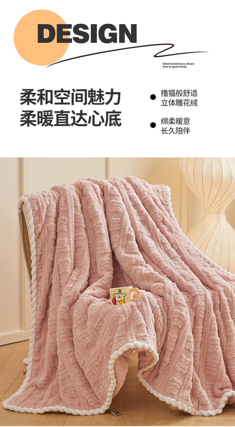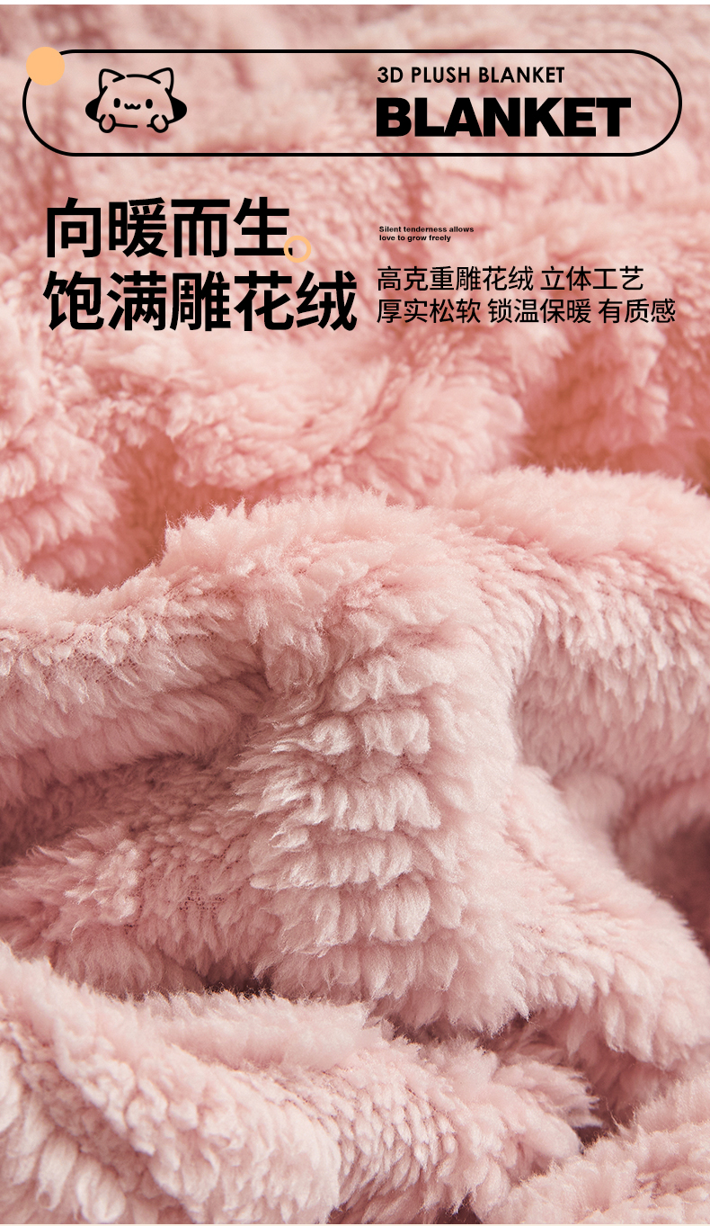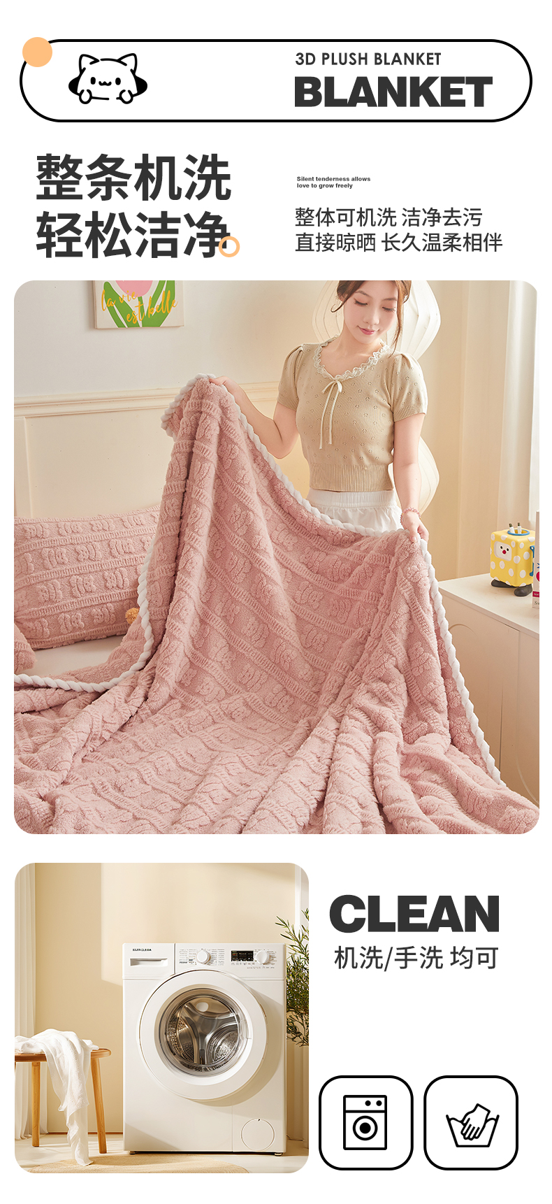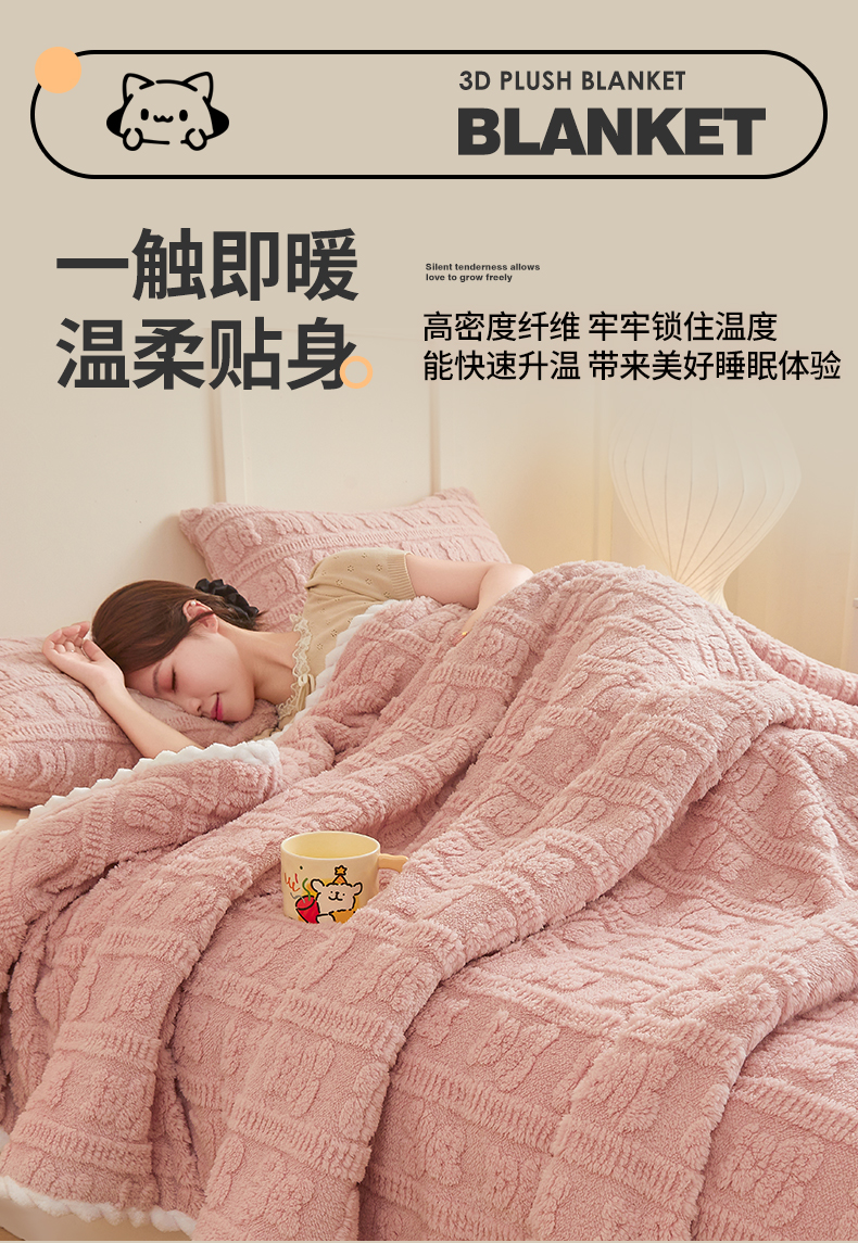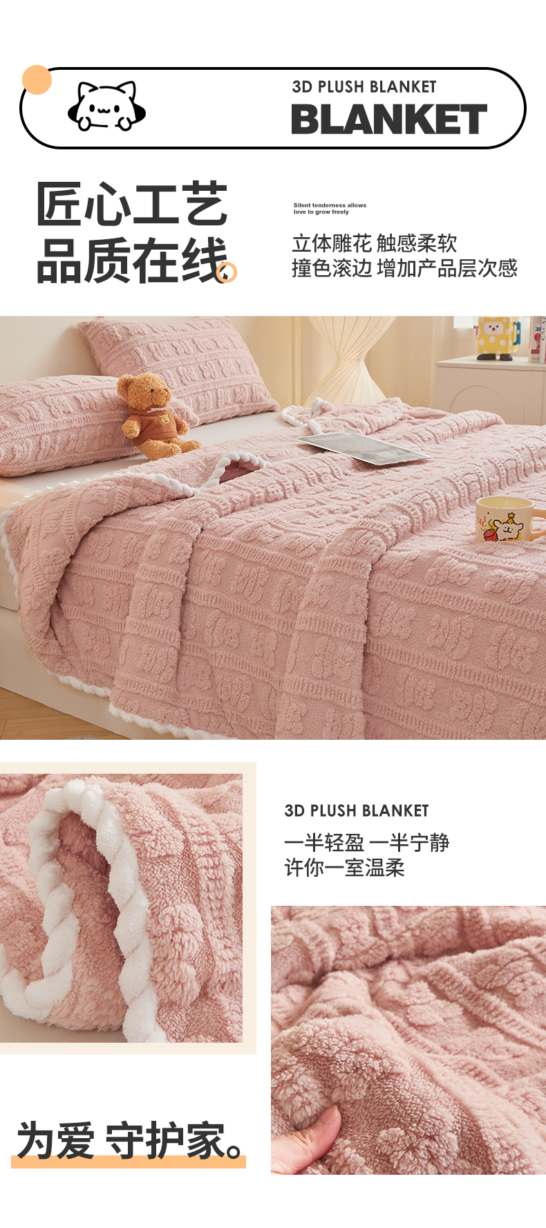 世纪绒品 2025新款A类立体牛奶绒雕花绒单层毛毯毯子-多宝熊 多宝熊 豆沙粉