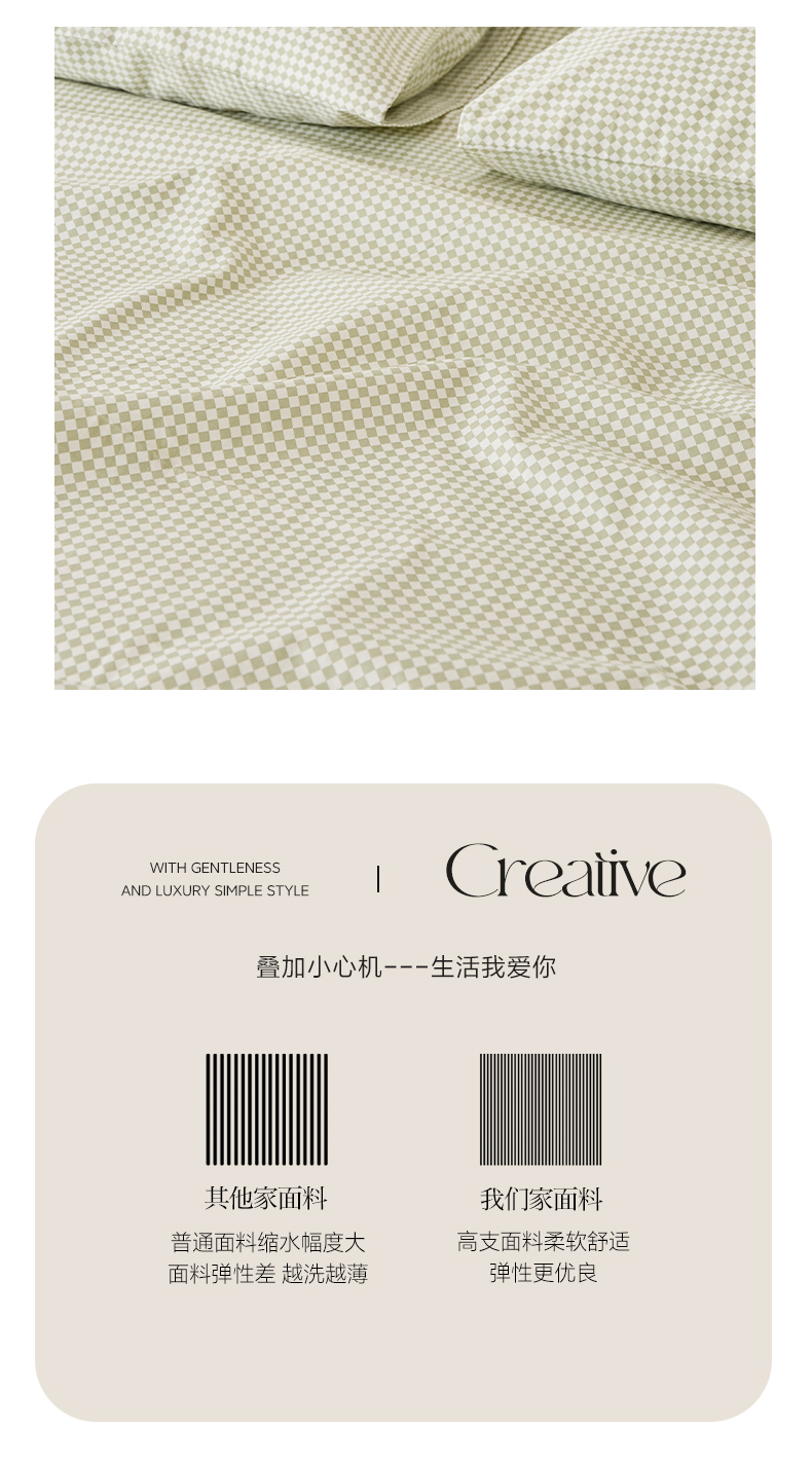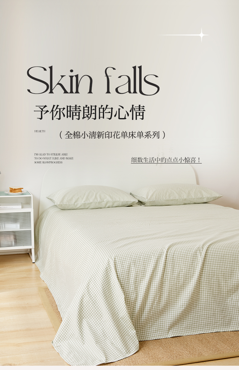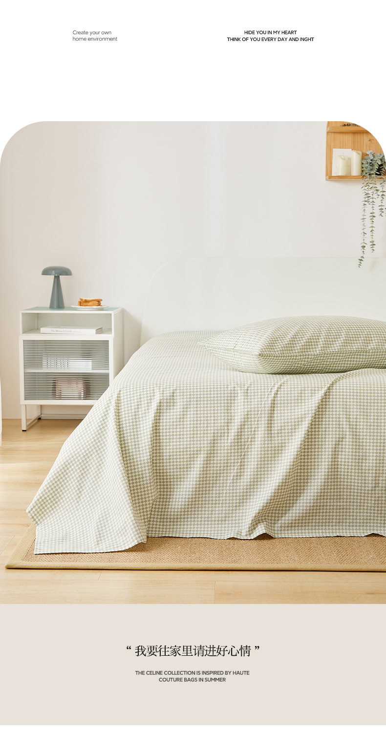 EH家居 2025新款全棉小清新印花单床单-织光系列 青色小格