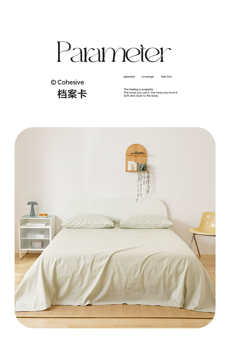 商品名称:EH家居 2025新款全棉小清新印花单床单-织光系列 青色小格