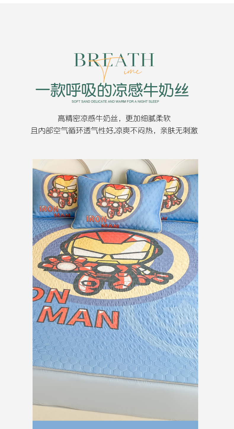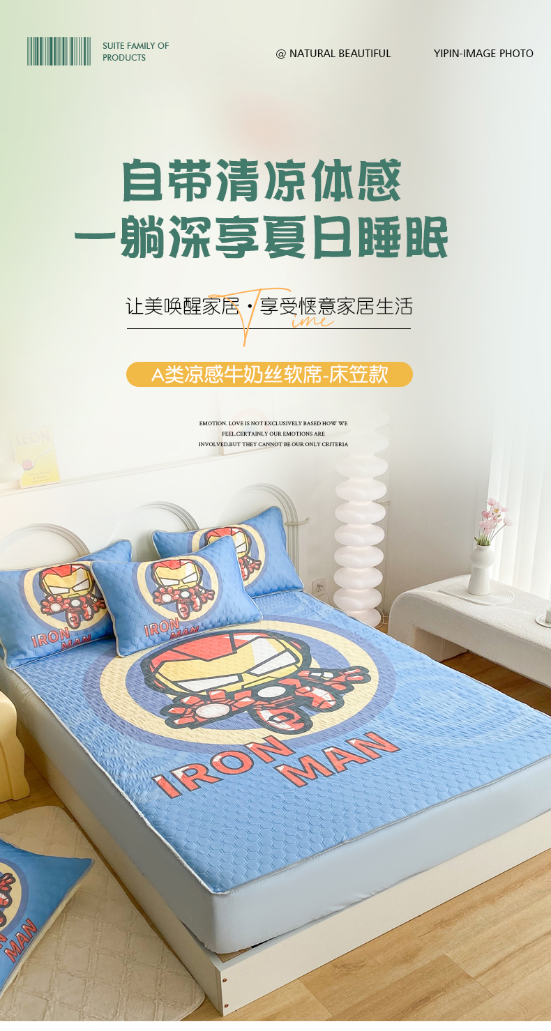• 91家纺网 家纺一手货源 找家纺 一电 2025新款牛奶丝凉席床笠可水洗凉感丝凉席学生宿舍单人裸睡空调席-系列二 钢铁侠