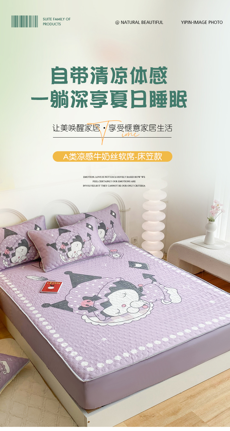• 91家纺网 家纺一手货源 找家纺 一电 2025新款牛奶丝凉席床笠可水洗凉感丝凉席学生宿舍单人裸睡空调席-系列二 睡觉公主