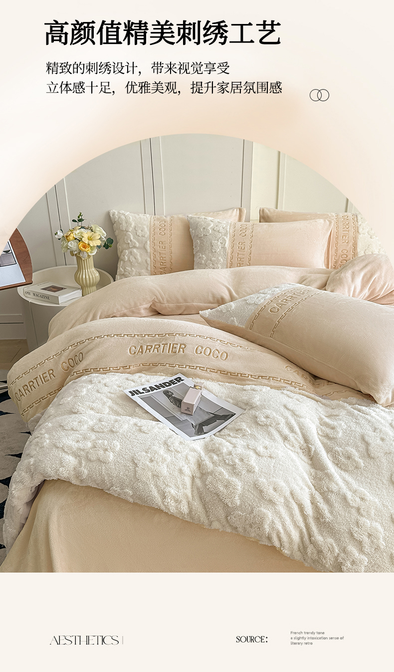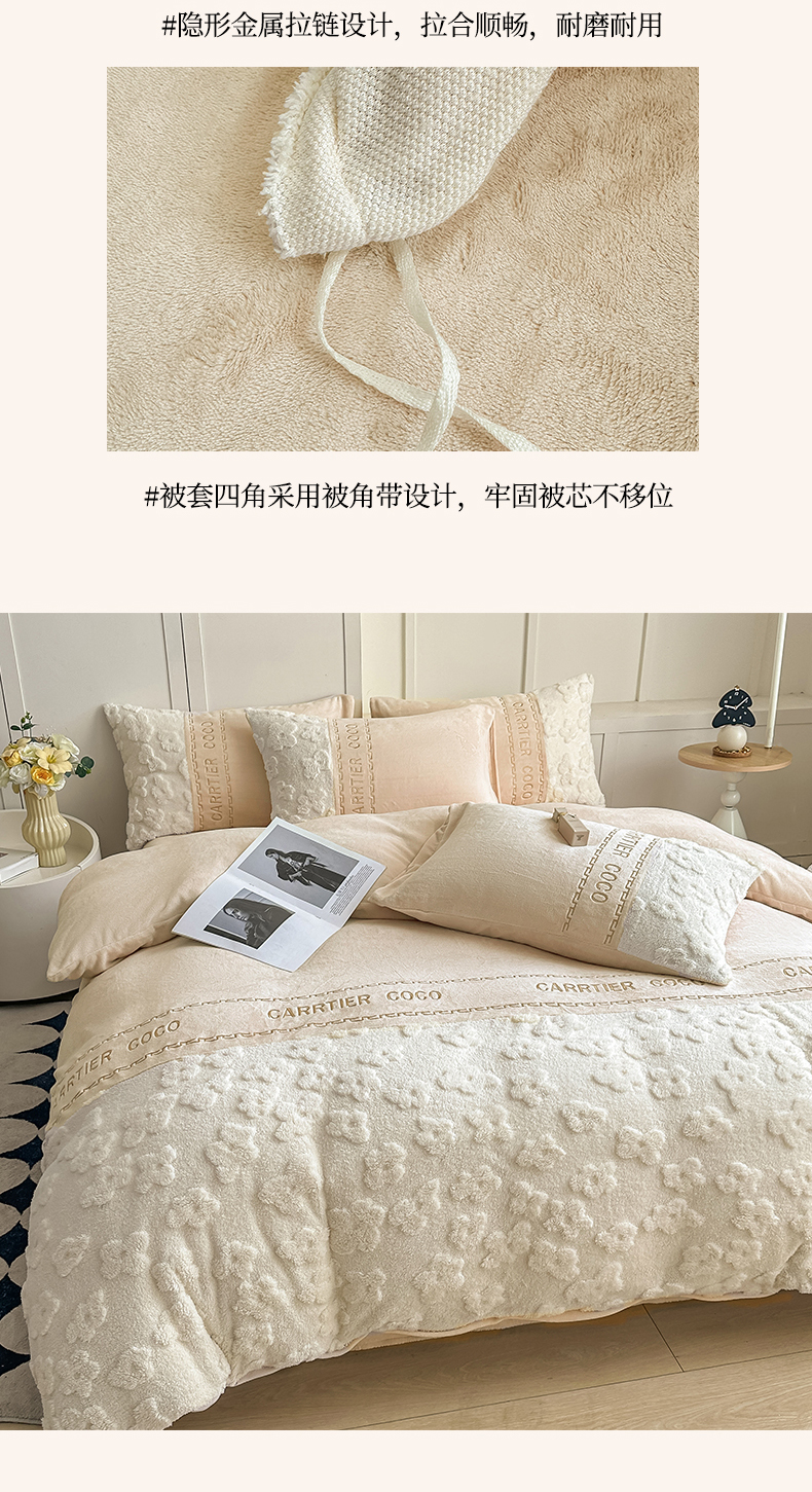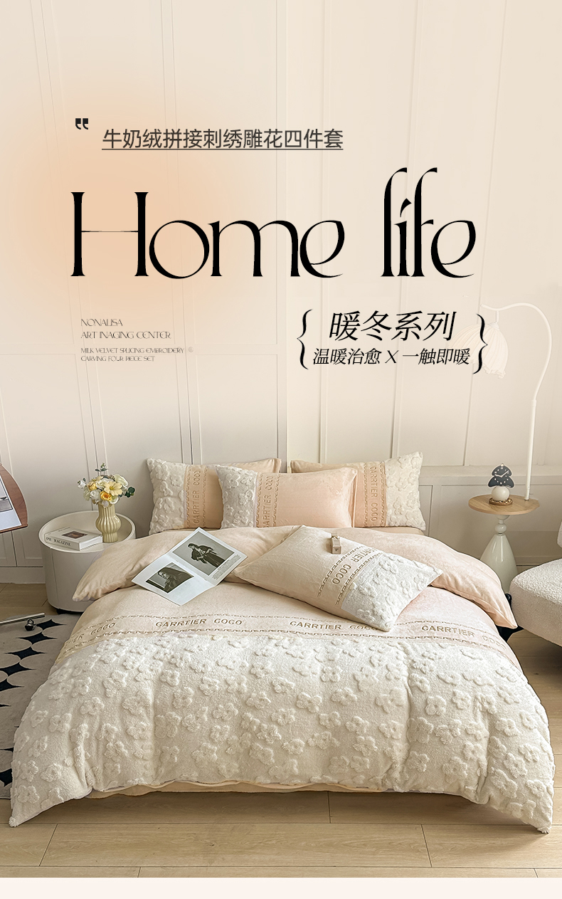 当前位置: 91家纺网 > 商品网购 > 床品套件 > 四件套 > 牛奶绒四件套 > 灰鲸 2025新款牛奶绒拼接刺绣四件套-安娜 安娜-奶茶