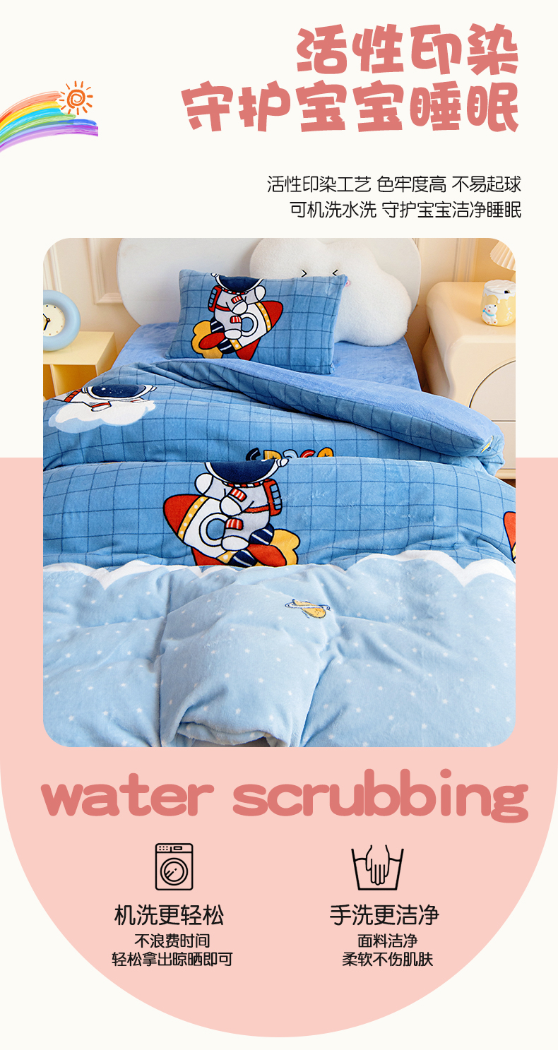 • 91家纺网 家纺一手货源 找家纺 梵赫 2025新款加厚牛奶绒被套被芯幼儿园被子系列 小恐龙和妈妈