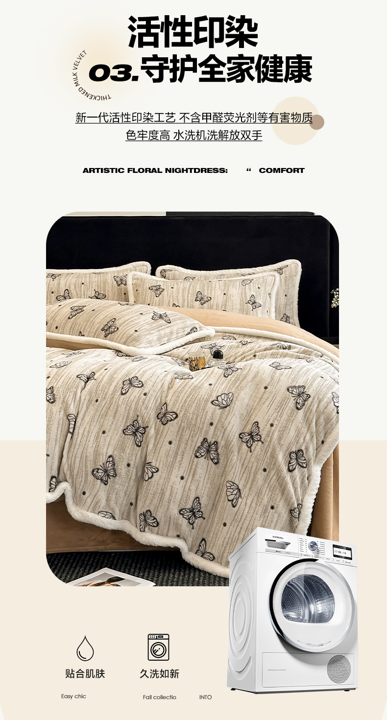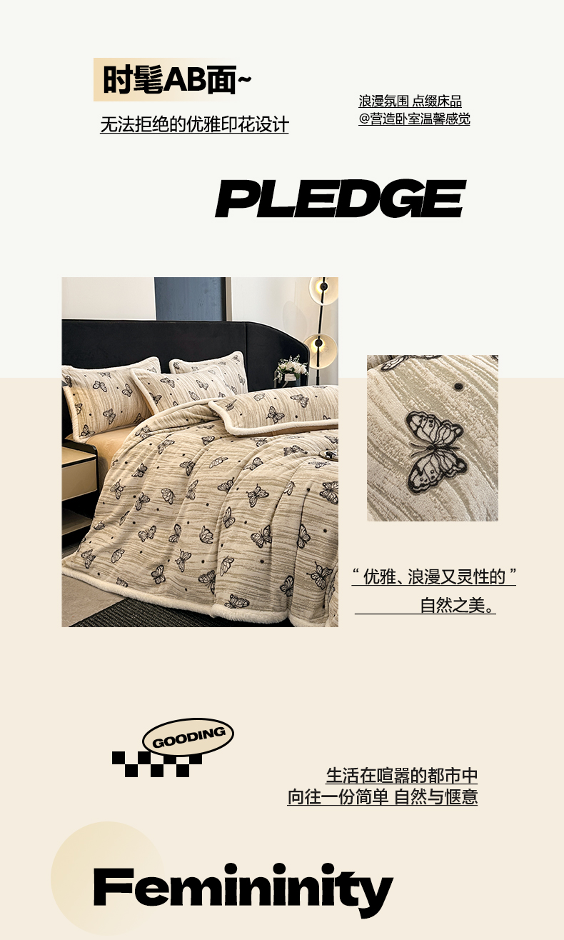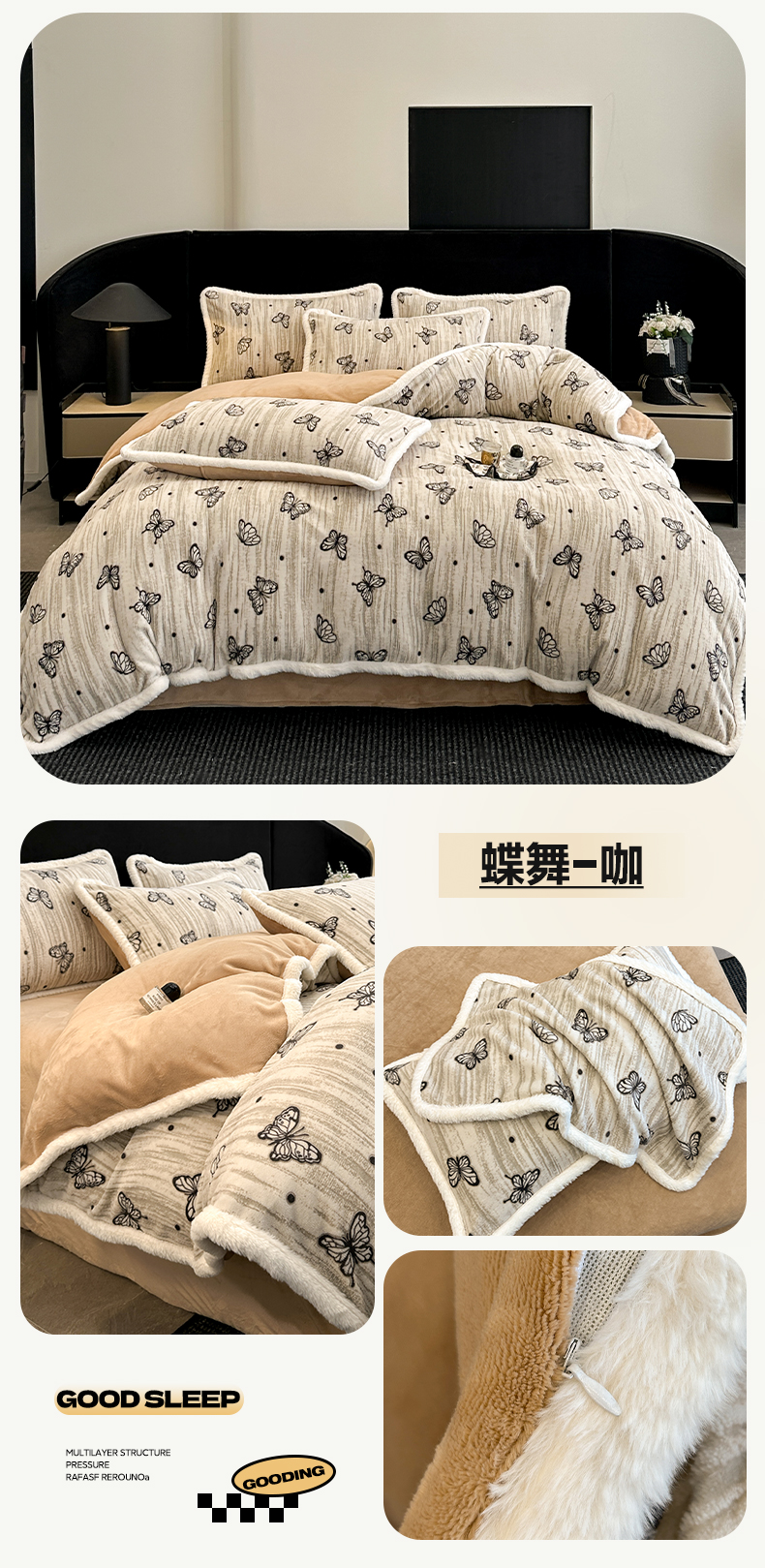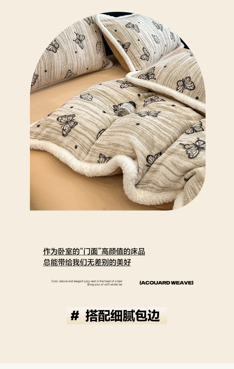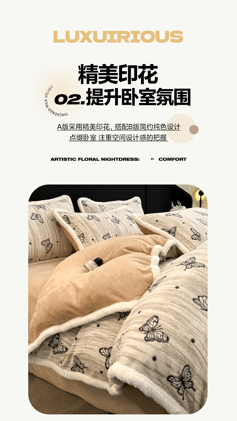 商品名称:如一 2025新款立体雕花牛奶绒兔毛包边四件套 蝶舞 -咖