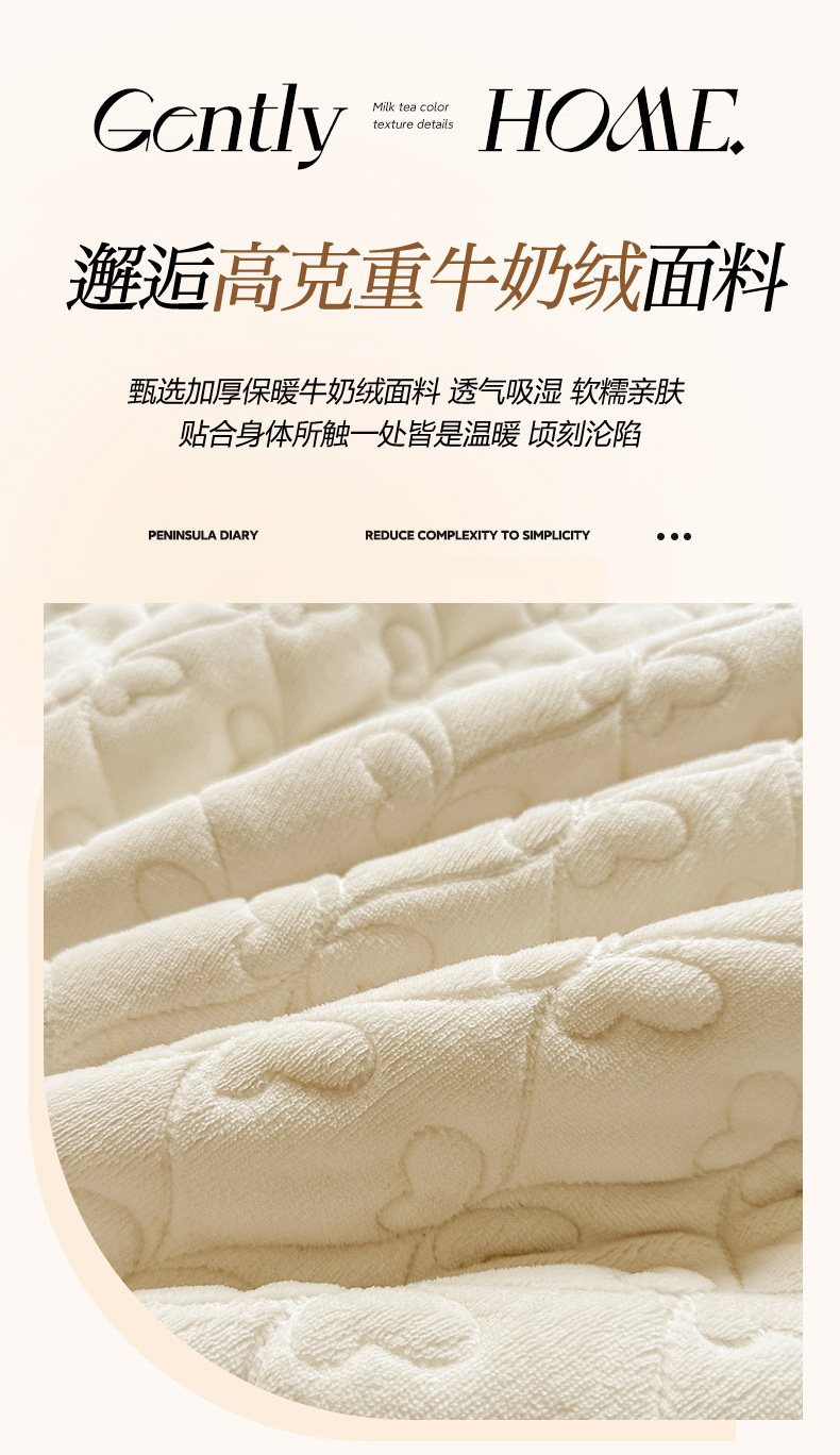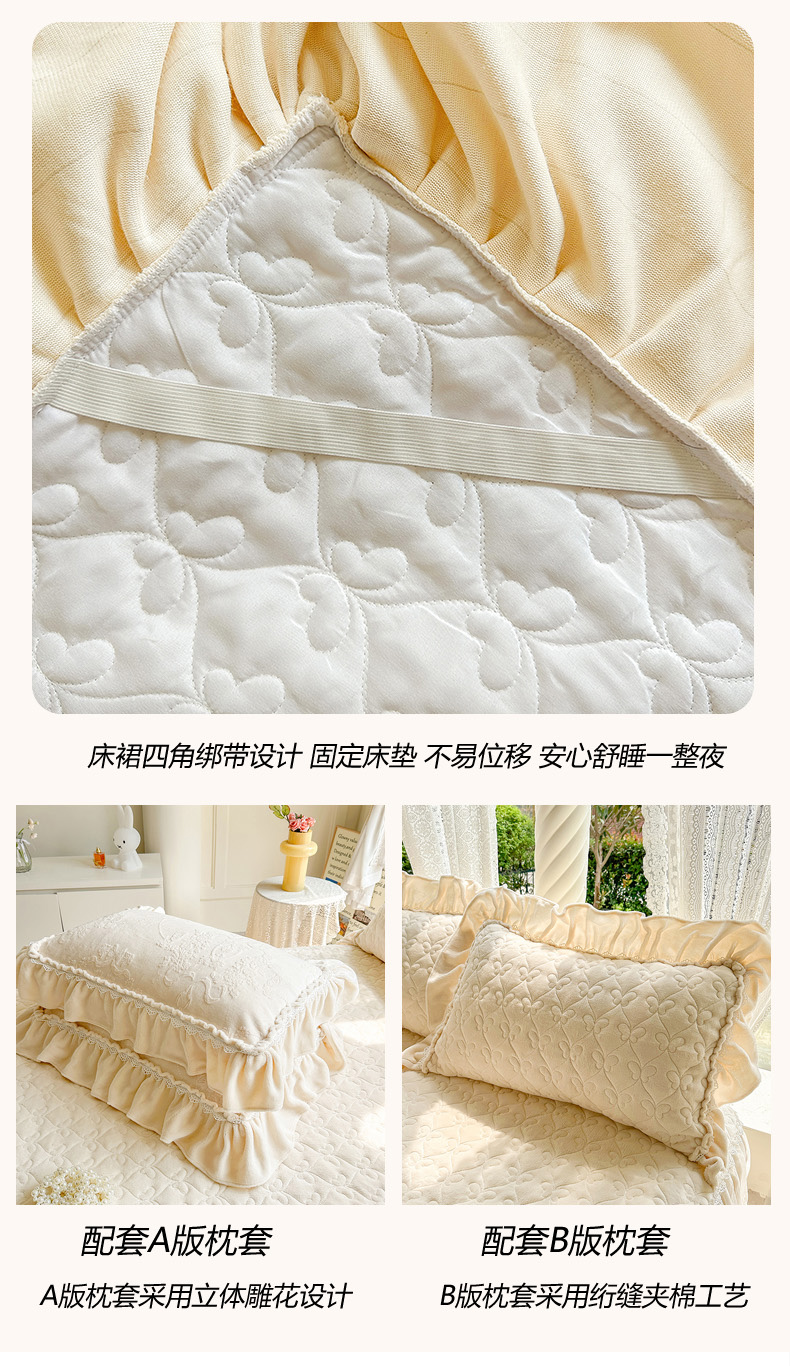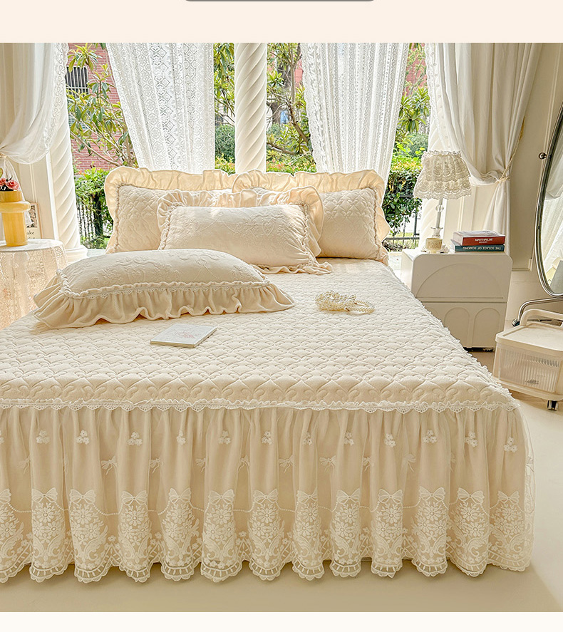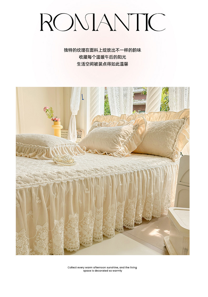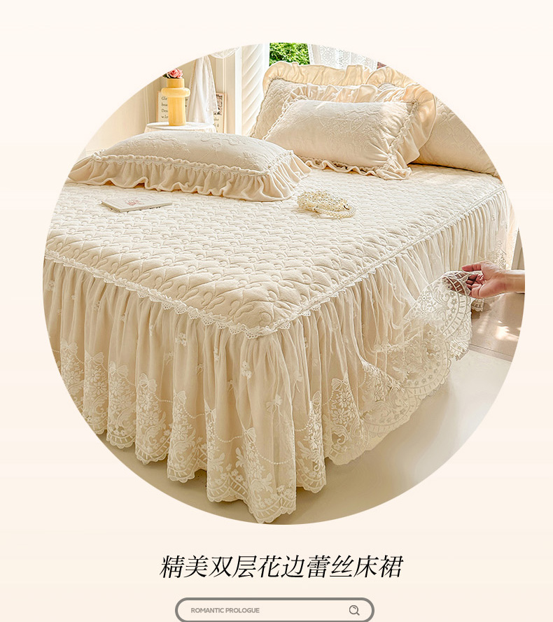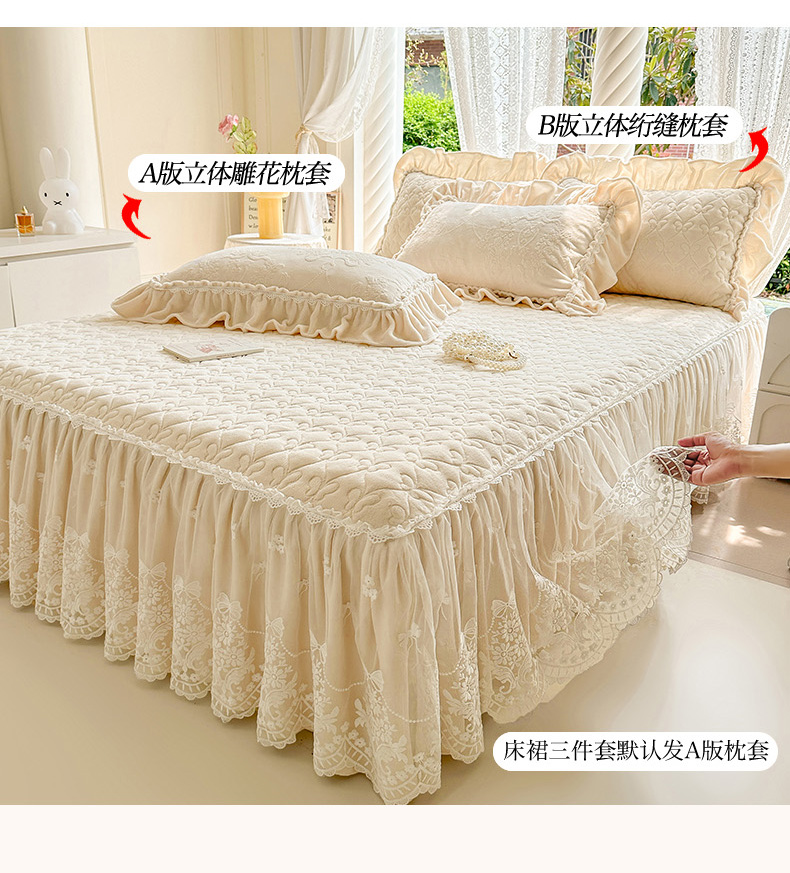 商品名称:罗艺轩 【控价】2025新款立体雕花牛奶绒加厚保暖床裙款三件套-安琪儿 安琪儿-米黄