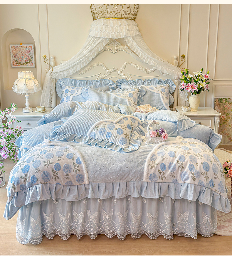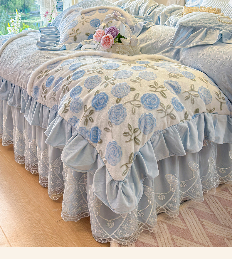 宜凡家纺 2025新款婴儿绒压花撞色双拼夹棉床裙四件套 床裙款-予花