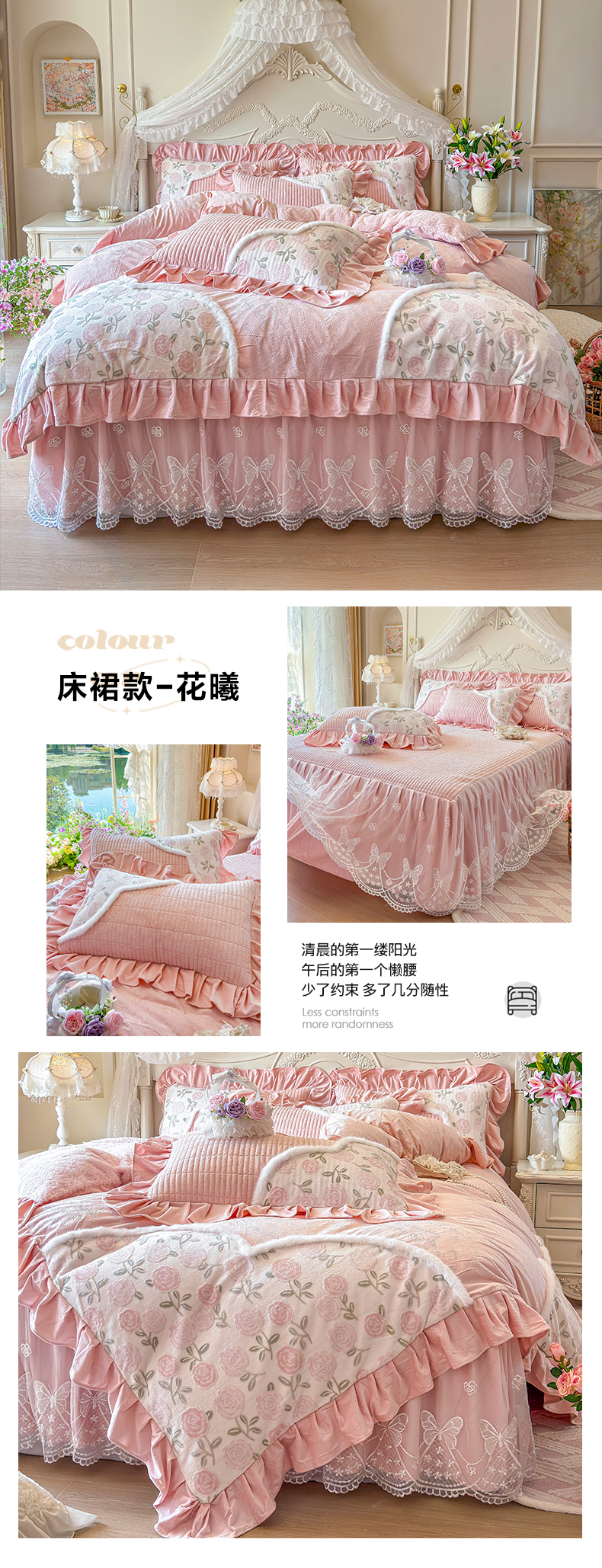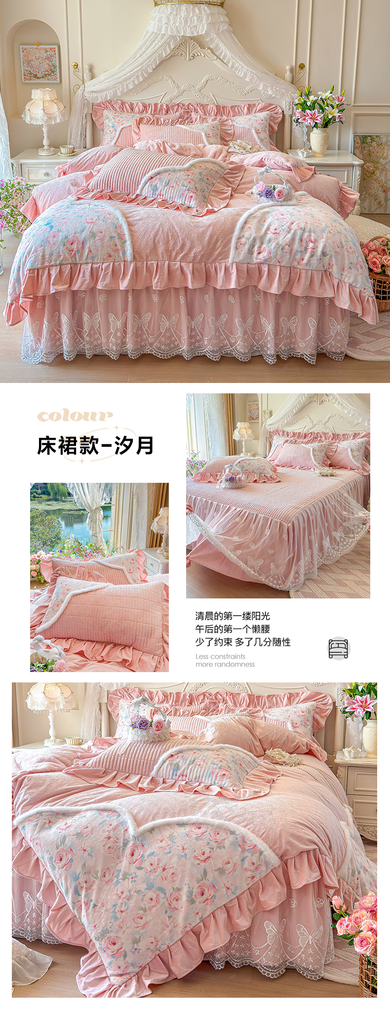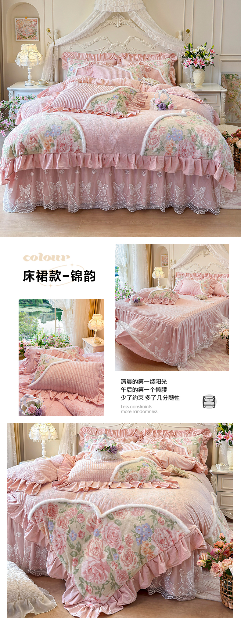 (总)宜凡家纺 2025新款兔绒提花牛奶绒夹棉床裙四件套,爱心 少女粉,爱心 粉紫,爱心 驼色,蝶舞 大红,蝶舞 米色,蝶舞 浅紫,蝶舞 玉色,简爱 苍青,简爱 豆沙紫,简爱 玉色,樱桃 苍青,樱桃 豆沙紫,樱桃 奶油白
