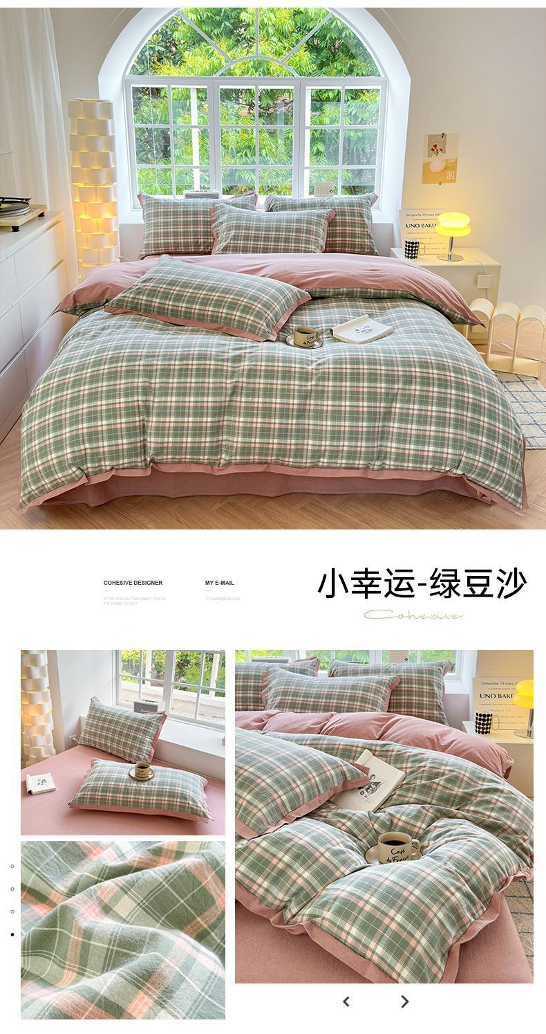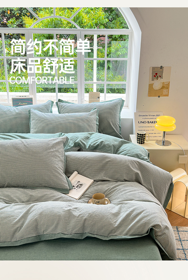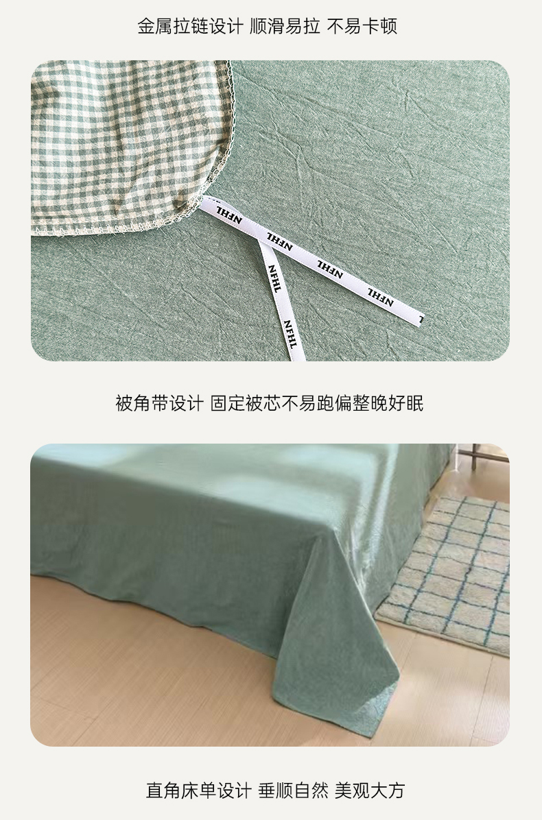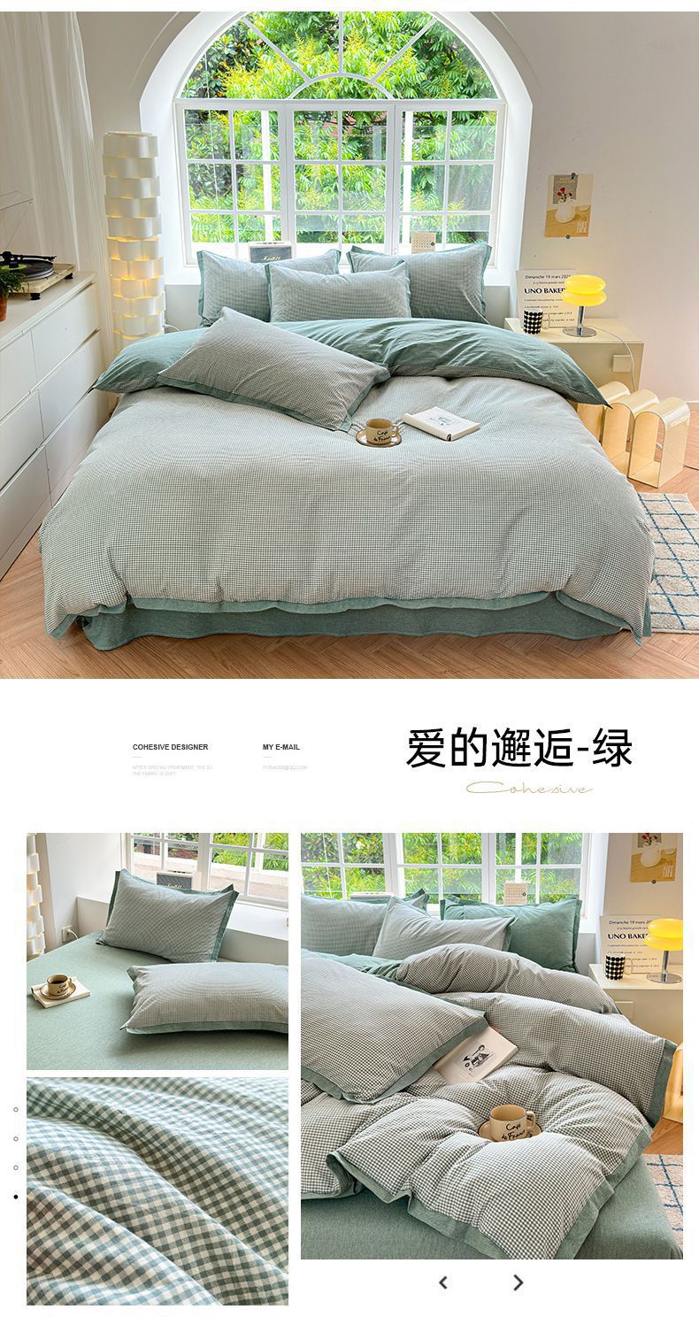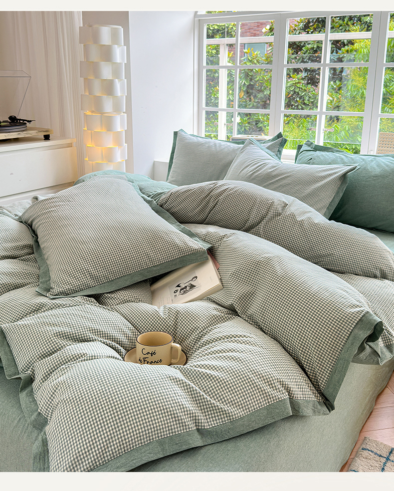 当前位置: 91家纺网 > 商品网购 > 床品套件 > 四件套 > 水洗棉四件套 > 宜家坊 2025新款A类全棉纯棉色织水洗棉宽边断角工艺四件套 可定制尺寸 爱的邂逅-绿