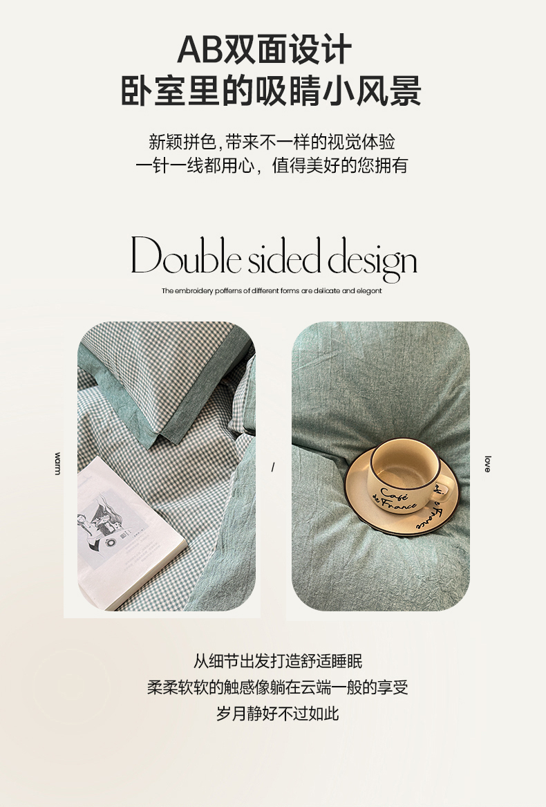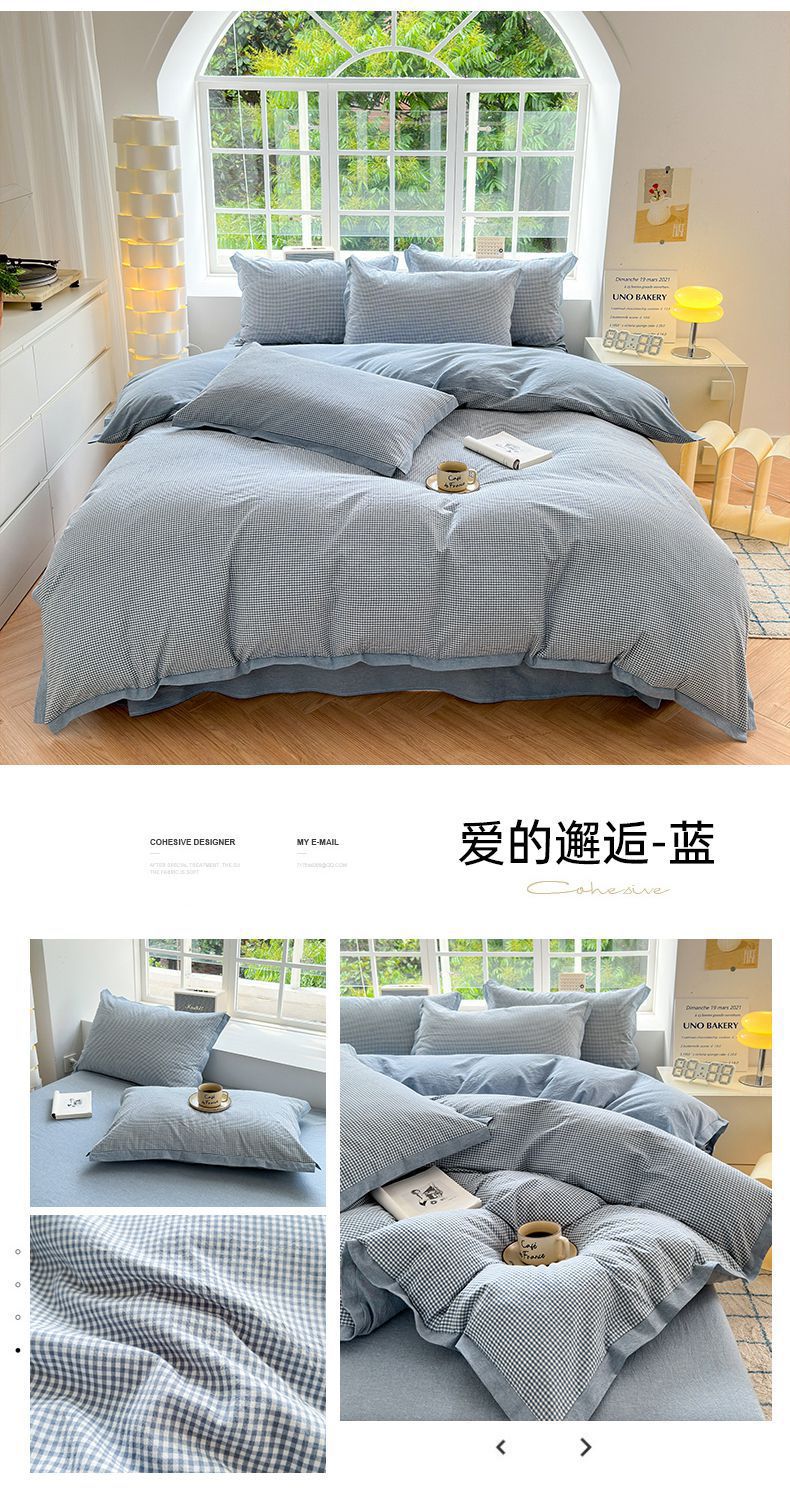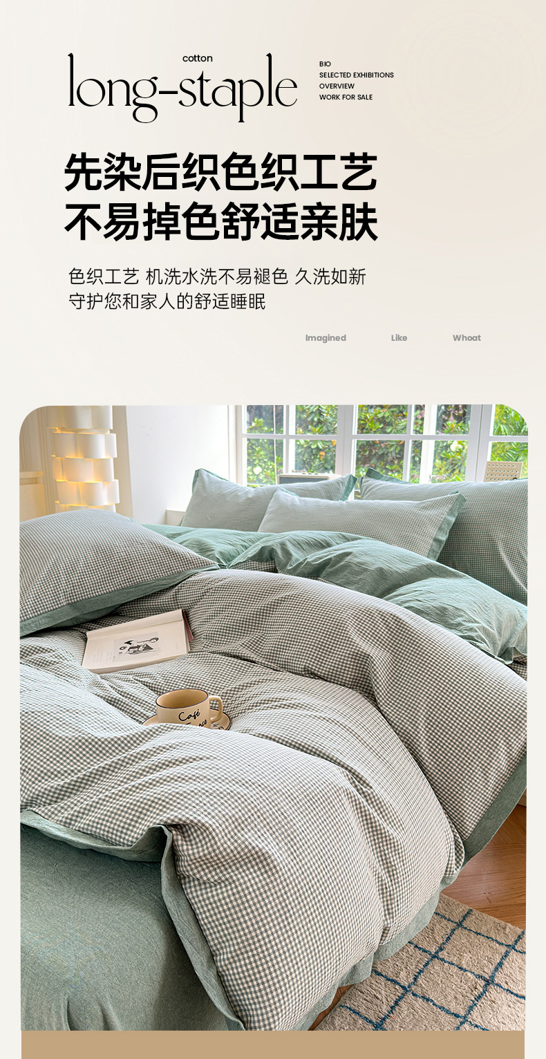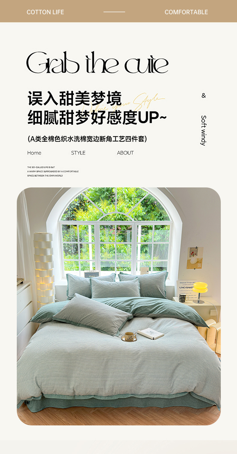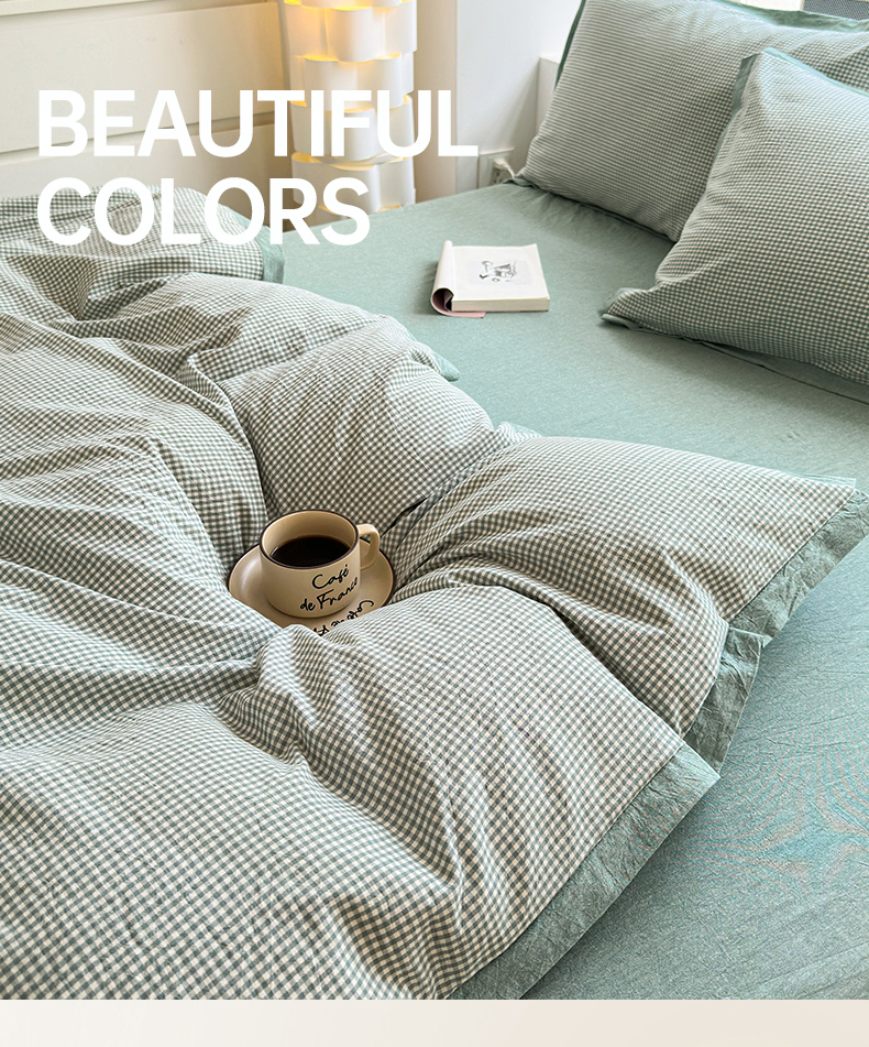 当前位置: 91家纺网 > 商品网购 > 床品套件 > 四件套 > 水洗棉四件套 > 宜家坊 2025新款A类全棉纯棉色织水洗棉宽边断角工艺四件套 可定制尺寸 爱的邂逅-绿