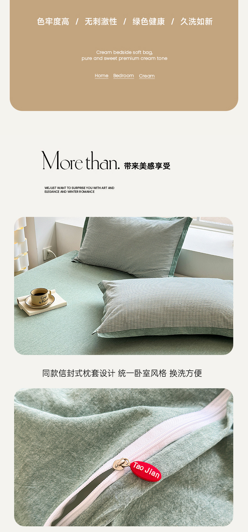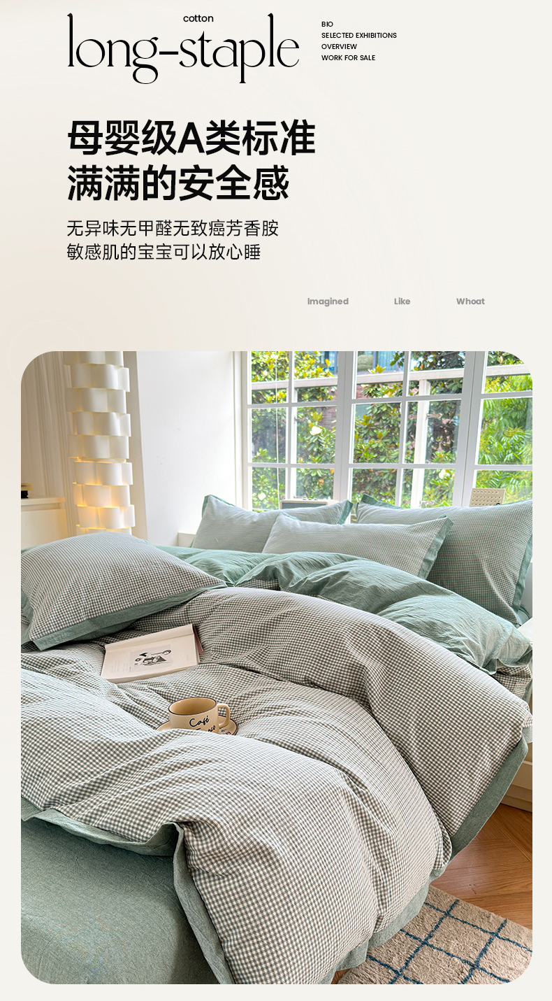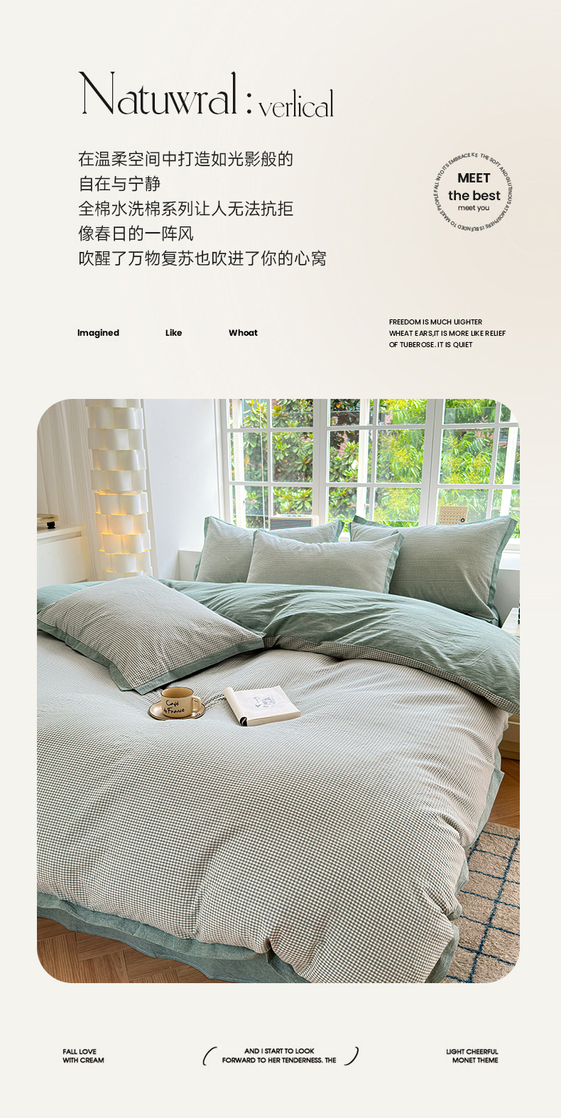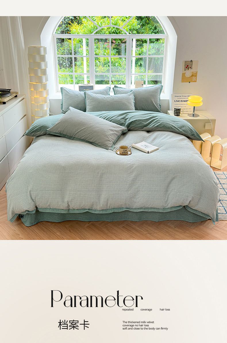 当前位置: 91家纺网 > 商品网购 > 床品套件 > 四件套 > 水洗棉四件套 > 宜家坊 2025新款A类全棉纯棉色织水洗棉宽边断角工艺四件套 可定制尺寸 爱的邂逅-绿