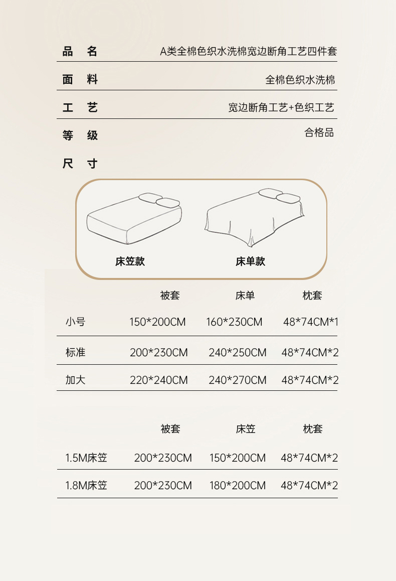 【床笠款】1.8四件套-被套200x230 | ¥150.00 |