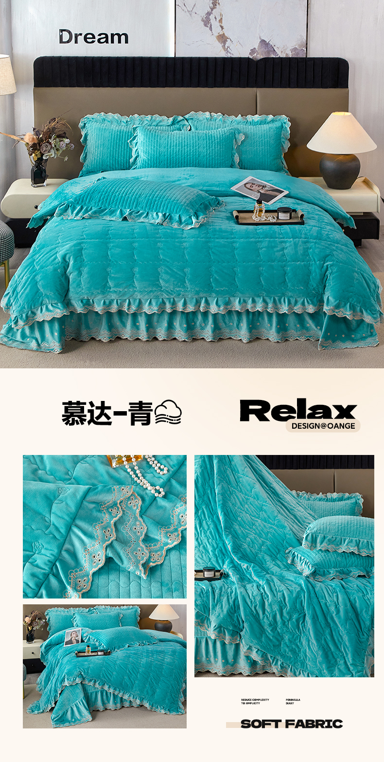 (总)青竹苑 2025新款婴儿绒宝宝绒玫瑰版床盖款四件套,慕达-绿,慕达-红,慕达-青,慕达-深粉,慕达-妍红,慕达-紫