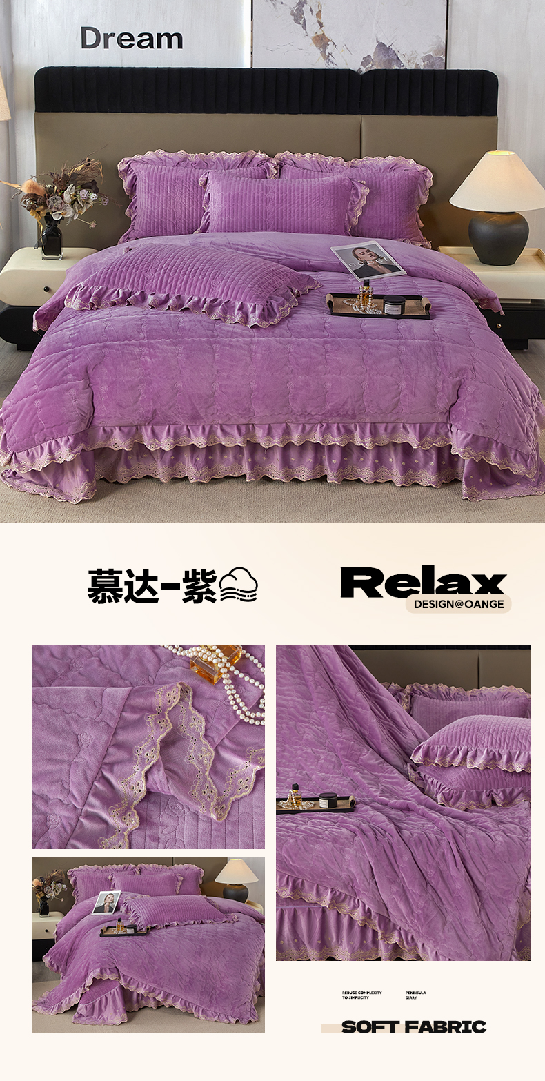 (总)青竹苑 2025新款雕花牛奶绒夹棉床盖款四件套,森野-幻紫,森野-暖白,森野-柔粉,森野-浅灰