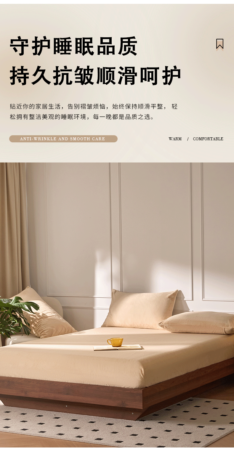 商品名称:618家纺 2025新款樱花绒单品四件套系列-单床笠 奶咖