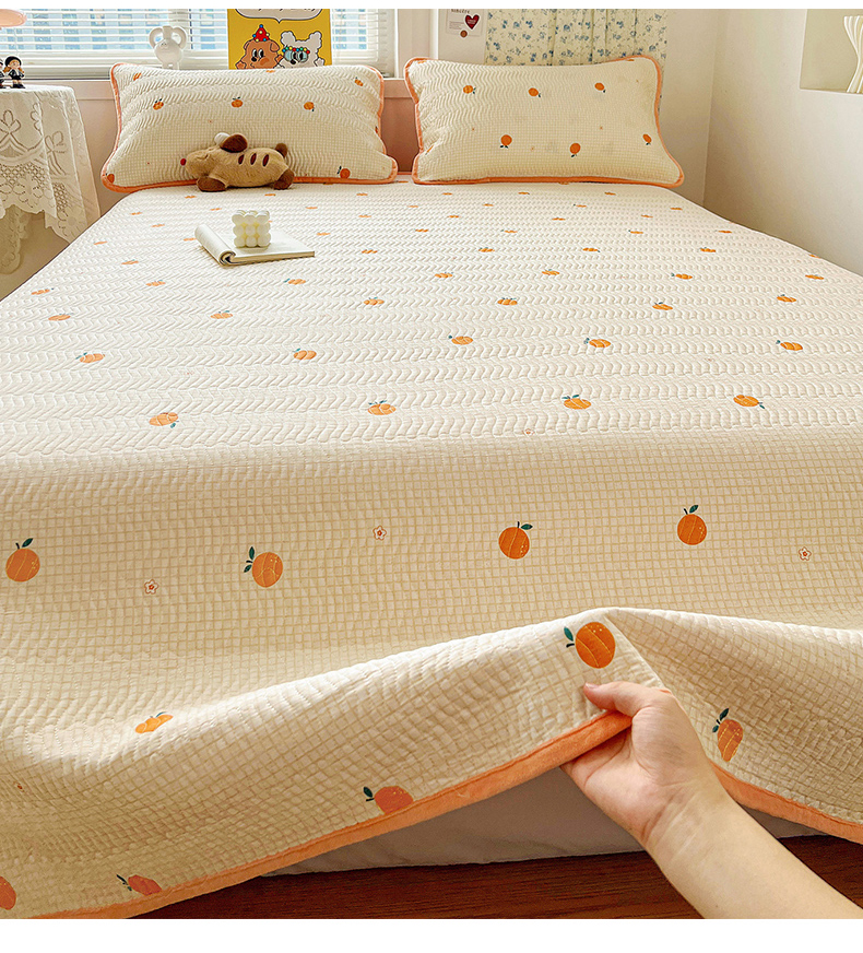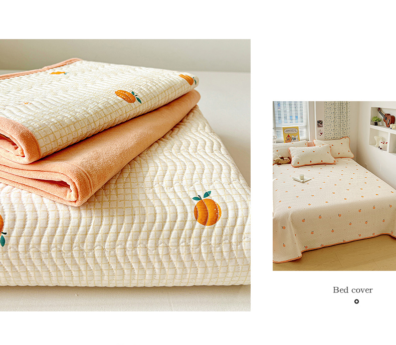 梦精灵 2025新款棉加绒床盖全棉学生床夹棉床盖双面可用纯棉床单(棉加绒枕套) 棉加绒-甜桔