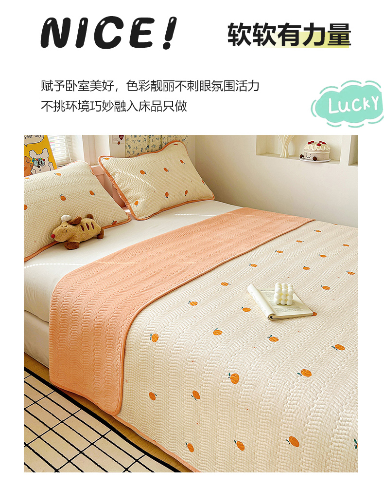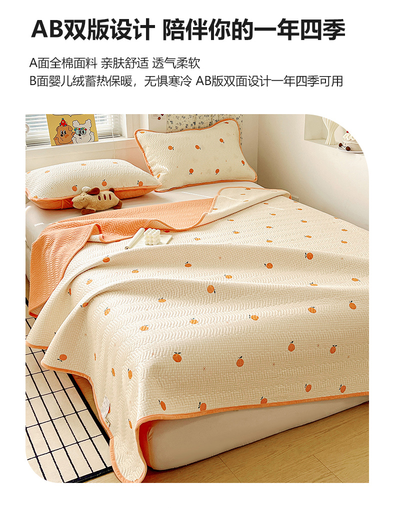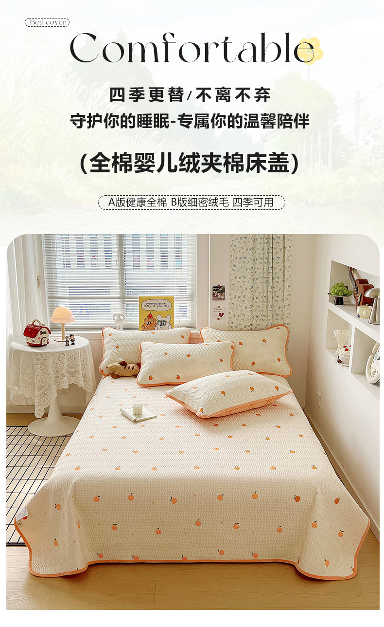 • 91家纺网 家纺一手货源 找家纺 梦精灵 2025新款棉加绒床盖全棉学生床夹棉床盖双面可用纯棉床单(棉加绒枕套) 棉加绒-甜桔