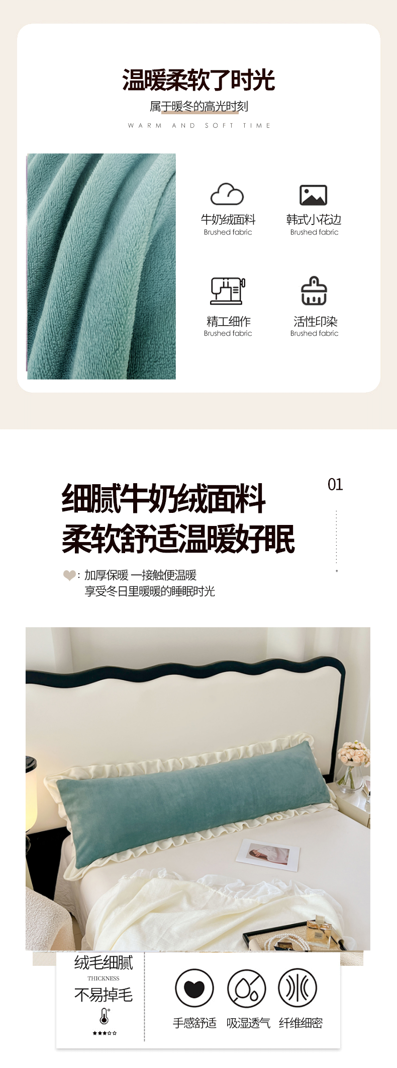 48x120cm【A类牛奶绒花边枕套】/只