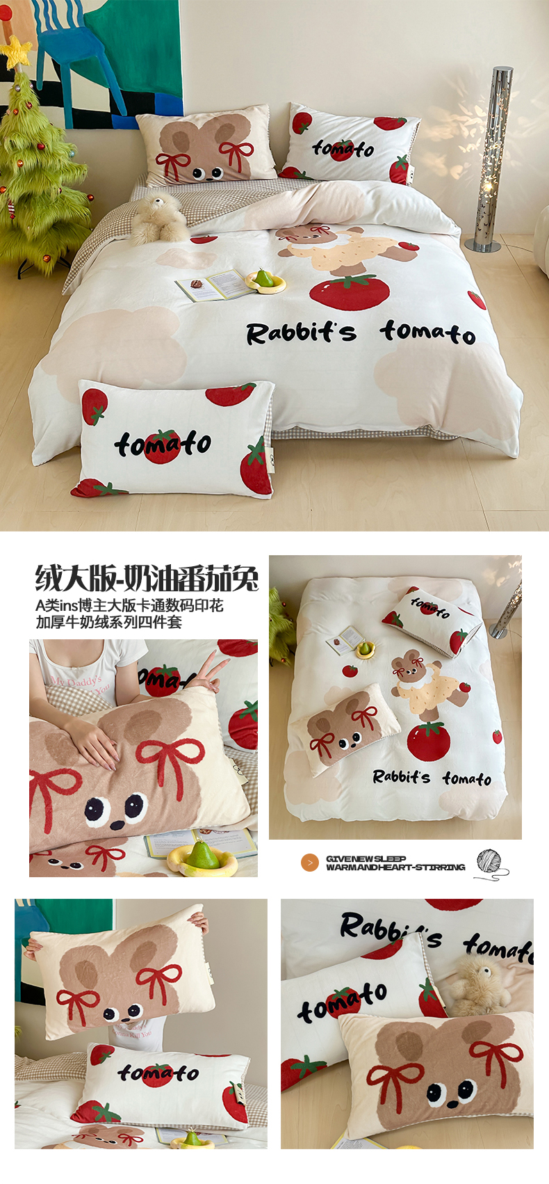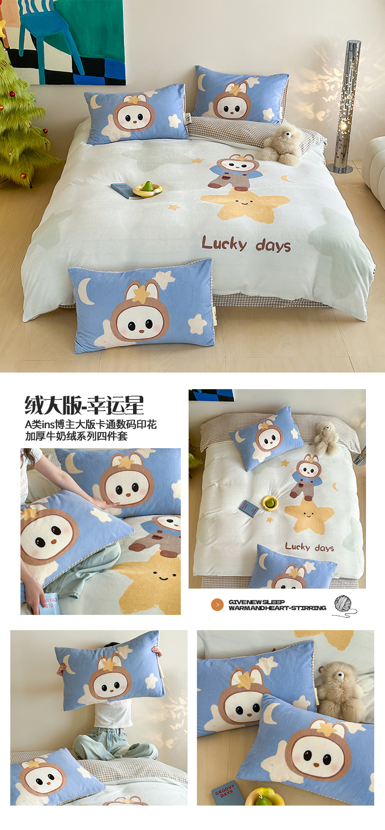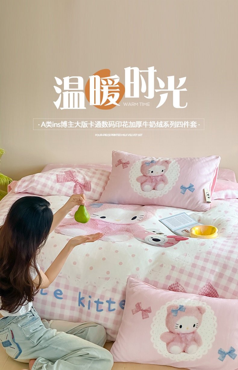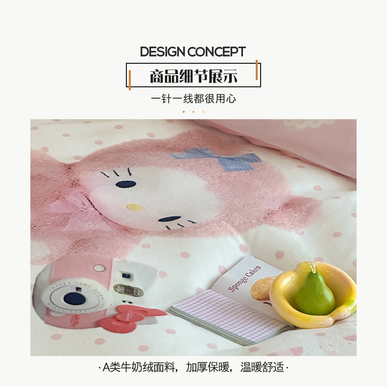 商品名称:(总)桃子家居 2025新品A类ins博主大版卡通数码印花加厚牛奶绒系列四件套
