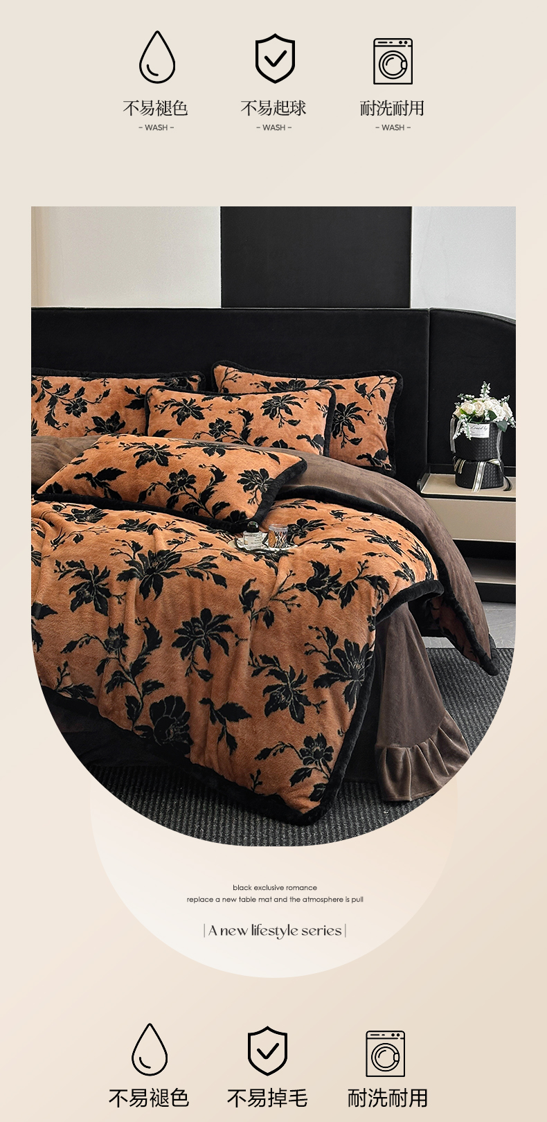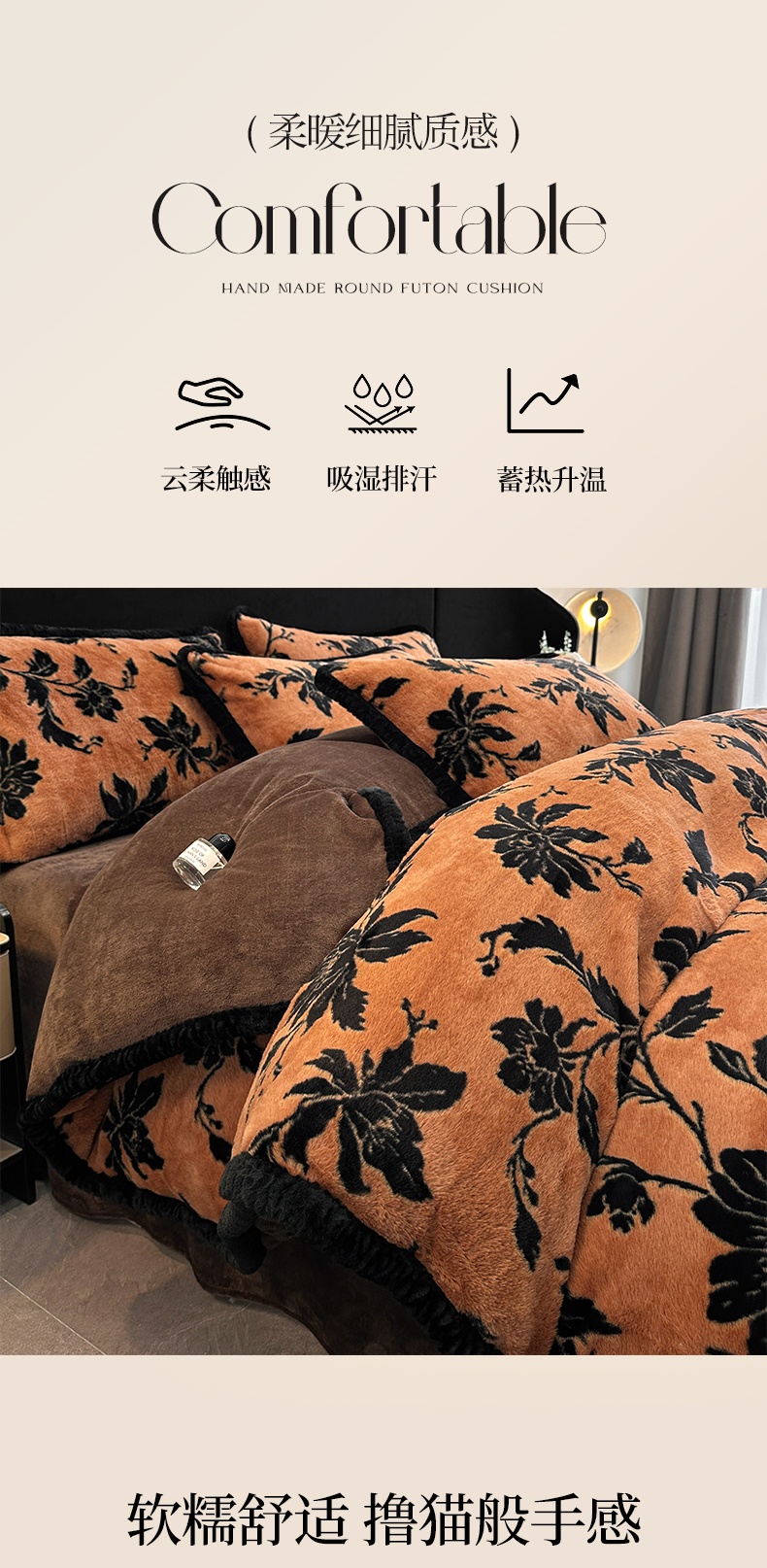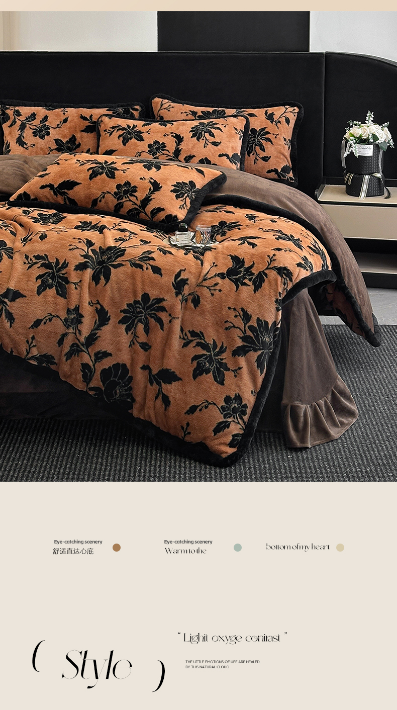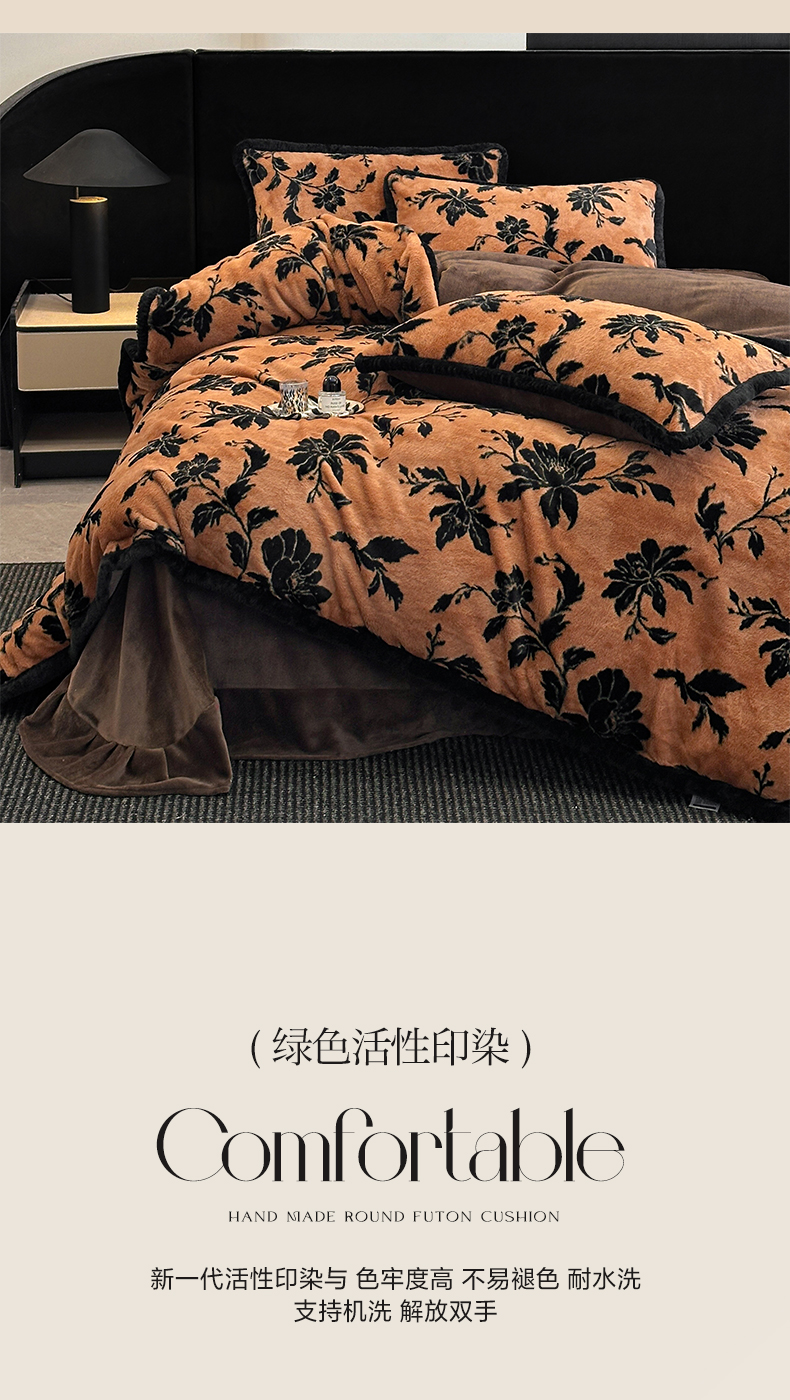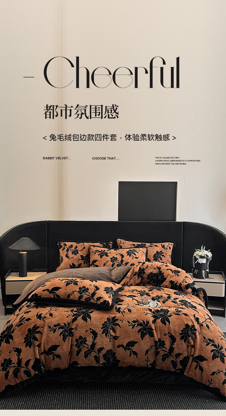 民新家纺 2025新款兔毛绒包边款四件套 国色天香