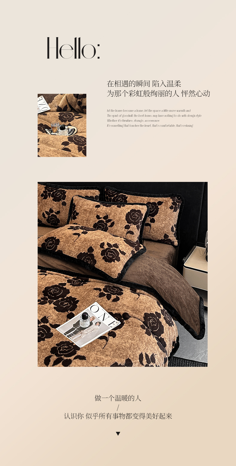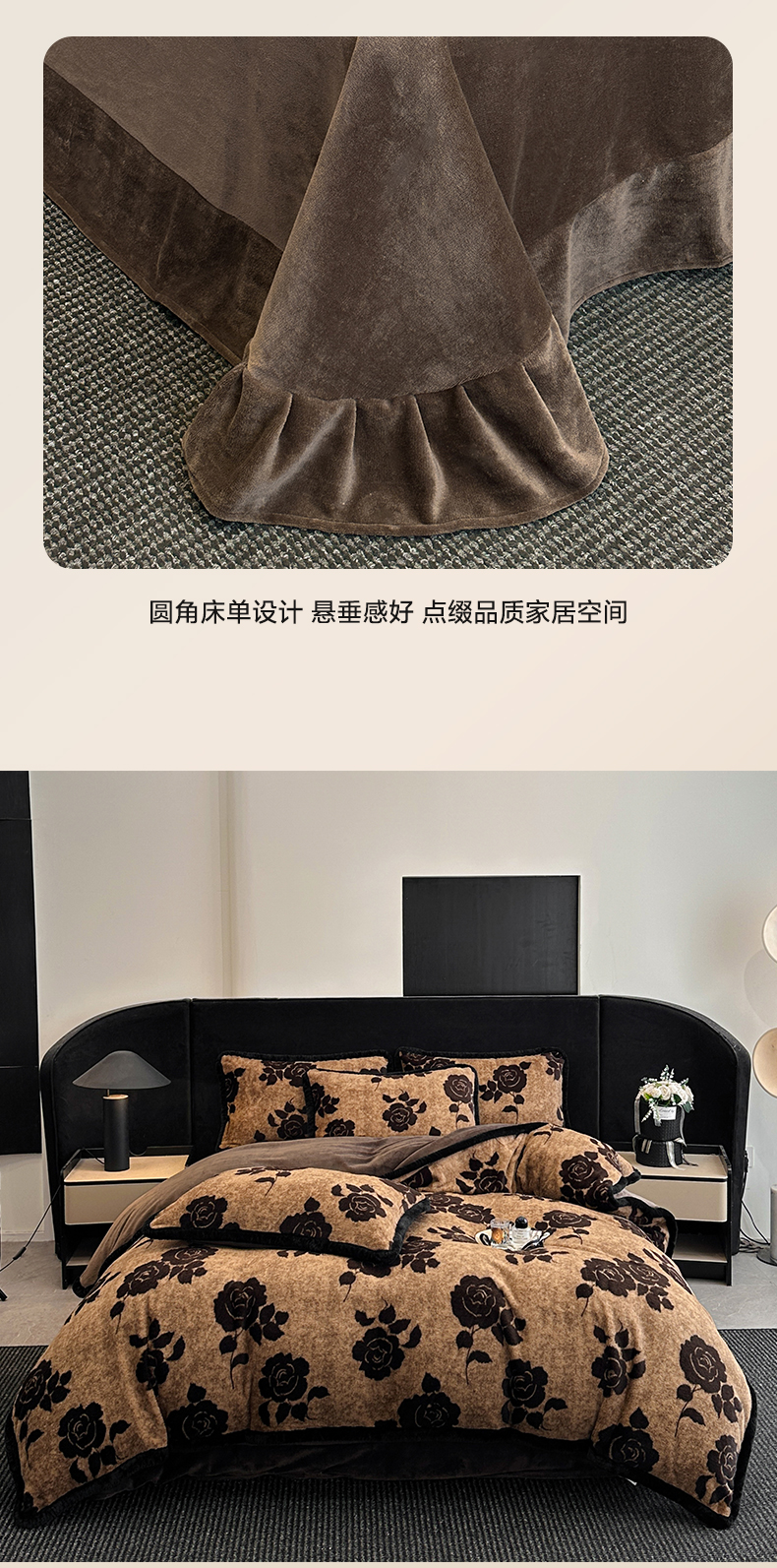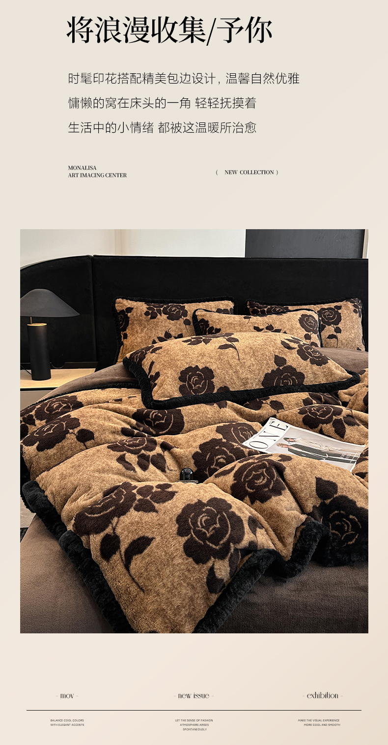商品名称:民新家纺 2025新款兔毛绒包边款四件套 月影-咖