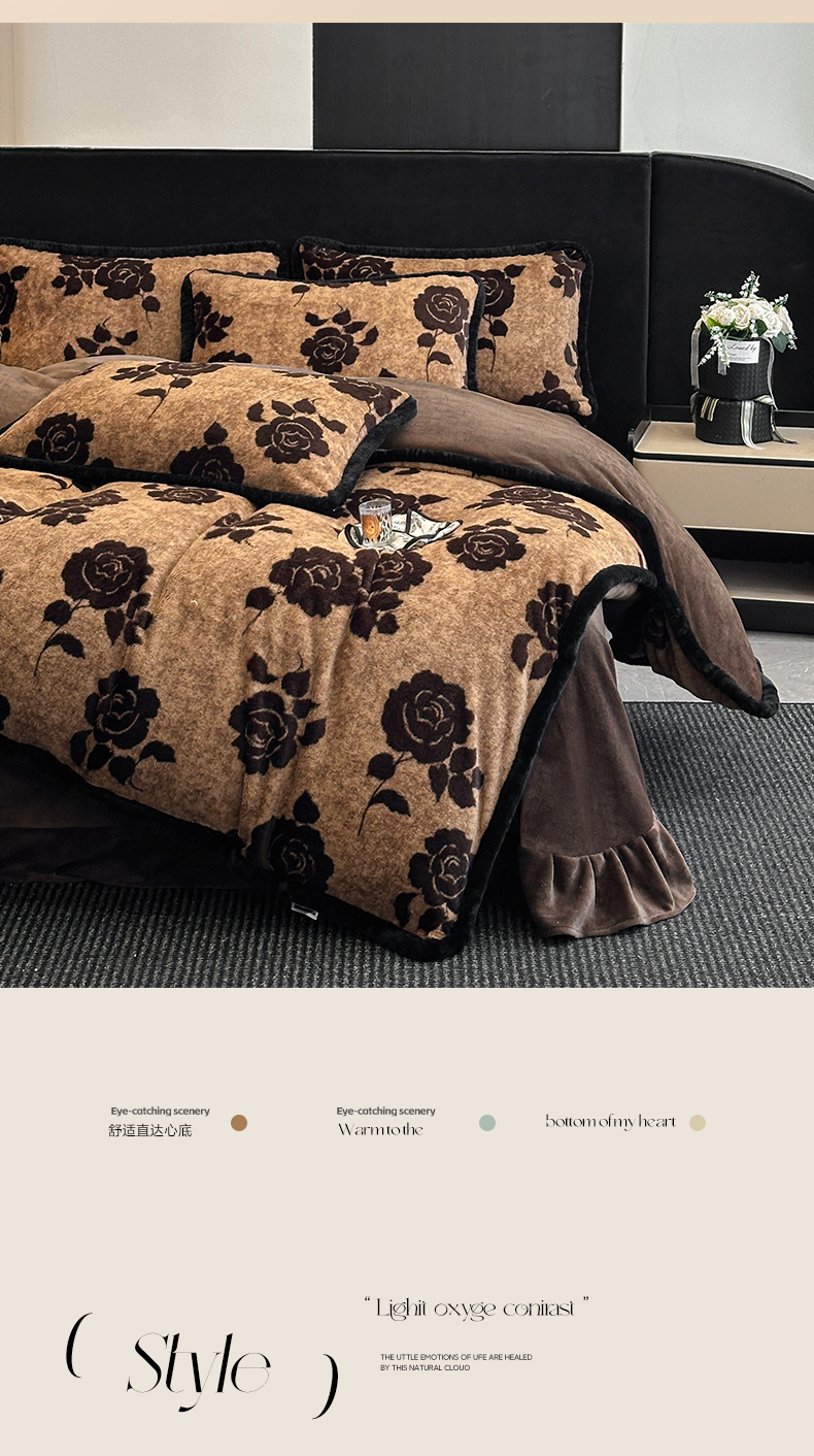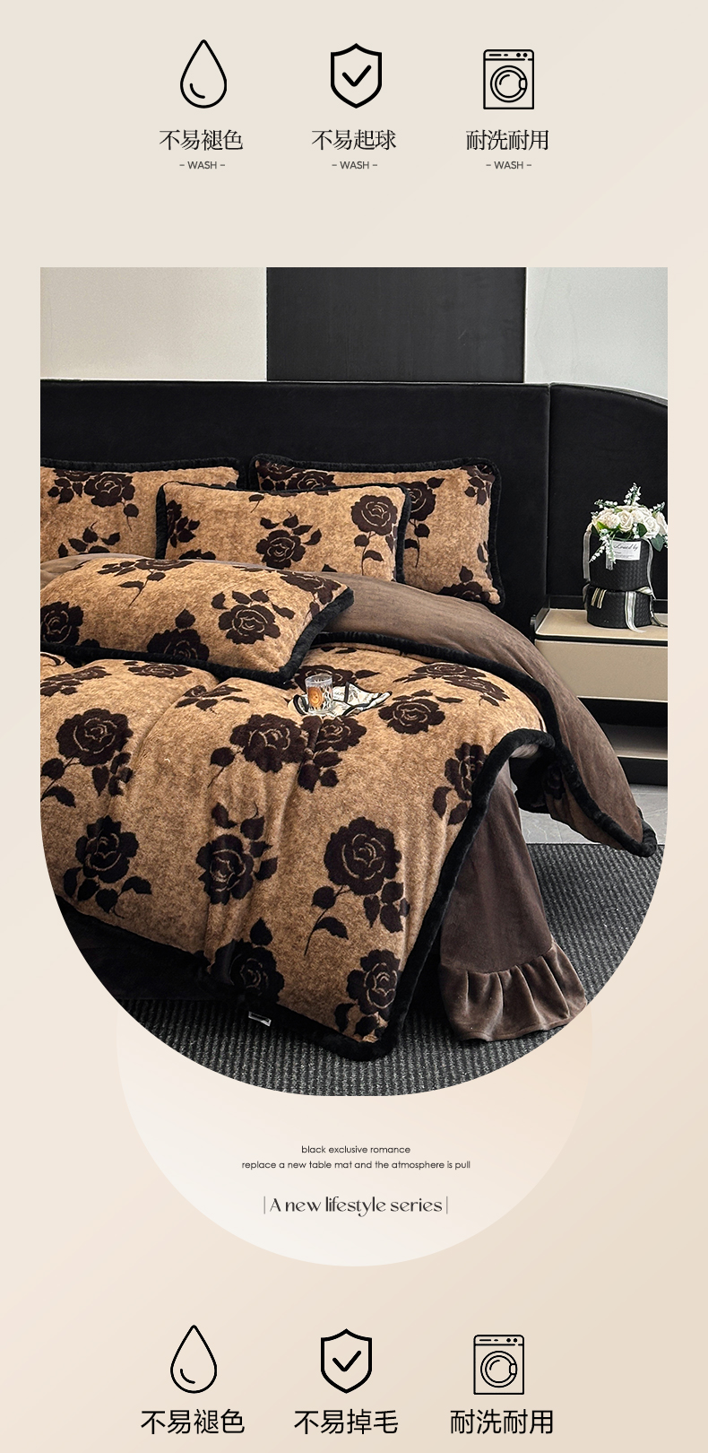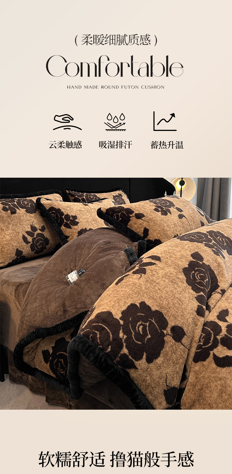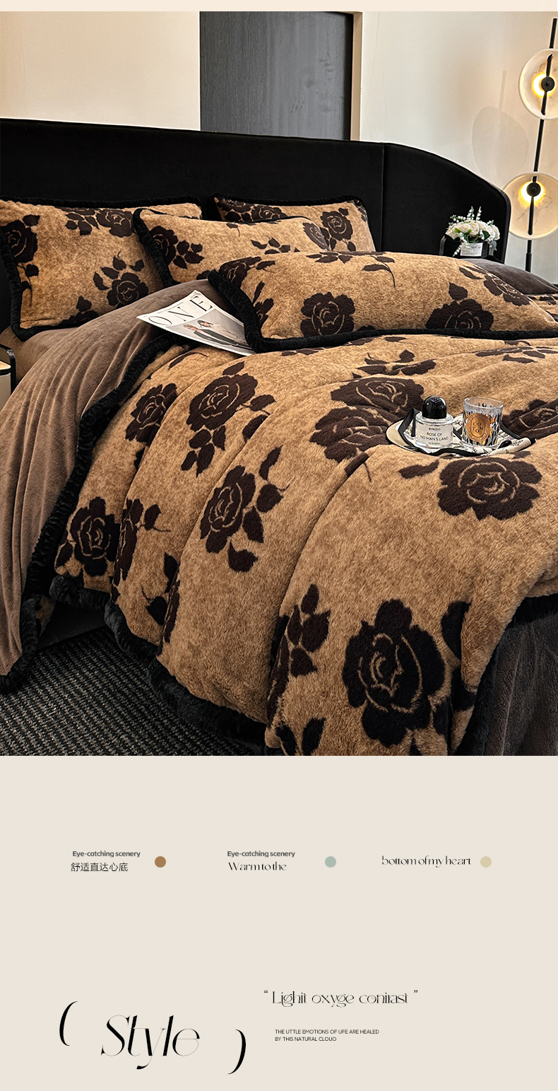 商品名称:民新家纺 2025新款兔毛绒包边款四件套 月影-咖