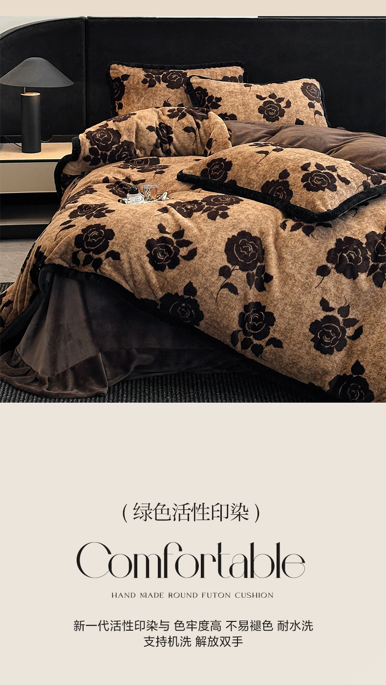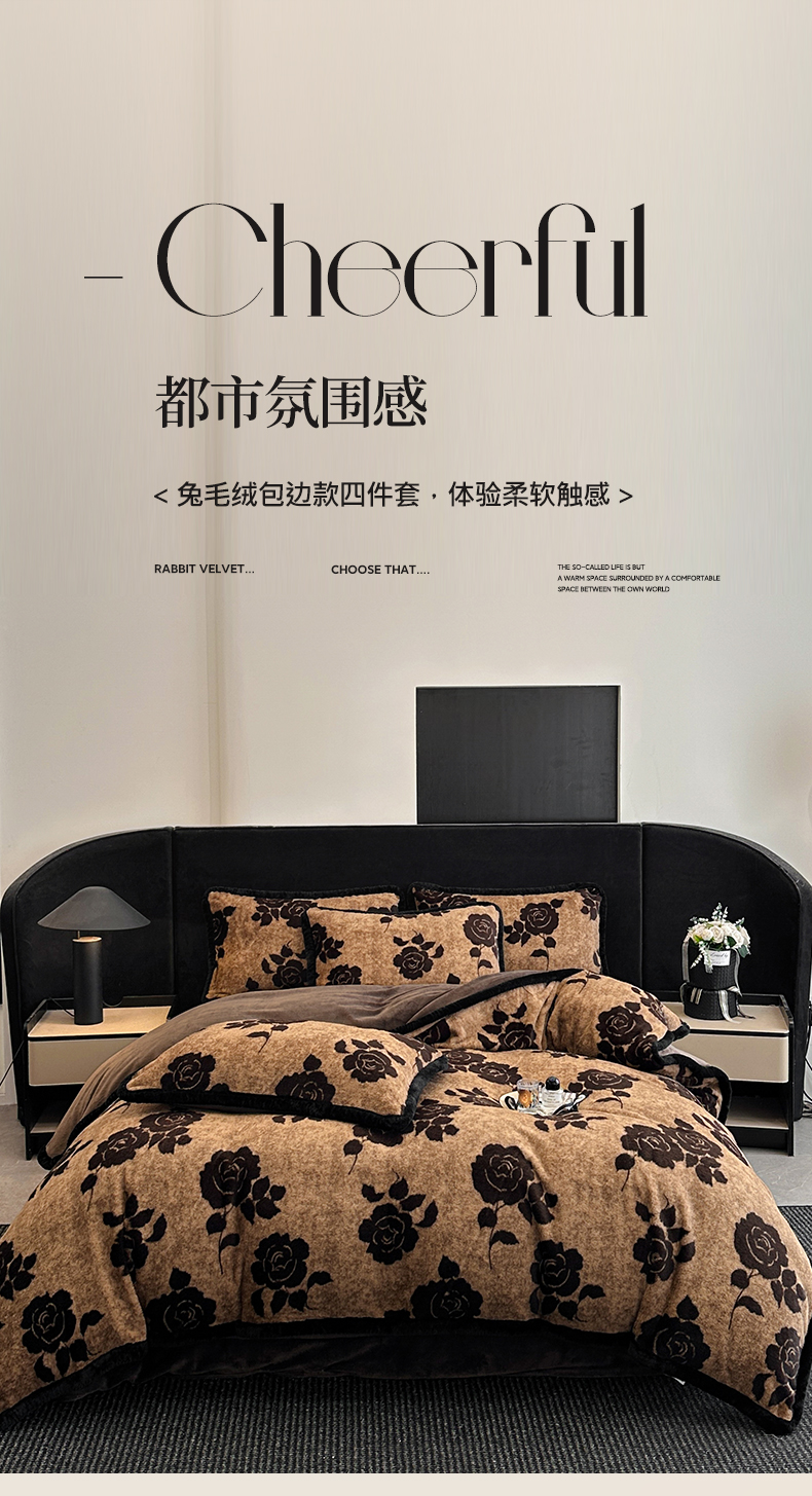 民新家纺 2025新款兔毛绒包边款四件套 月影-咖