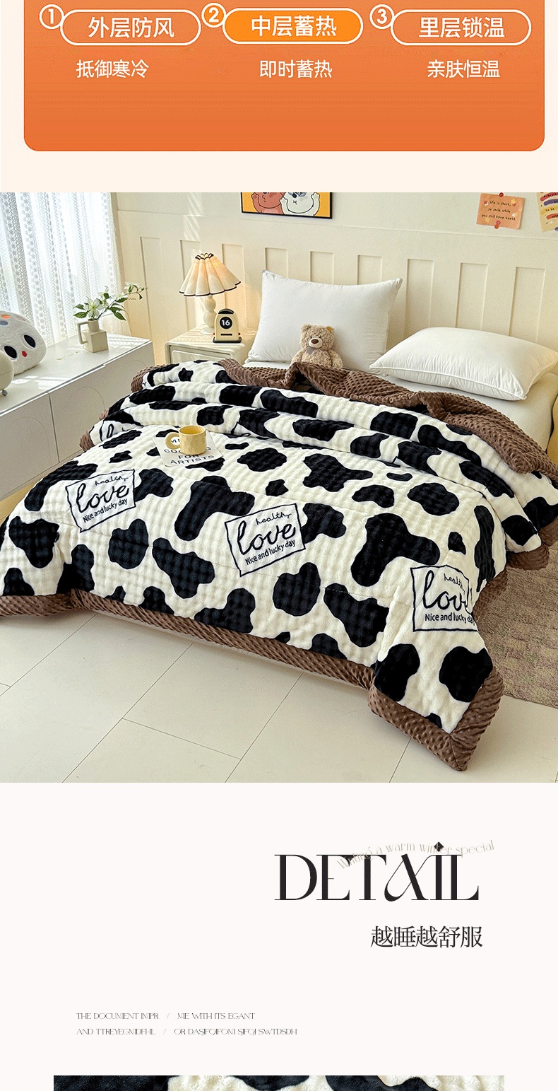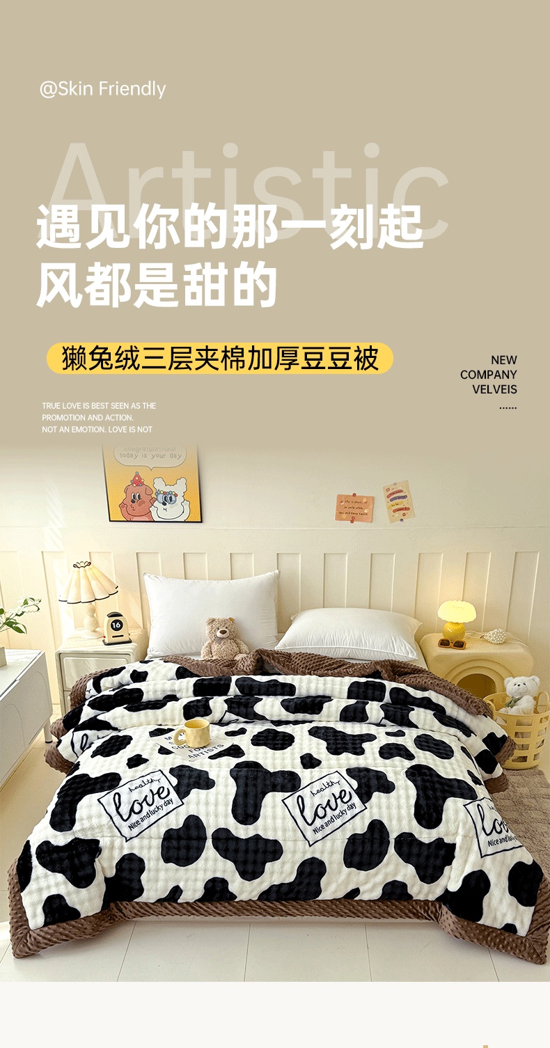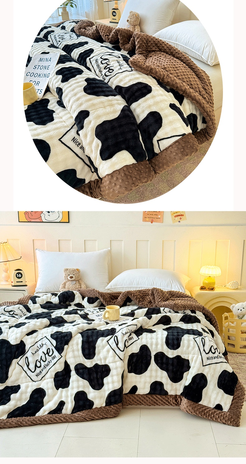 宜梦家居 2025新款獭兔绒三层夹棉加厚豆豆棉被子被芯 奶牛