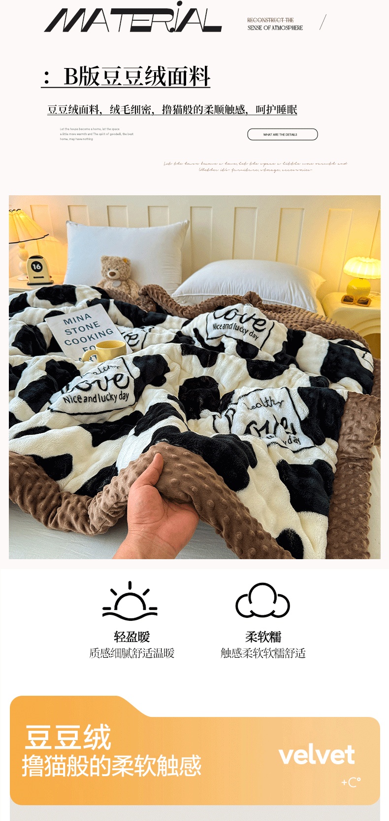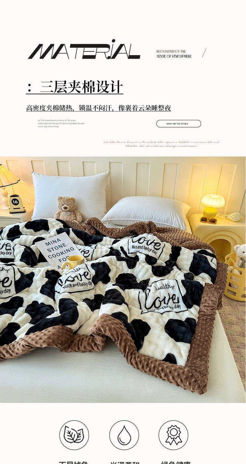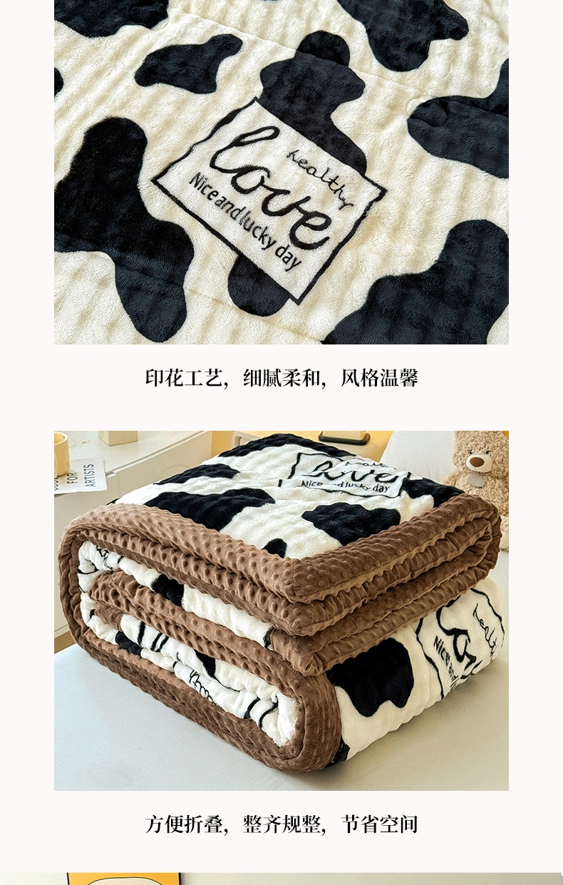 宜梦家居 2025新款獭兔绒三层夹棉加厚豆豆棉被子被芯 奶牛
