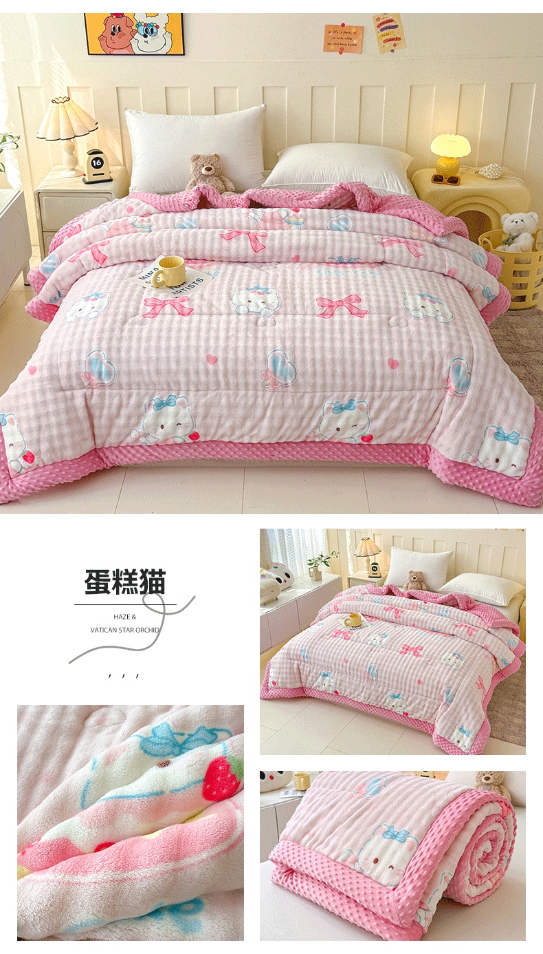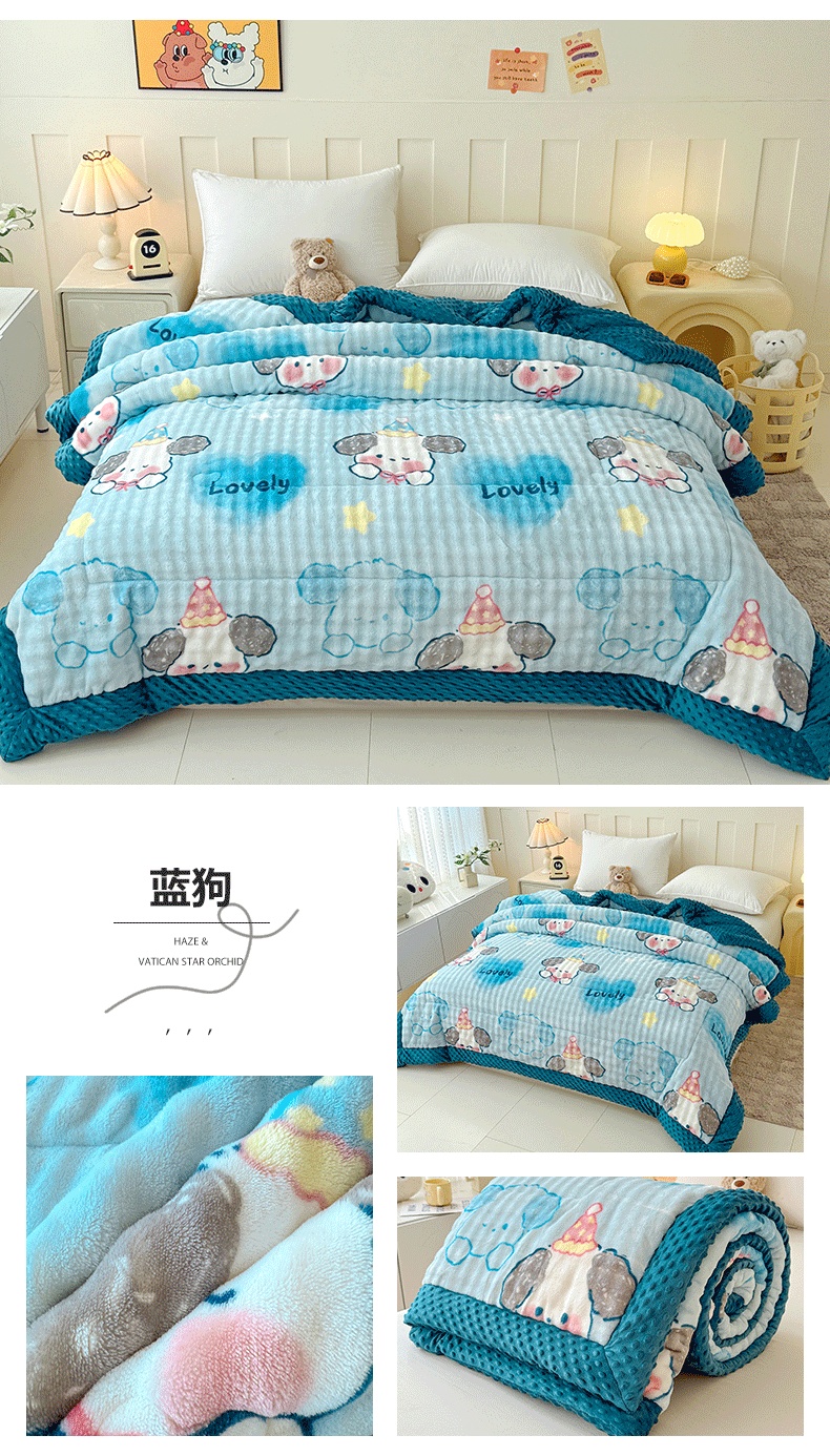 (总)宜梦家居 2025新款獭兔绒三层夹棉加厚豆豆棉被子被芯,抱抱熊,蛋糕猫,蝴蝶,花草狗,卡皮巴拉,蓝狗,蓝色动物,美乐蒂,奶牛,南瓜,星月,熊猫,郁金香,紫花