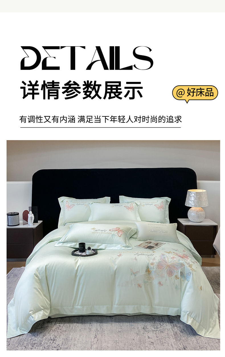 商品名称:丞音家纺 2025新款母婴级A类双面全棉蝴蝶刺绣纯棉长绒棉绣花四件套床单被套 思微-青草绿