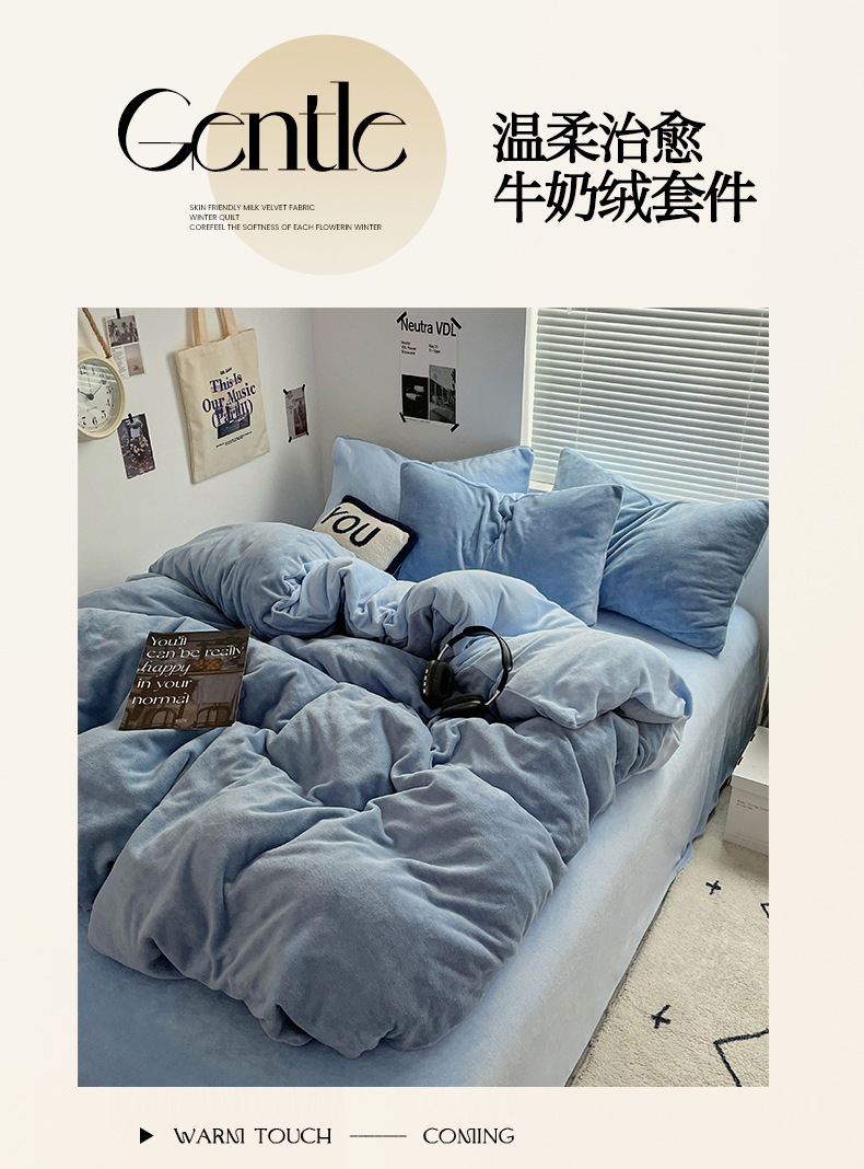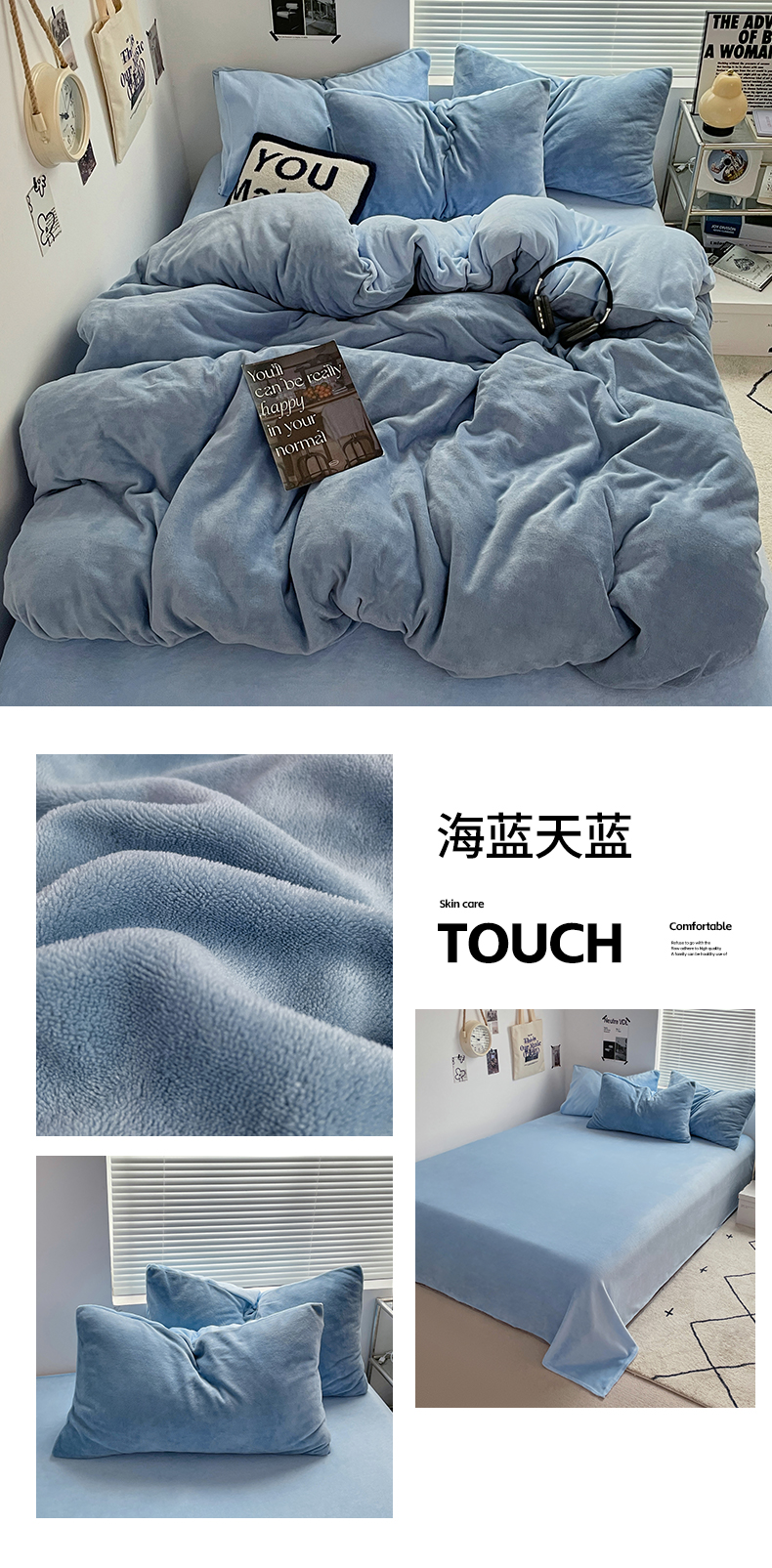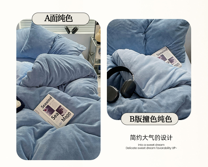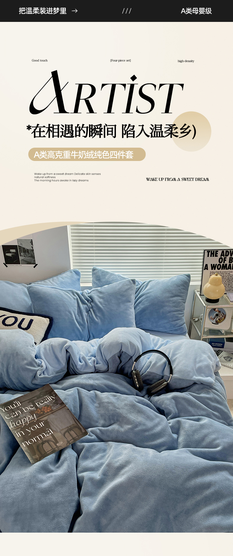 当前位置: 91家纺网 > 商品网购 > 床品套件 > 四件套 > 牛奶绒四件套 > 优卡迪家纺馆 2025新款牛奶绒纯色双拼四件套系列 海蓝天蓝