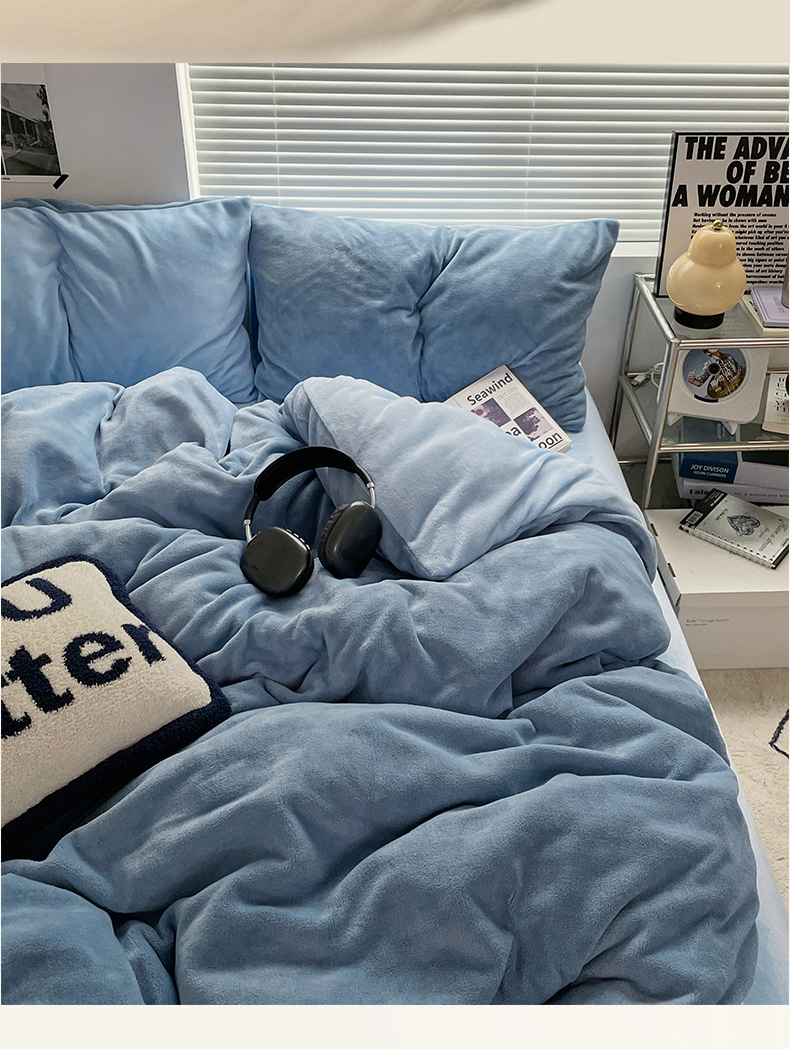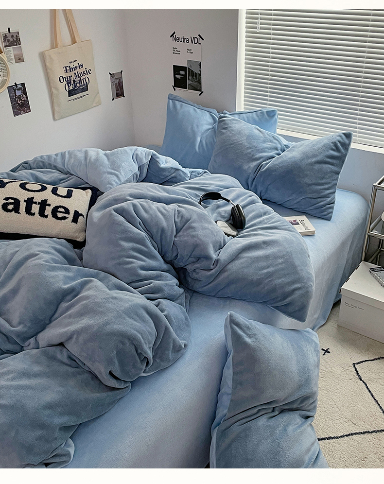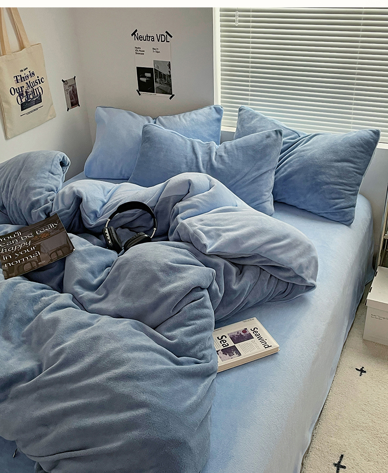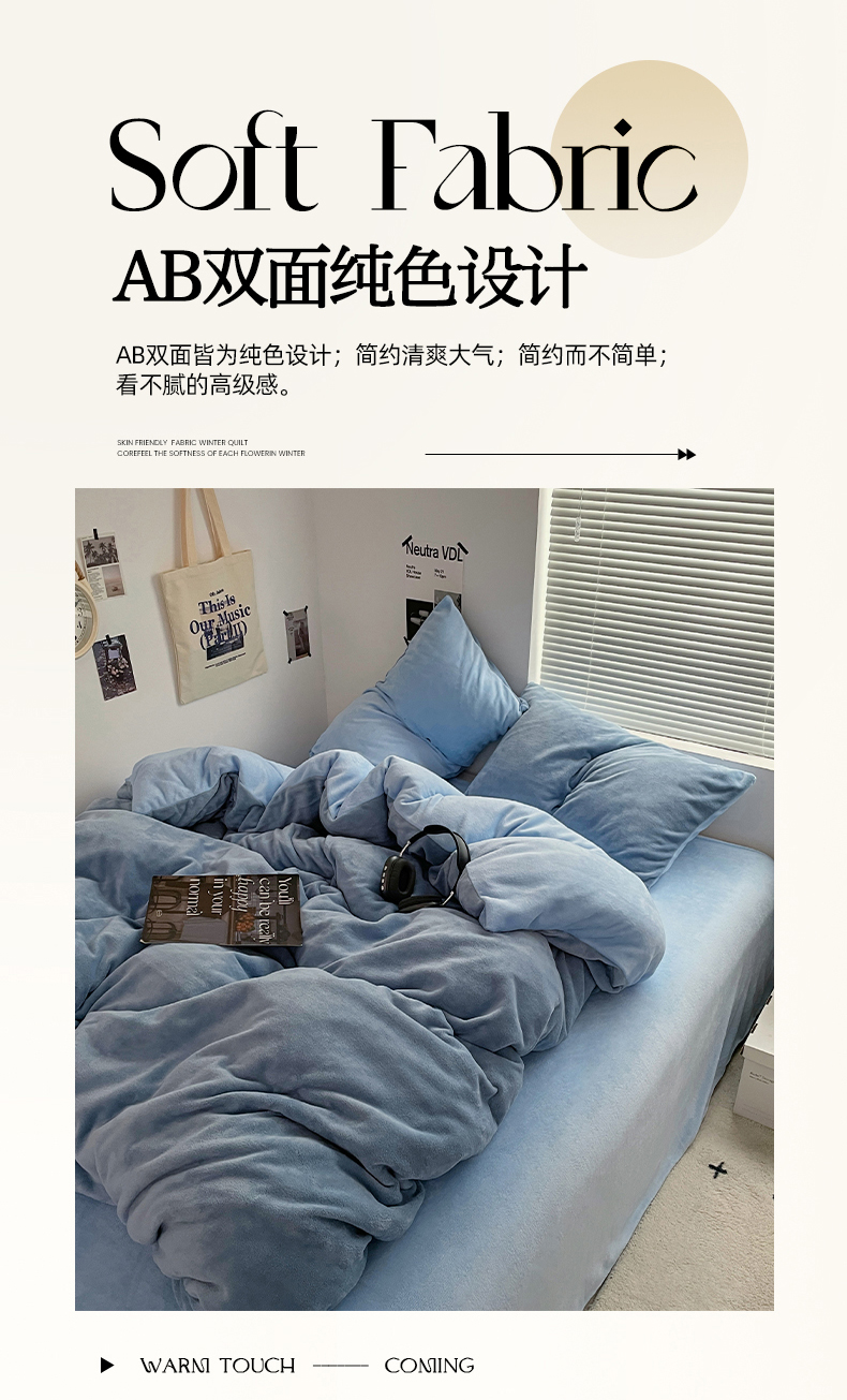 当前位置: 91家纺网 > 商品网购 > 床品套件 > 四件套 > 牛奶绒四件套 > 优卡迪家纺馆 2025新款牛奶绒纯色双拼四件套系列 海蓝天蓝