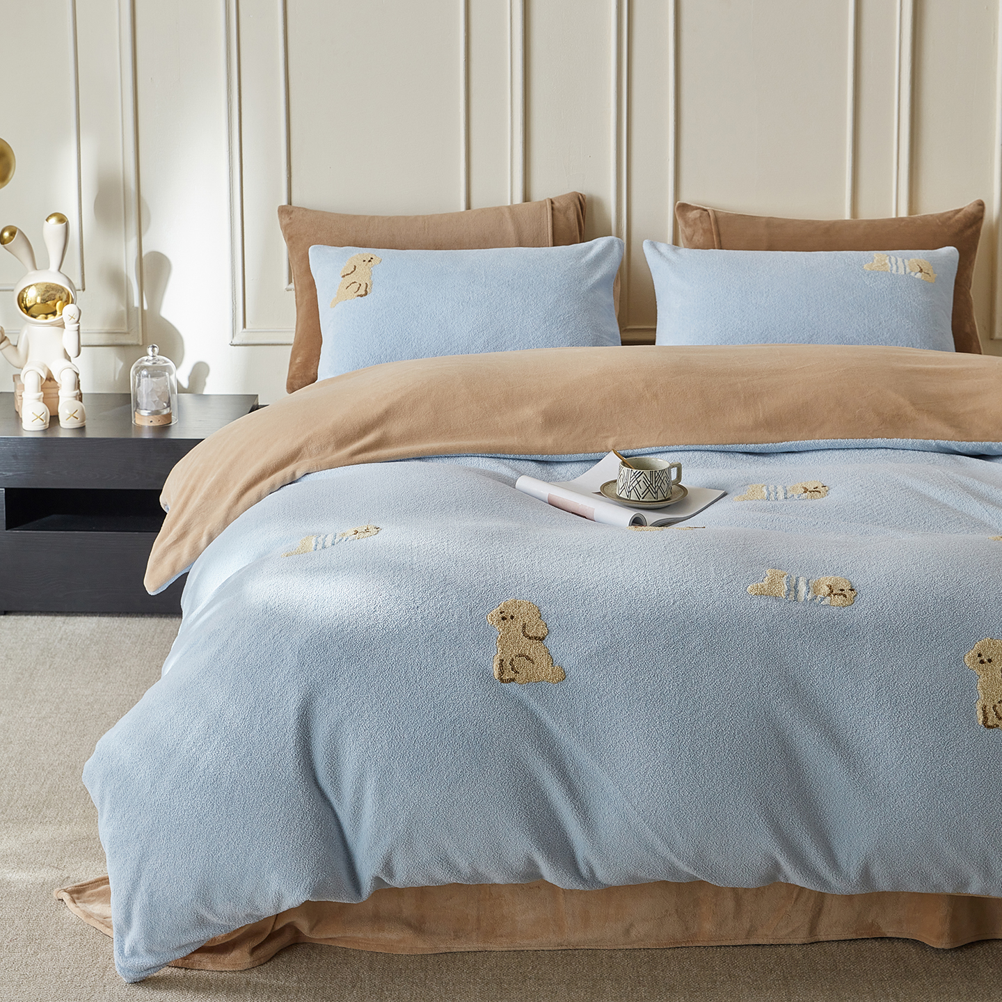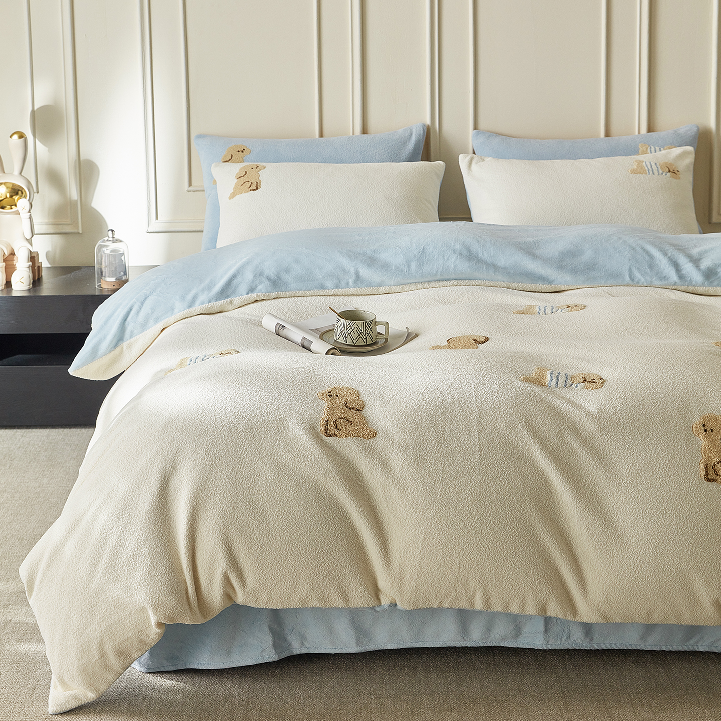 当前位置: 91家纺网 > 商品网购 > 床品套件 > 四件套 > 毛巾绣四件套 > 风向标家纺 2025新款A类全消光暖呢绒毛巾绣四件套-减龄家宠系列(风格三) 海魂衫小狗-蓝白