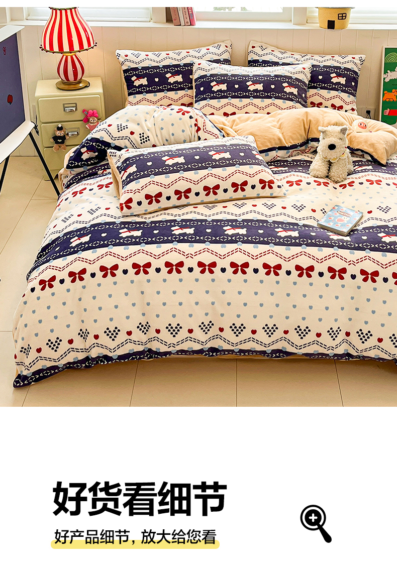 当前位置: 91家纺网 > 商品网购 > 床品套件 > 四件套 > 牛奶绒四件套 > 佳汐蓝家纺 2025新款190克高克重牛奶绒印花四件套 爱心酱-蓝+香槟