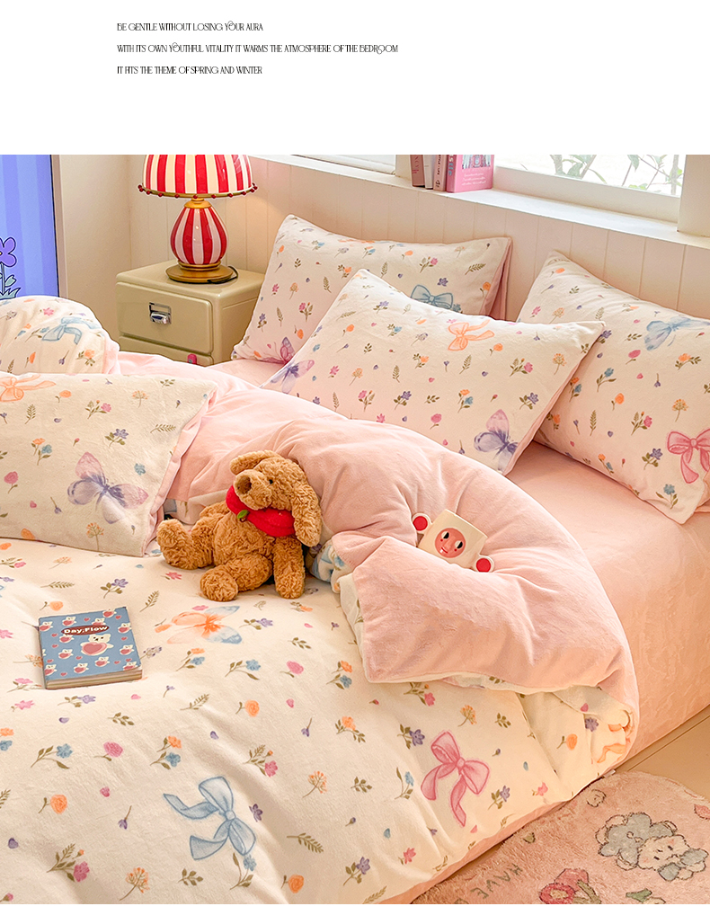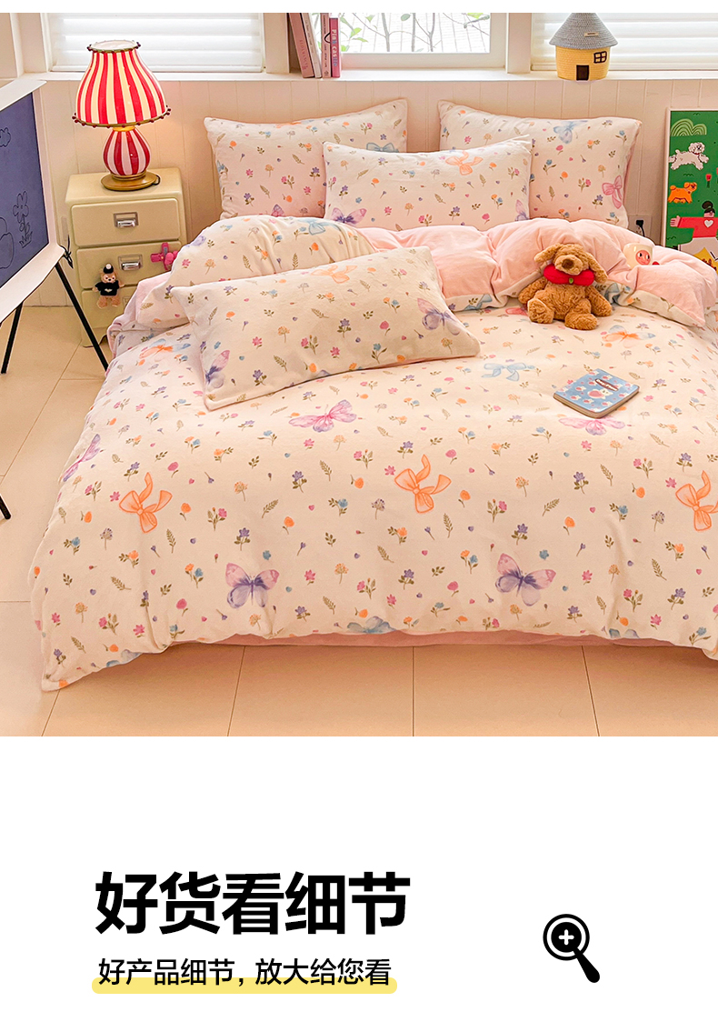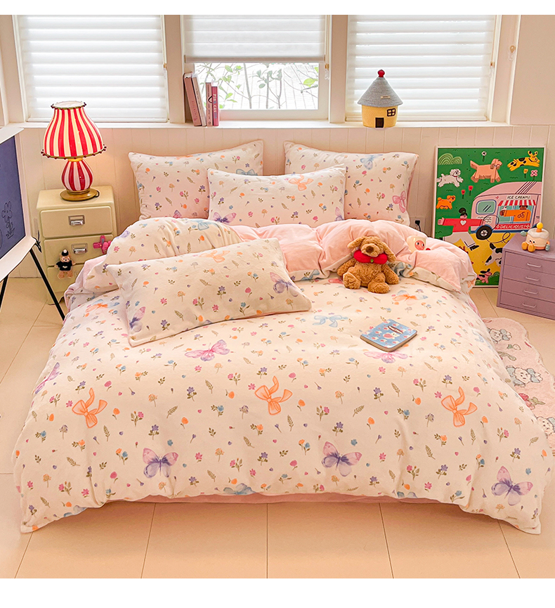 当前位置: 91家纺网 > 商品网购 > 床品套件 > 四件套 > 牛奶绒四件套 > 佳汐蓝家纺 2025新款190克高克重牛奶绒印花四件套 羽蝶舞+奶油粉