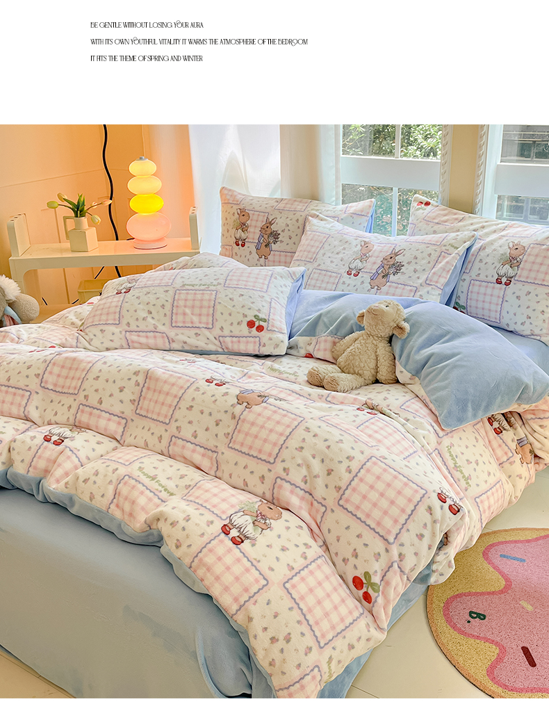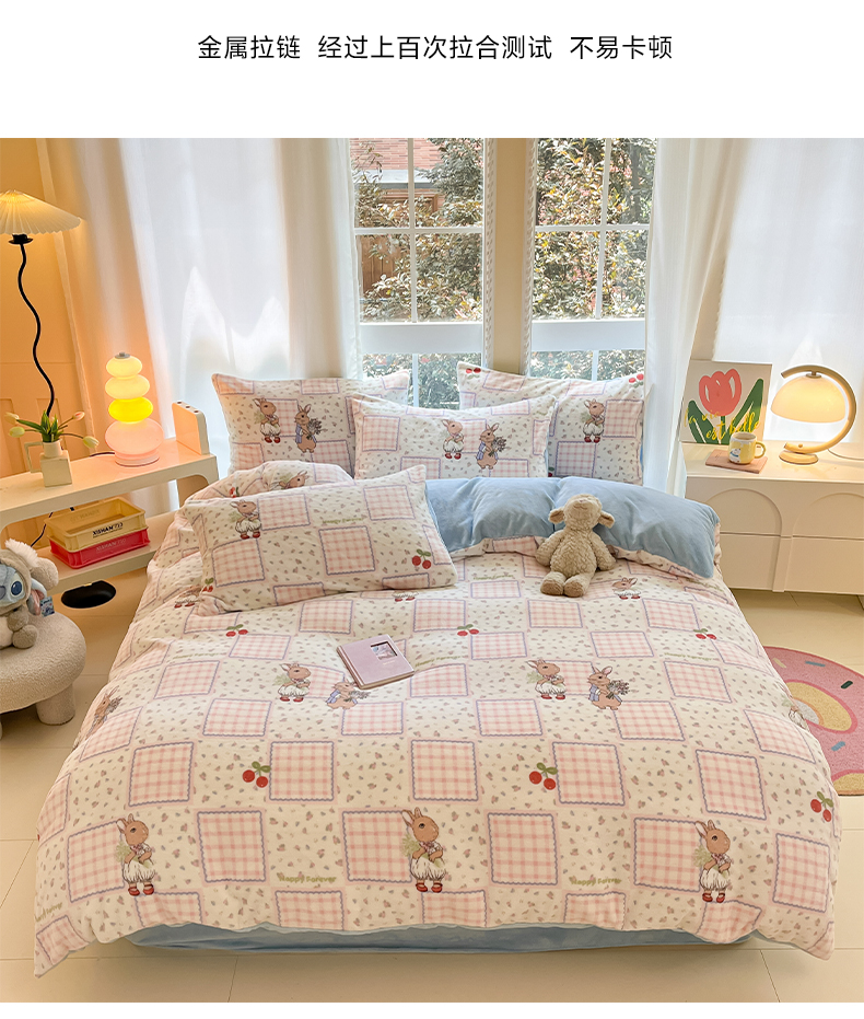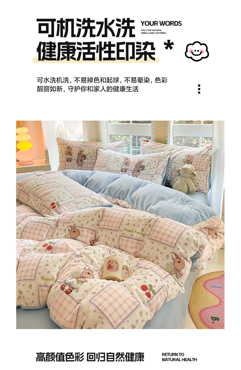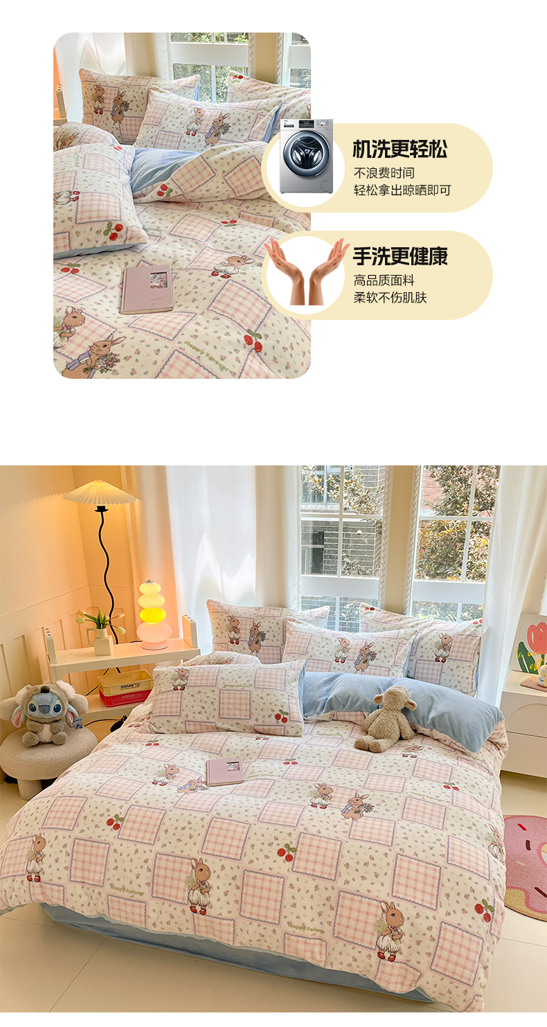 当前位置: 91家纺网 > 商品网购 > 床品套件 > 四件套 > 牛奶绒四件套 > 佳汐蓝家纺 2025新款190克高克重牛奶绒印花四件套 田园小兔+婴儿蓝