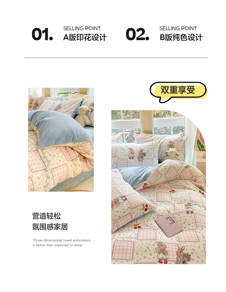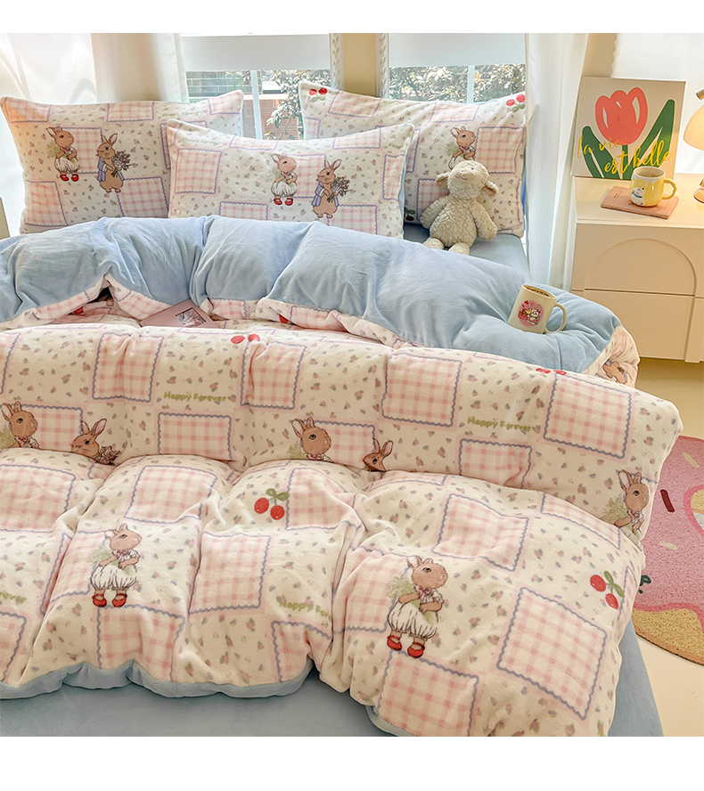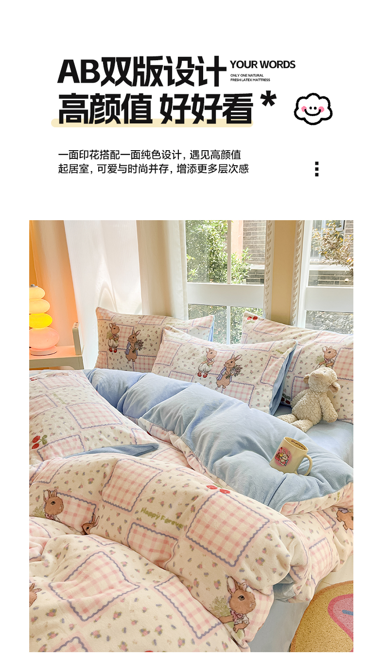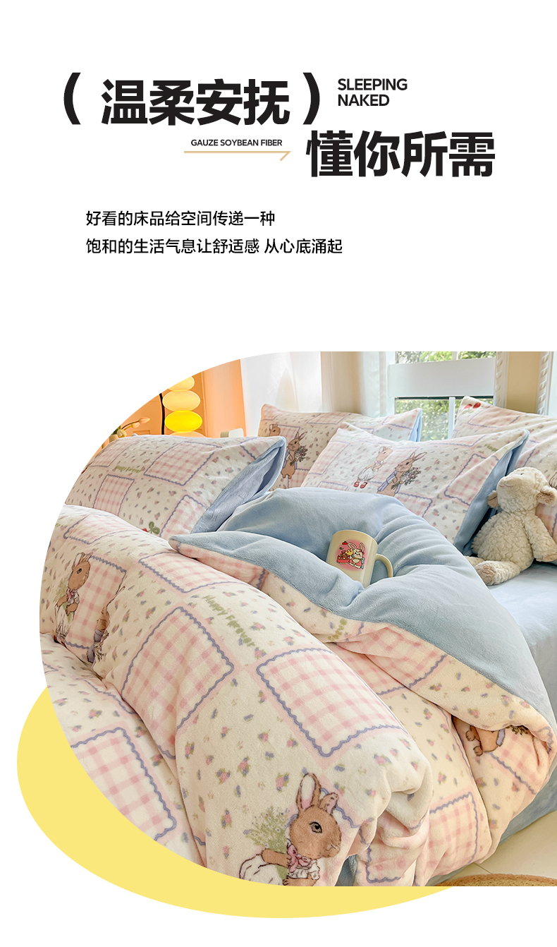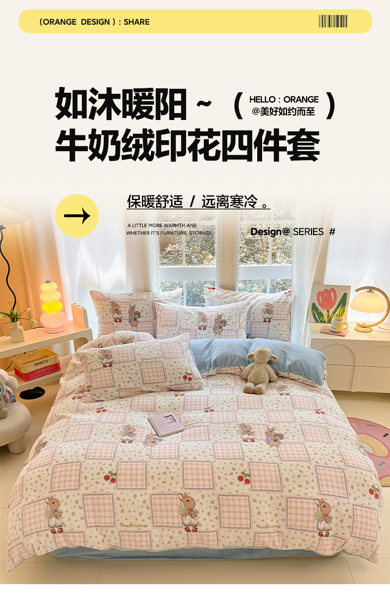 当前位置: 91家纺网 > 商品网购 > 床品套件 > 四件套 > 牛奶绒四件套 > 佳汐蓝家纺 2025新款190克高克重牛奶绒印花四件套 田园小兔+婴儿蓝