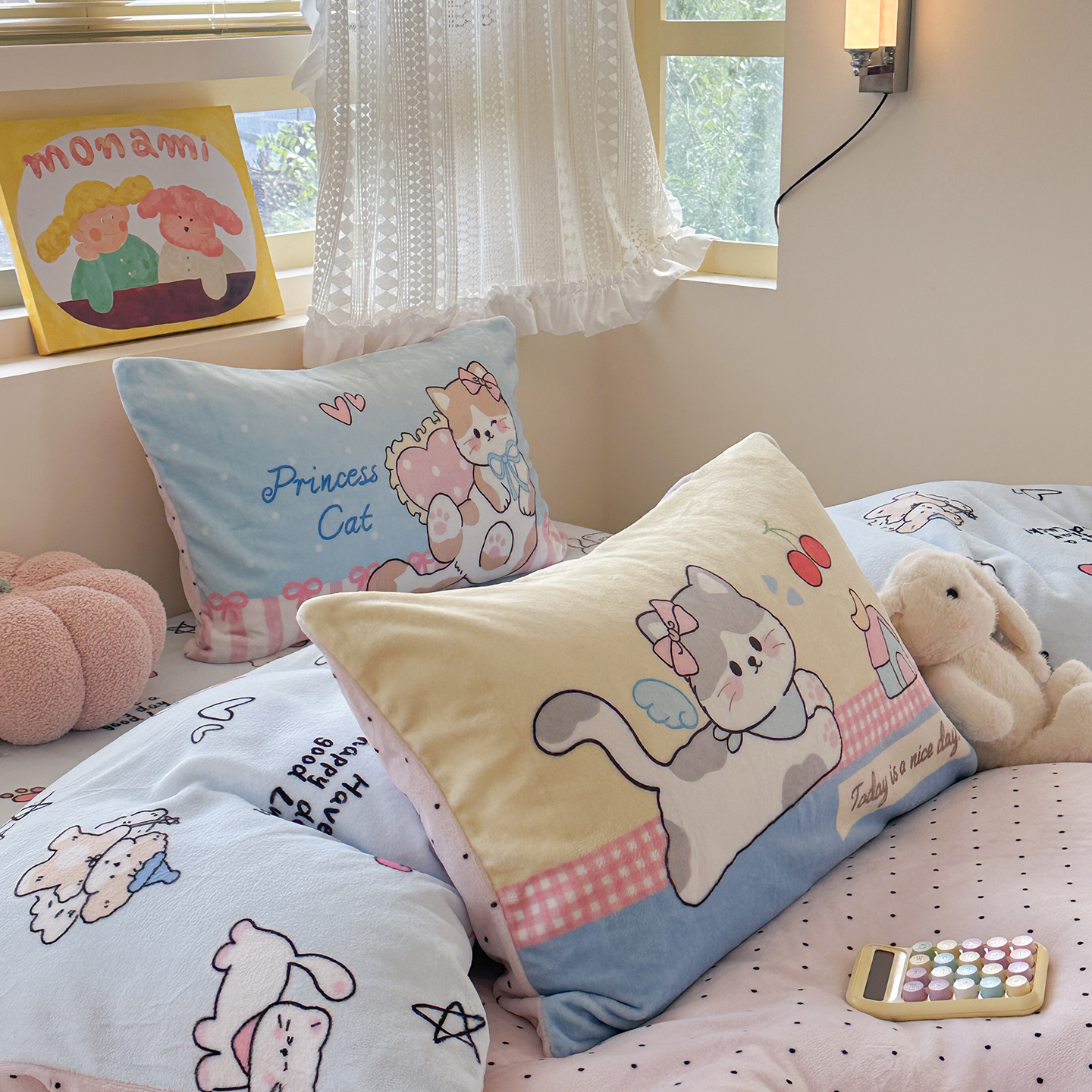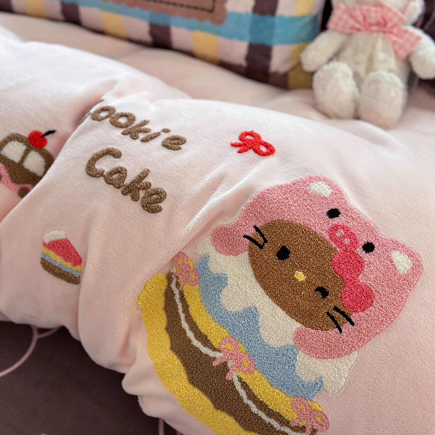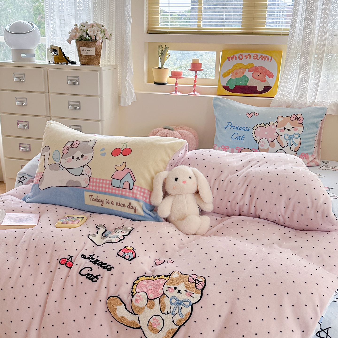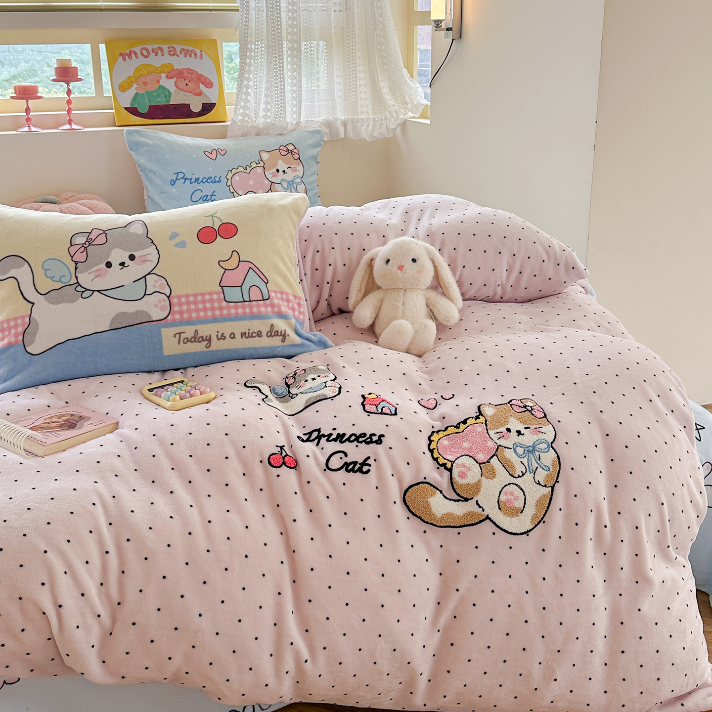 (总)柚子YOUTH 2025新款加厚牛奶绒卡通毛巾绣四件套-印加绣送同款毛毯,蛋糕小狗,公主猫,头套猫,兔兔花园,小伙伴,雪纳瑞