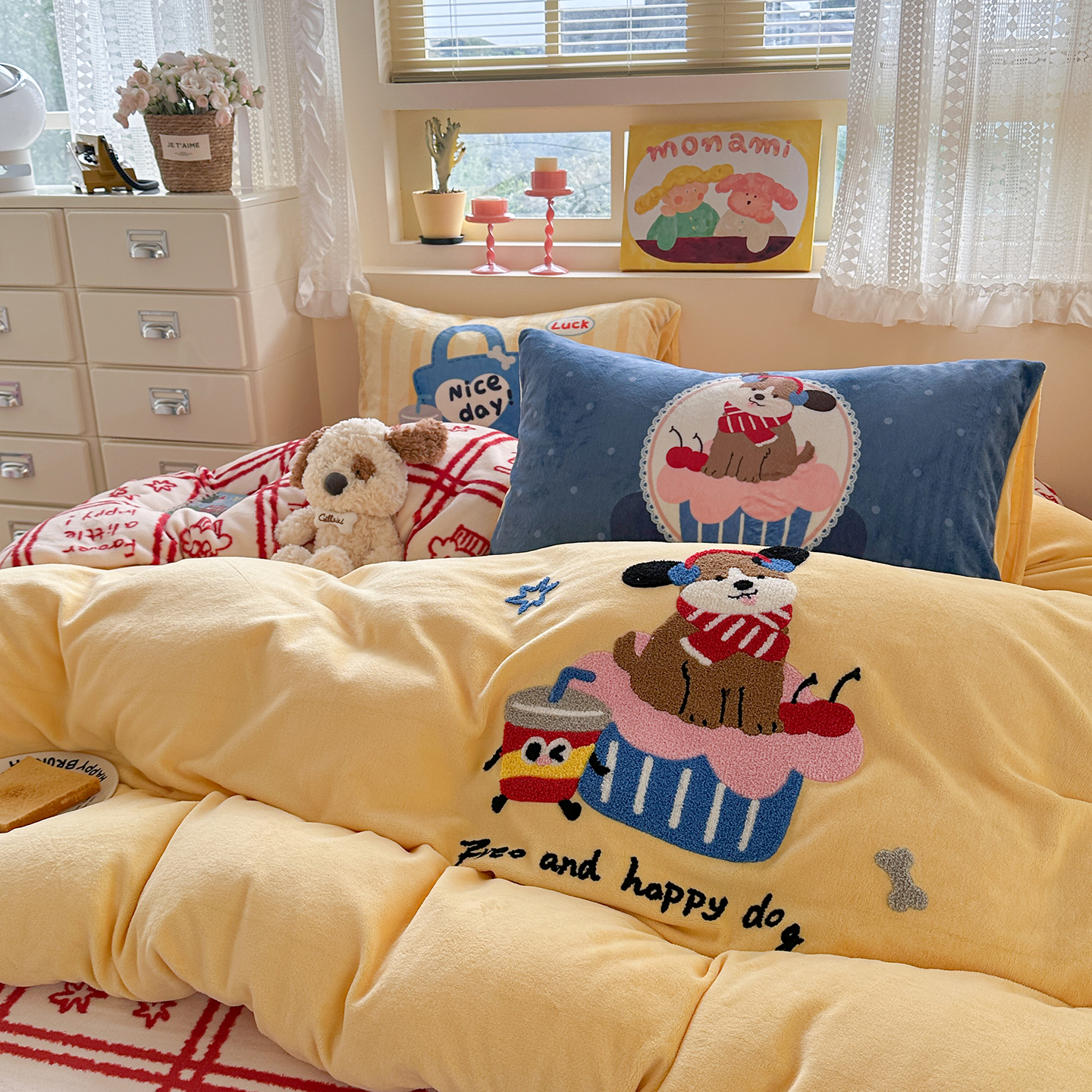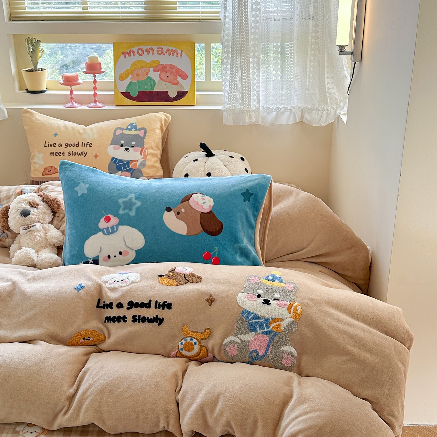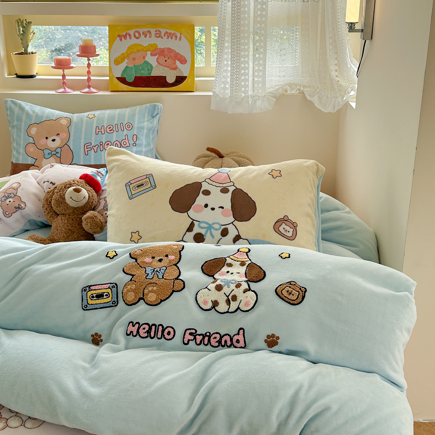 (总)柚子YOUTH 2025新款全棉纯棉工艺款13070贴布绣四件套,爱心小象,毛绒小狗,蘑菇女孩,星星法师