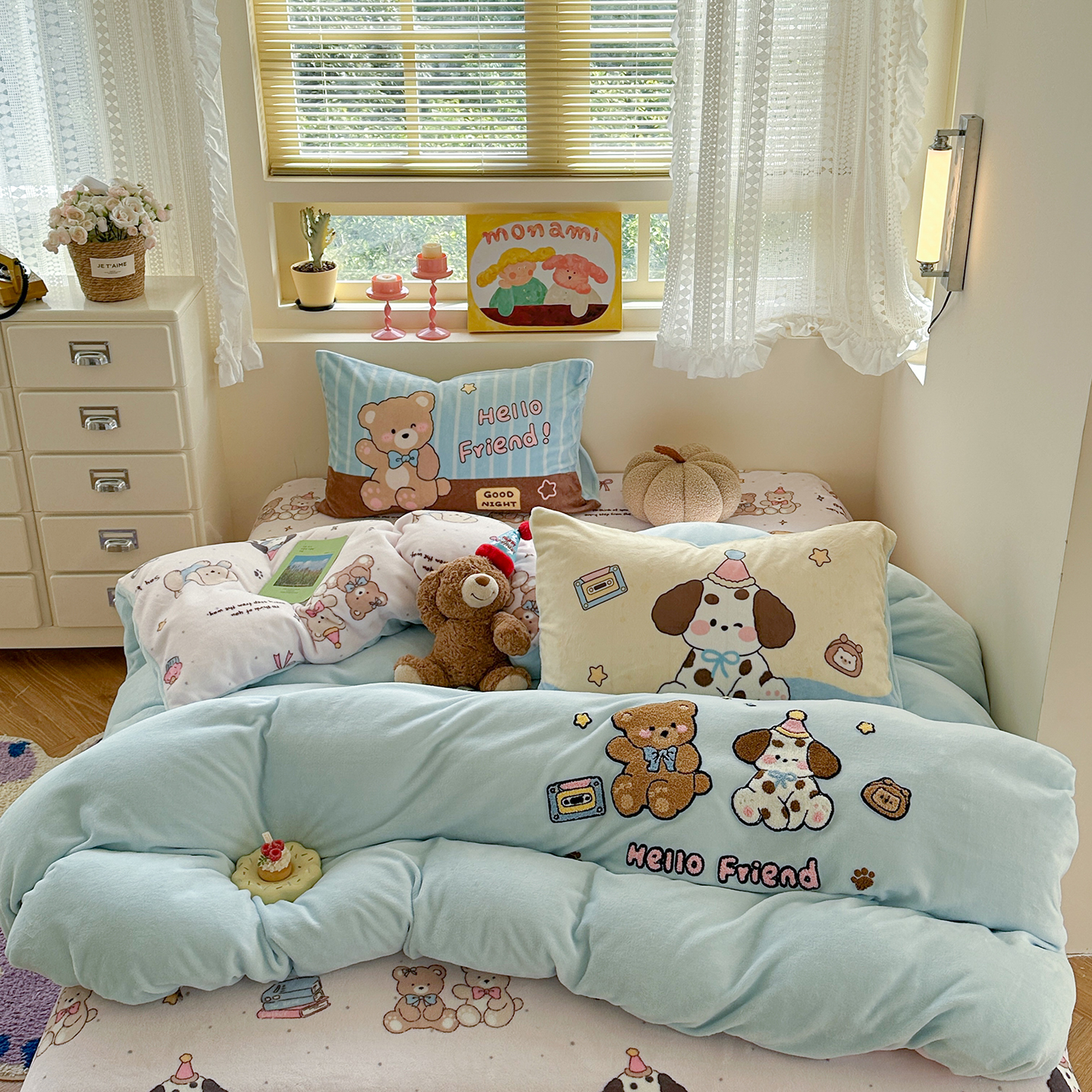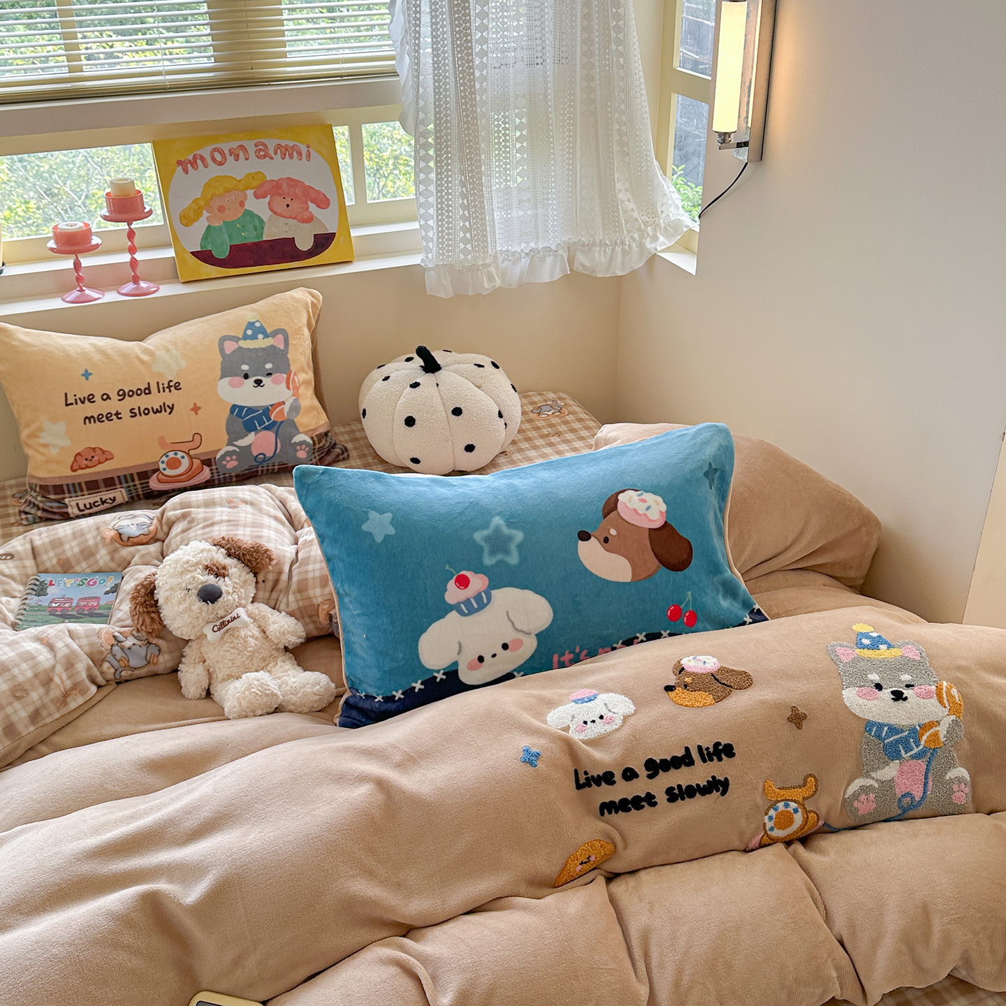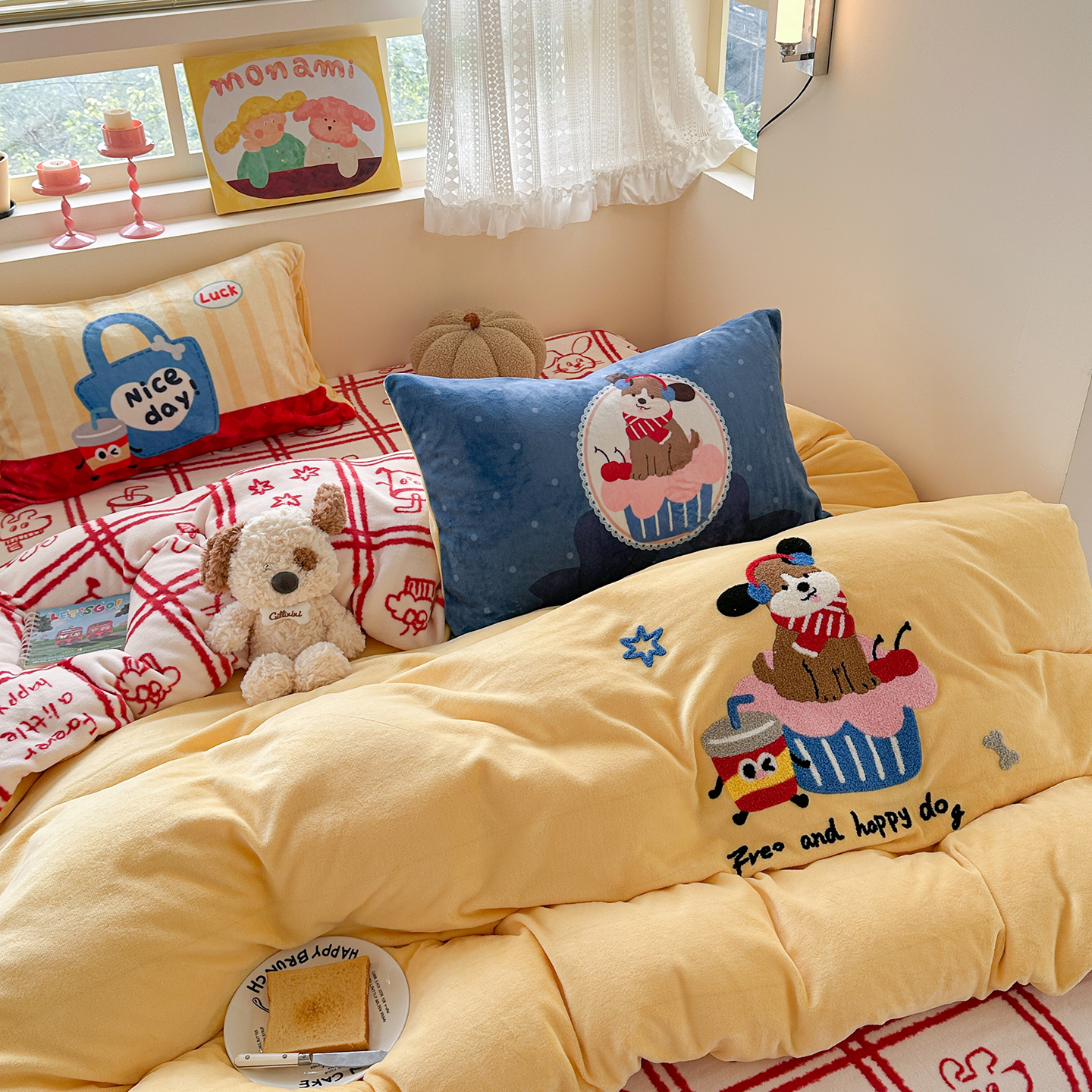 (总)柚子YOUTH 2025新款全棉纯棉工艺款13070贴布绣四件套,爱心小象,毛绒小狗,蘑菇女孩,星星法师
