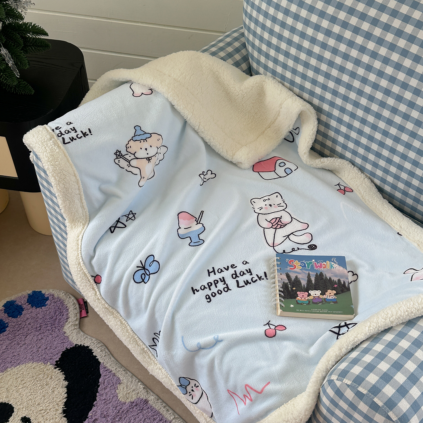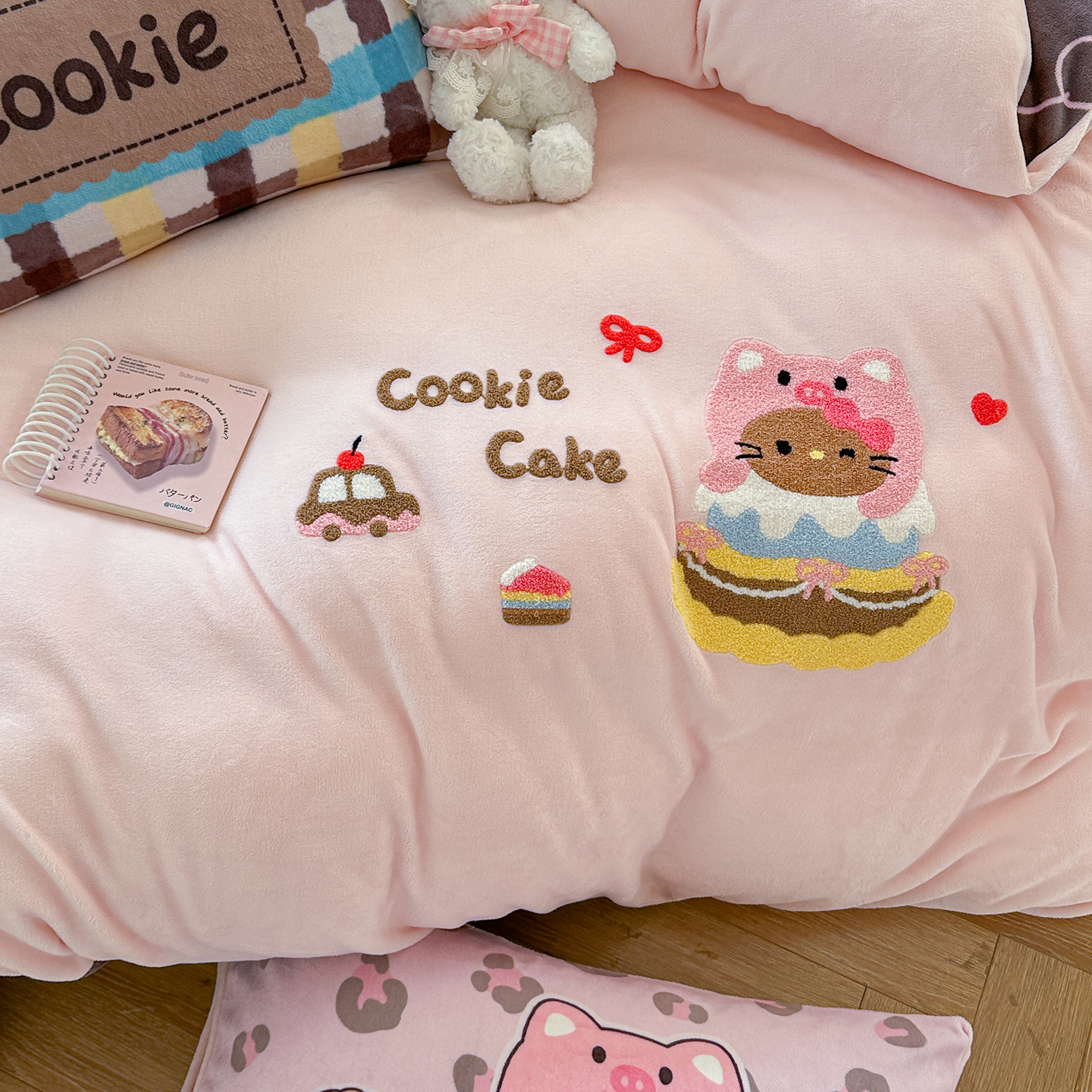 (总)柚子YOUTH 2025新款双面泰迪绒毛巾绣四件套,甜甜圈,快乐企鹅,森林聚会,甜酷KT,小茄子,雪人王国