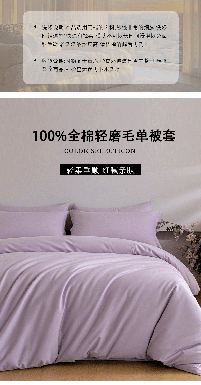 商品名称:618家纺 2025新款全棉100支磨毛单品四件套系列-单被套 薰衣草