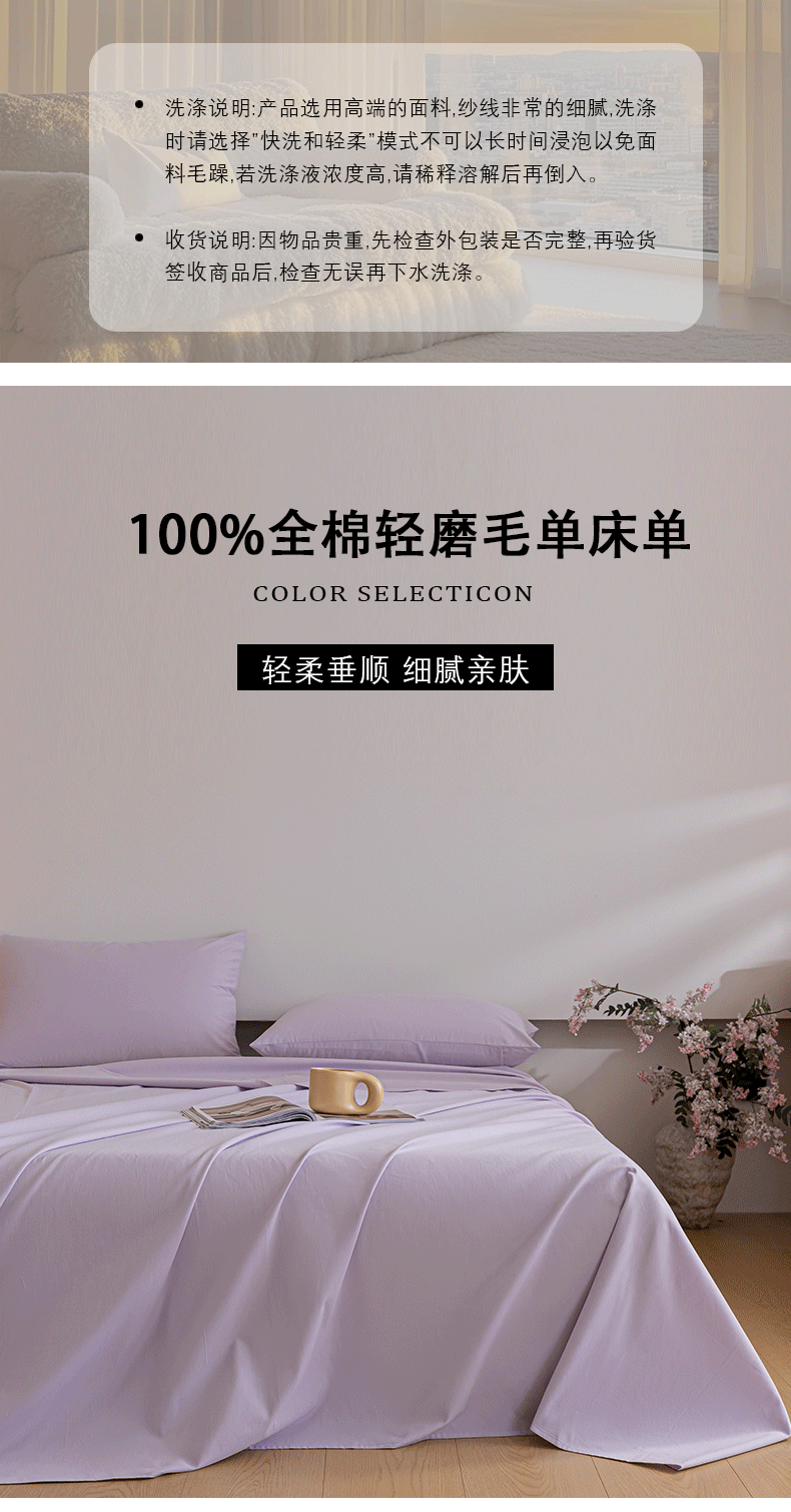 618家纺 2025新款全棉100支磨毛单品四件套系列-单床单 薰衣草