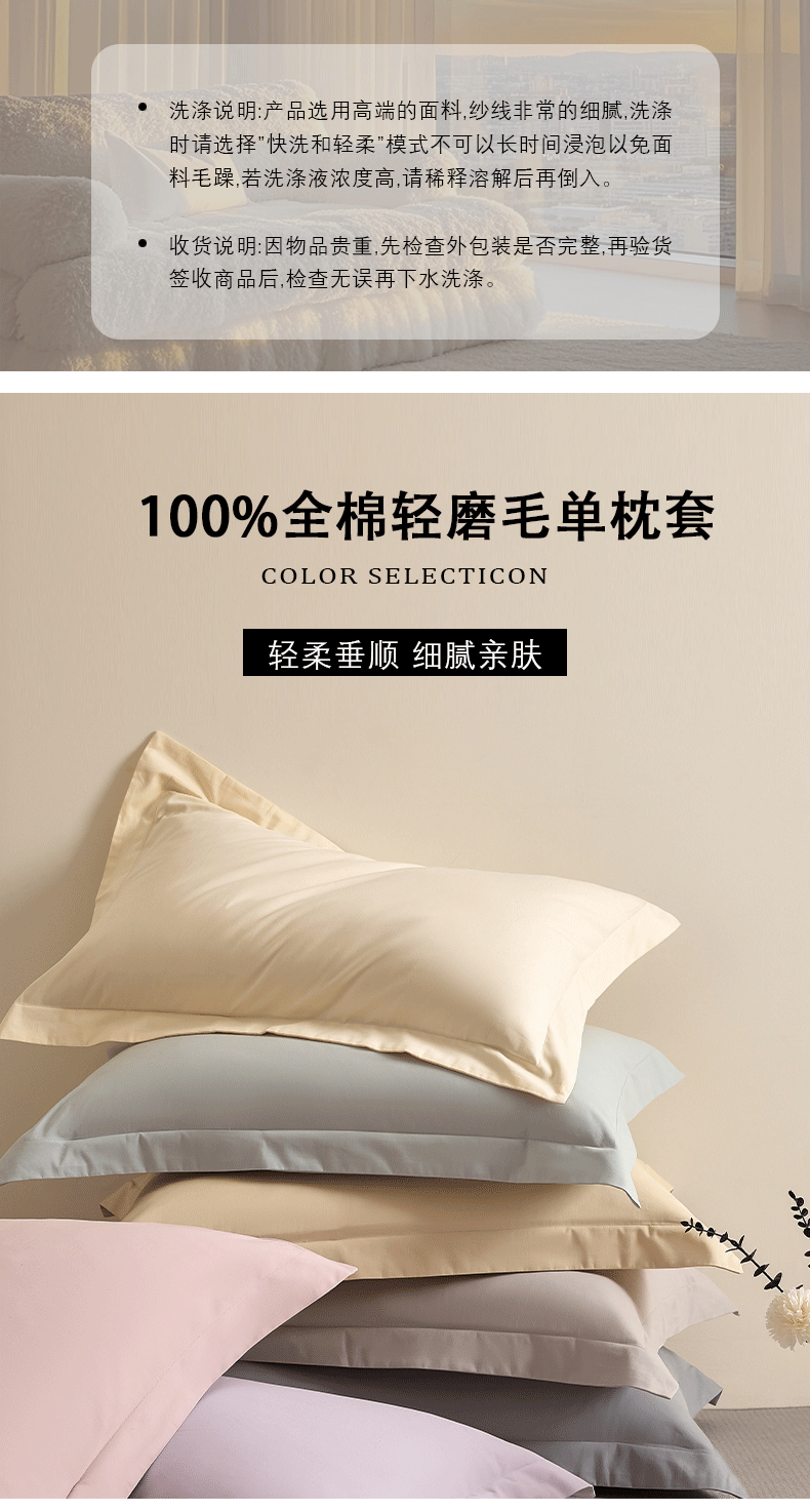 商品名称:618家纺 2025新款全棉100支磨毛单品四件套系列-单枕套 梦幻粉