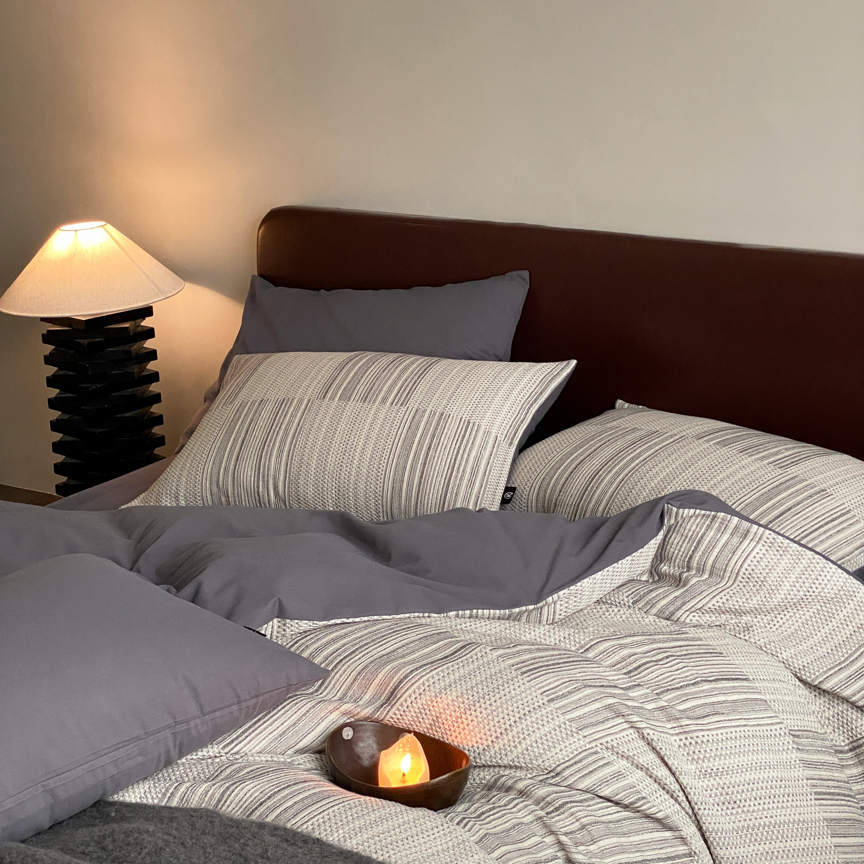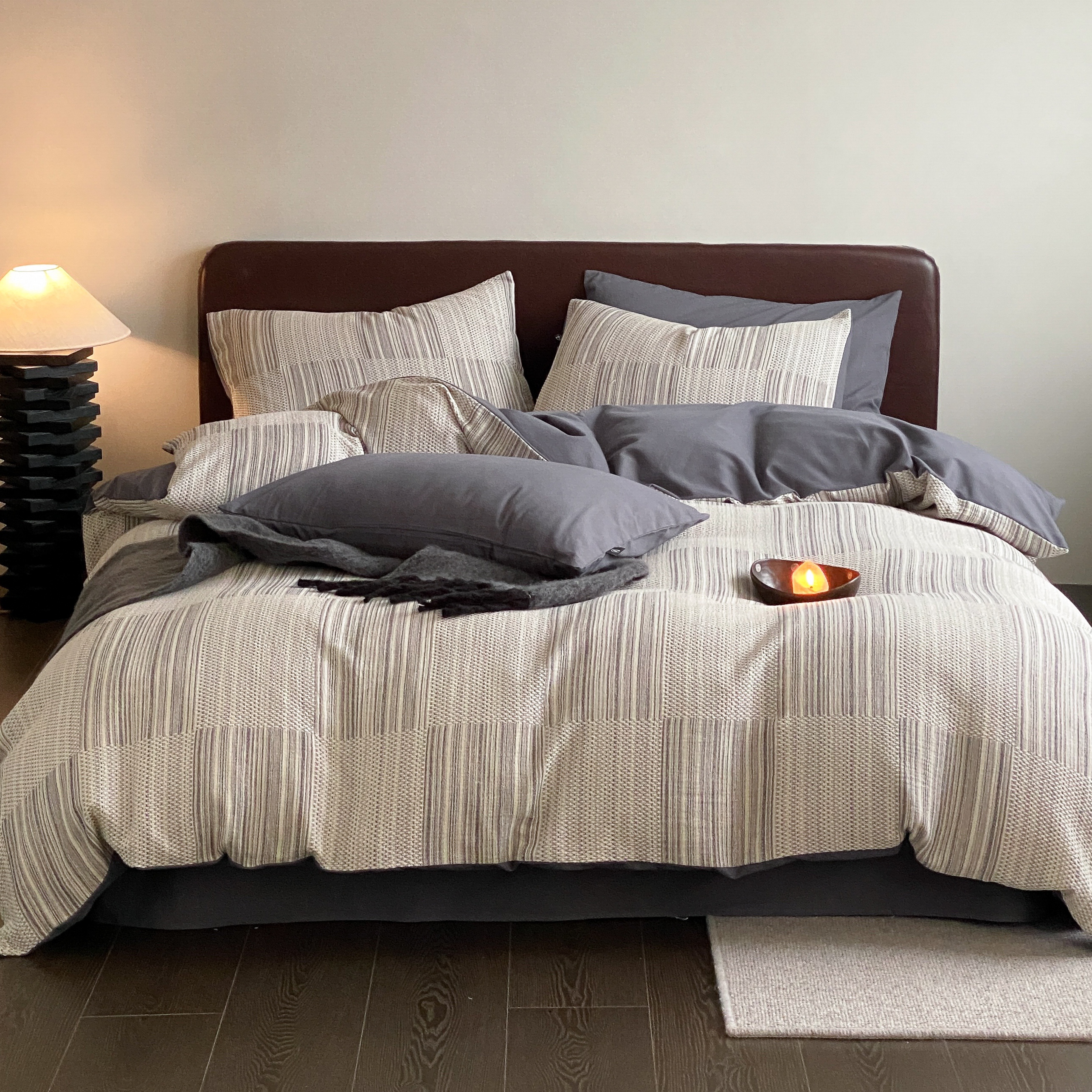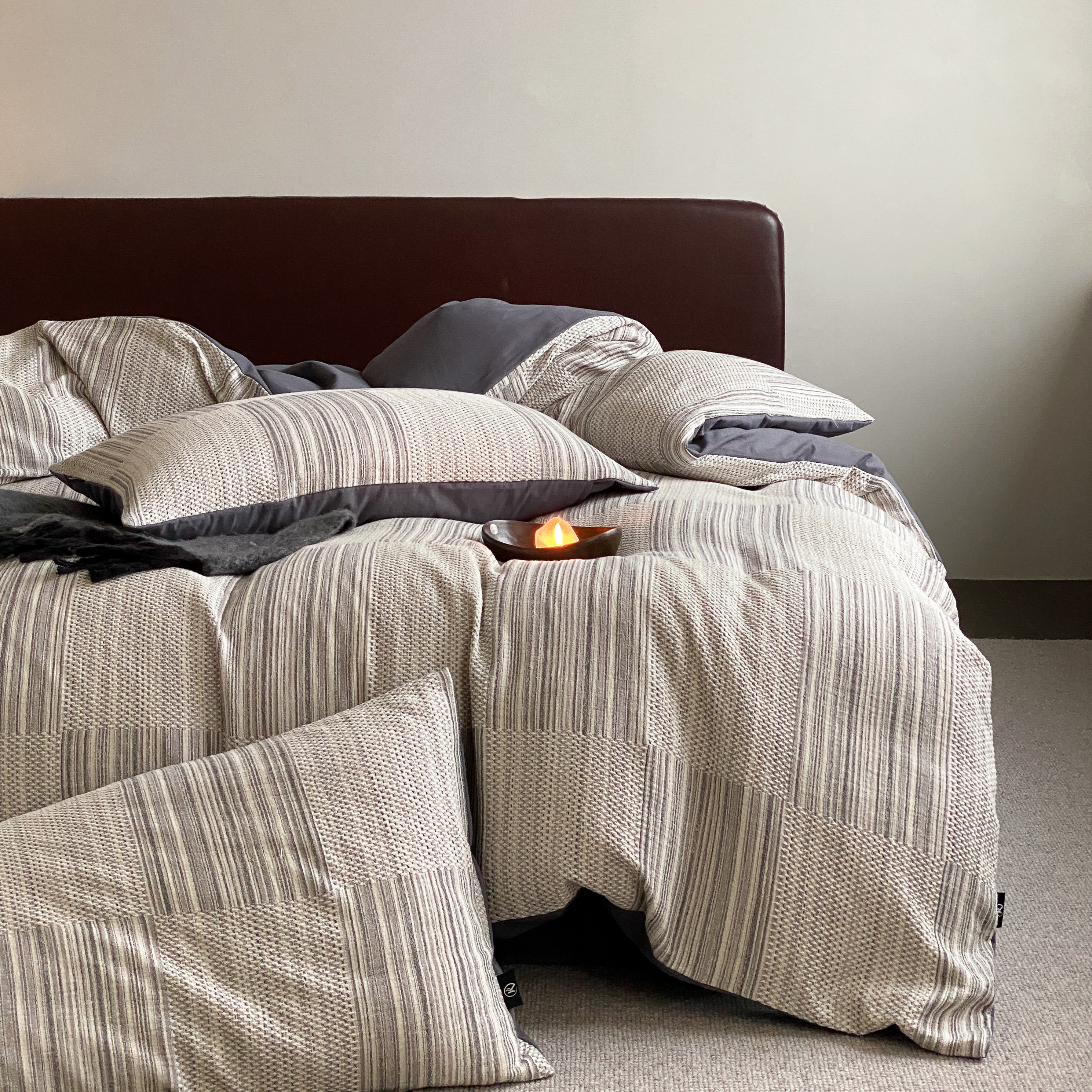 (总)旷野2025新款全棉纯棉色织空气层提花泡泡纱四件套,悉尼海岸-灰,悉尼海岸-蓝,悉尼海岸-棕