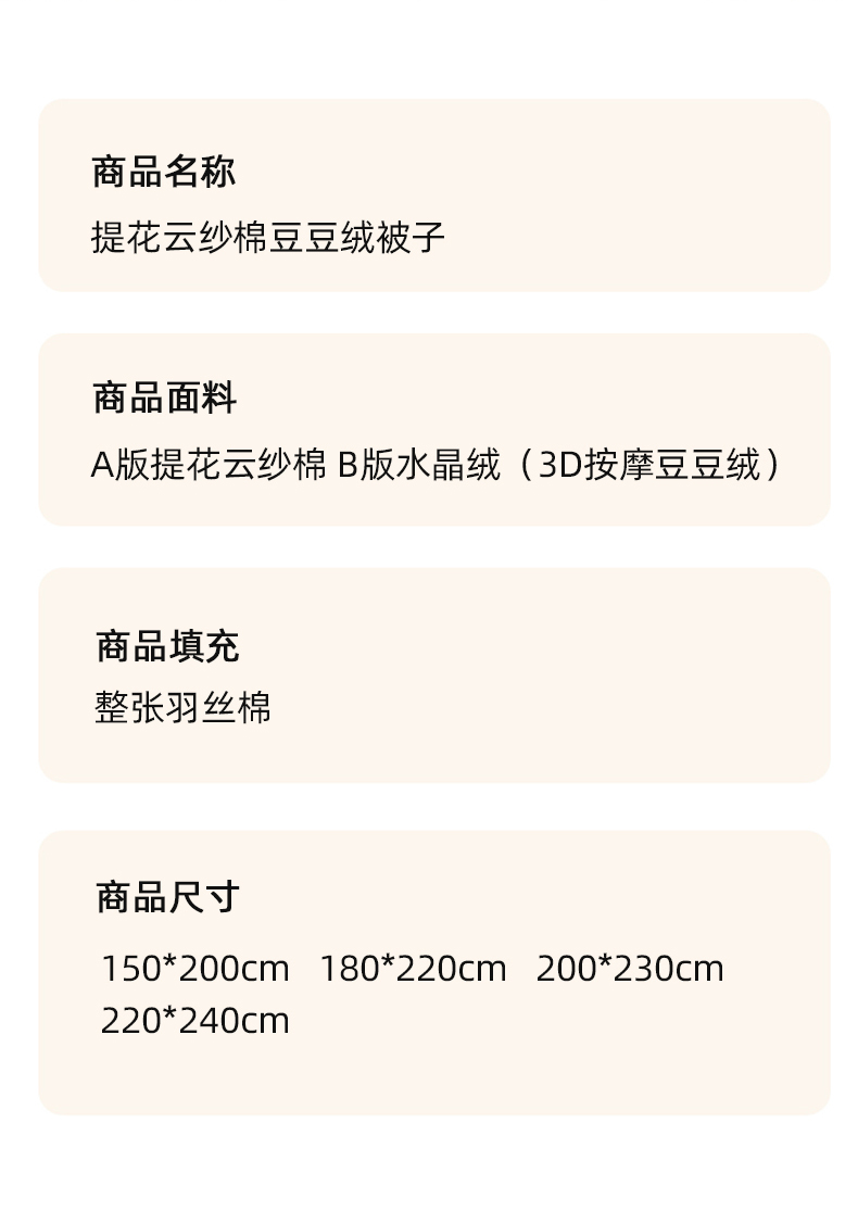 [{"sp_id":11,"sp_name":"\u989c\u8272","sp_format":2,"sp_list":[{"sp_value_id":1668,"sp_value_name":"\u5e78\u8fd0\u718a\u732b","sp_value_image":{"id":999,"path":"https:\/\/img3.91jf.com\/ghelp\/2025\/20251009\/20251009154446_794340.jpg"},"sp_value_video":{"id":0,"img":"","path":"","time":0,"download_num":0,"play_num":0},"price":"42.00","storage":3000,"weight":"1.800","is_check_weight":0,"plus_price":"","sp_sort":0}]},{"sp_id":27,"sp_name":"\u5c3a\u5bf8","sp_format":1,"sp_list":[{"sp_value_id":302,"sp_value_name":"150*200cm3.6\u65a4","sp_value_image":{"id":0,"path":""},"sp_value_video":{"id":0,"img":"","path":"","time":0,"download_num":0,"play_num":0},"price":"42.00","storage":500,"weight":"1.800","is_check_weight":0,"plus_price":"","sp_sort":5},{"sp_value_id":303,"sp_value_name":"150*200cm5.6\u65a4","sp_value_image":{"id":0,"path":""},"sp_value_video":{"id":0,"img":"","path":"","time":0,"download_num":0,"play_num":0},"price":"49.00","storage":500,"weight":"2.800","is_check_weight":0,"plus_price":"","sp_sort":6},{"sp_value_id":304,"sp_value_name":"150*200cm7.6\u65a4","sp_value_image":{"id":0,"path":""},"sp_value_video":{"id":0,"img":"","path":"","time":0,"download_num":0,"play_num":0},"price":"58.00","storage":500,"weight":"3.800","is_check_weight":0,"plus_price":"","sp_sort":7},{"sp_value_id":305,"sp_value_name":"200*230cm5.6\u65a4","sp_value_image":{"id":0,"path":""},"sp_value_video":{"id":0,"img":"","path":"","time":0,"download_num":0,"play_num":0},"price":"53.00","storage":500,"weight":"2.800","is_check_weight":0,"plus_price":"","sp_sort":8},{"sp_value_id":306,"sp_value_name":"200*230cm7.6\u65a4","sp_value_image":{"id":0,"path":""},"sp_value_video":{"id":0,"img":"","path":"","time":0,"download_num":0,"play_num":0},"price":"62.00","storage":500,"weight":"3.800","is_check_weight":0,"plus_price":"","sp_sort":9},{"sp_value_id":307,"sp_value_name":"200*230cm9.6\u65a4","sp_value_image":{"id":0,"path":""},"sp_value_video":{"id":0,"img":"","path":"","time":0,"download_num":0,"play_num":0},"price":"70.00","storage":500,"weight":"4.800","is_check_weight":0,"plus_price":"","sp_sort":10}]}]