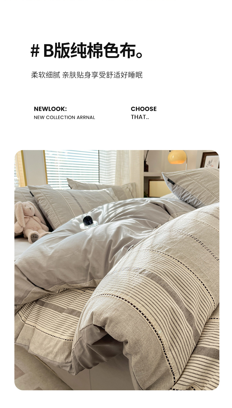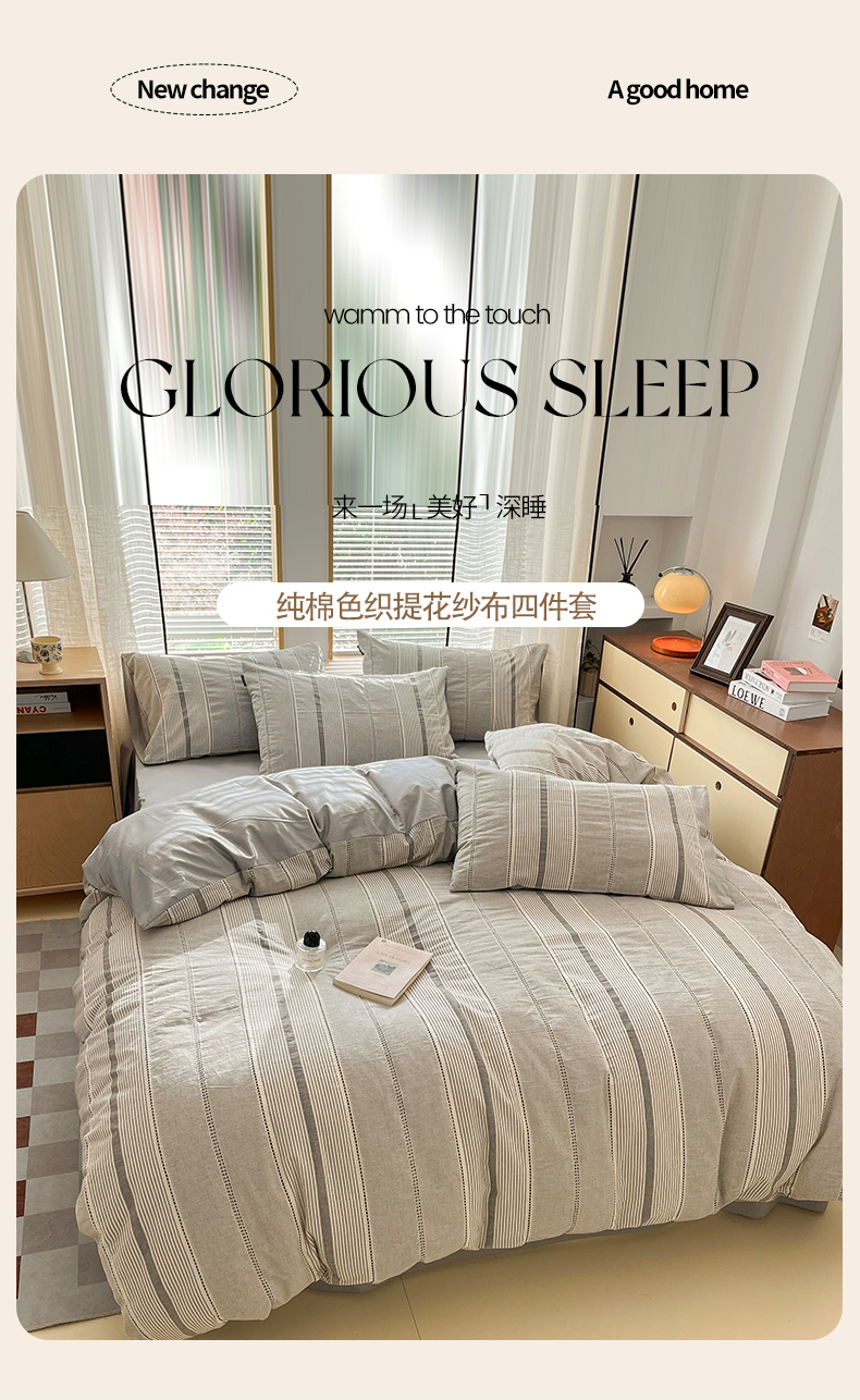 商品名称:宜代光年 2025新款全棉纯棉色织提花瑞拉系列四件套 瑞拉-灰