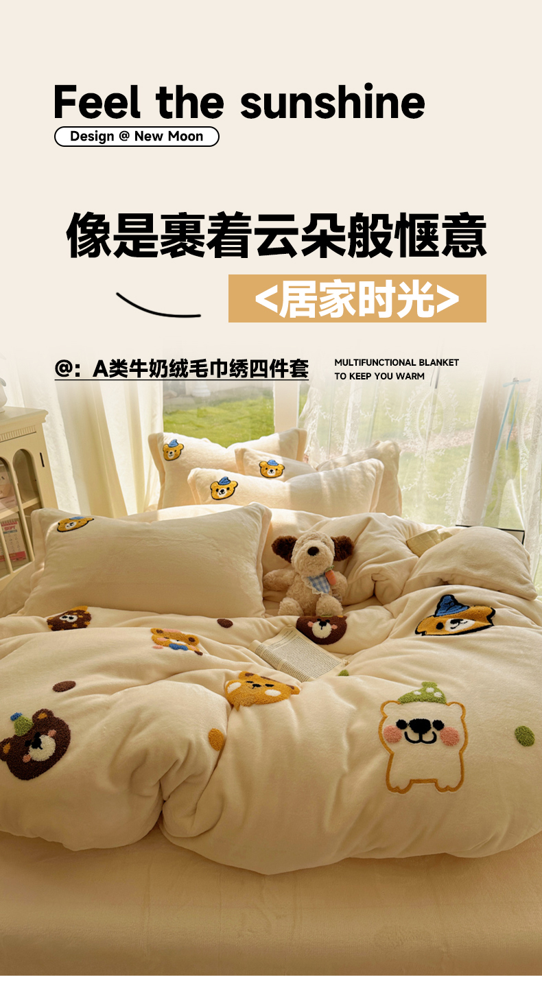 当前位置: 91家纺网 > 商品网购 > 床品套件 > 四件套 > 牛奶绒四件套 > 梵克保罗 2025新款A类牛奶绒毛巾绣四件套(包含买家秀) 趣味熊-奶白