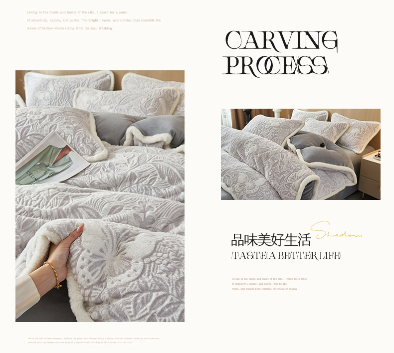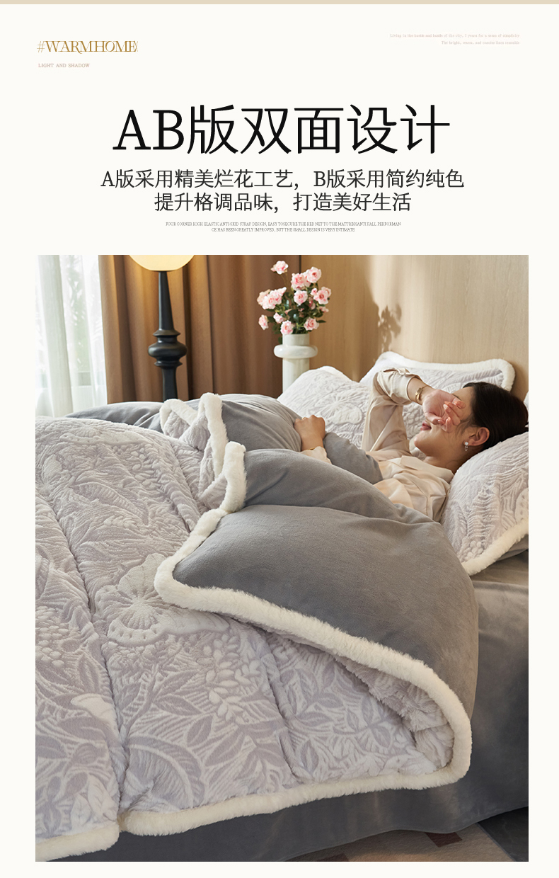 (总)金鹰 2025新款A类雕花牛奶绒烂花兔毛包边四件套,羽毛,波澜壮阔,繁花,蝴蝶梦,简爱,兰花,玫瑰物语,梦幻森林,清晨玫瑰,羽叶,仲夏晨歌